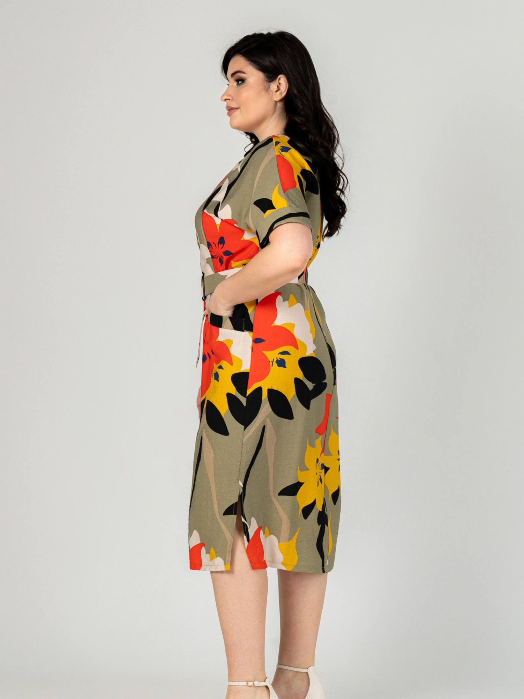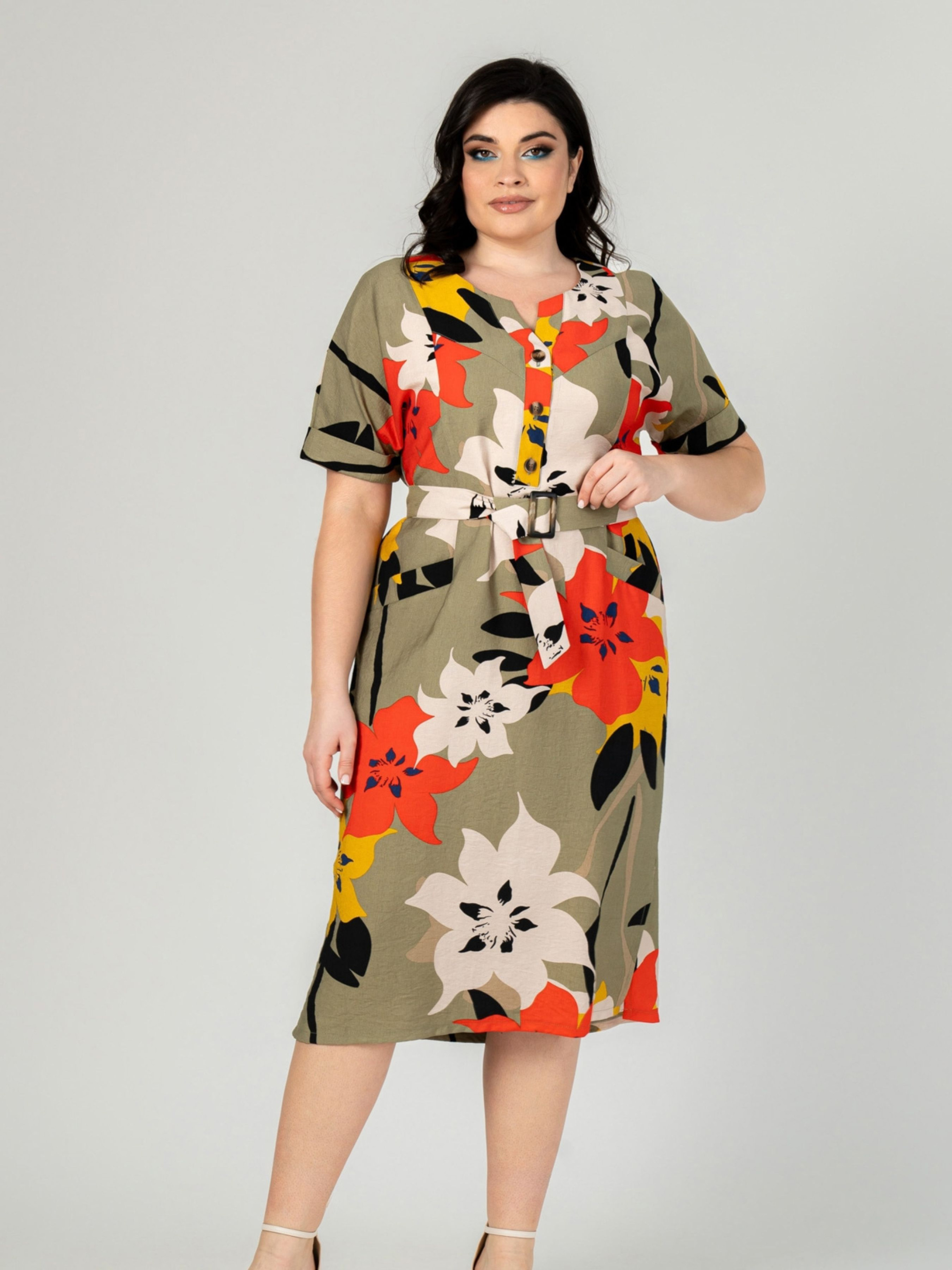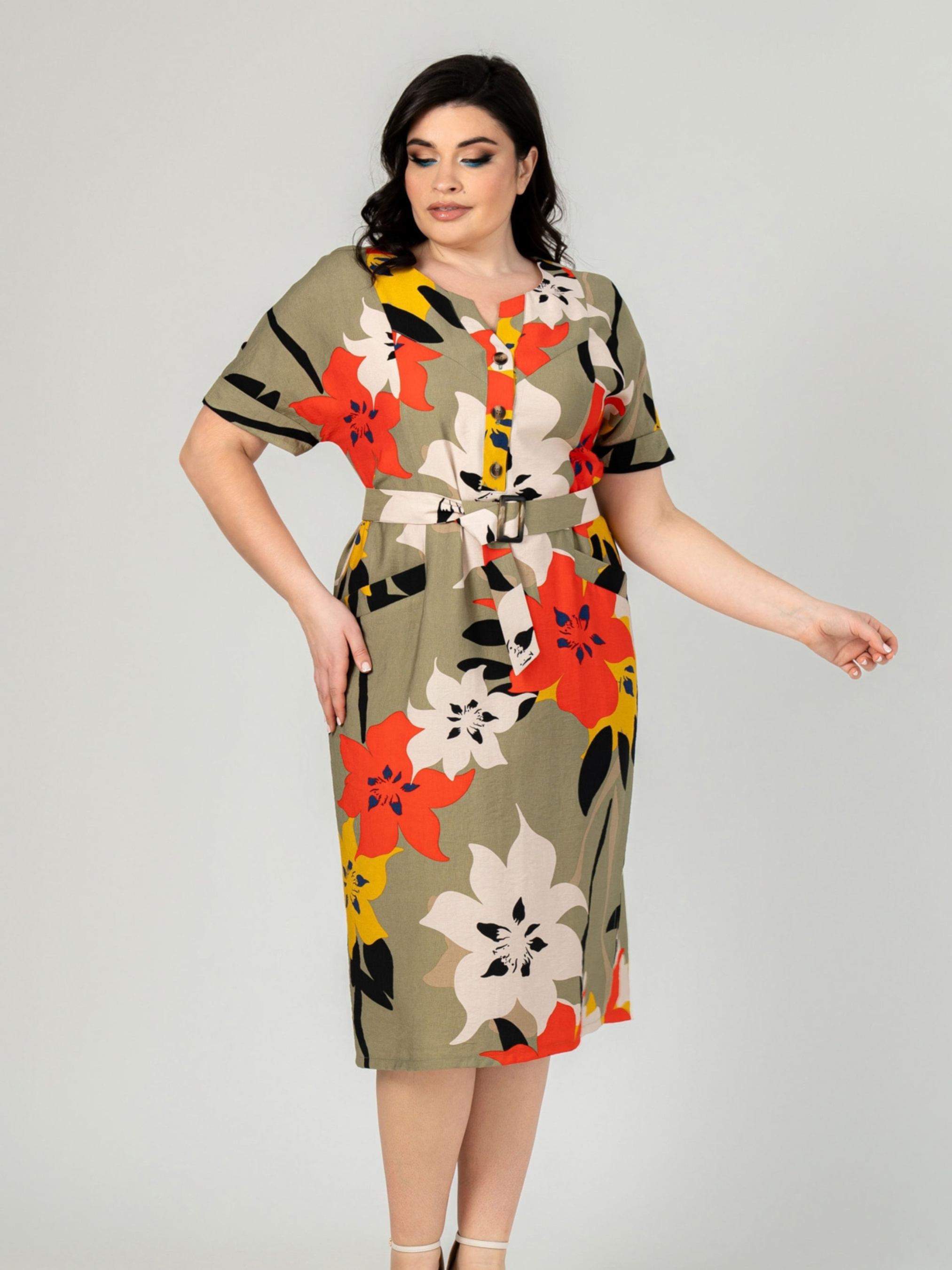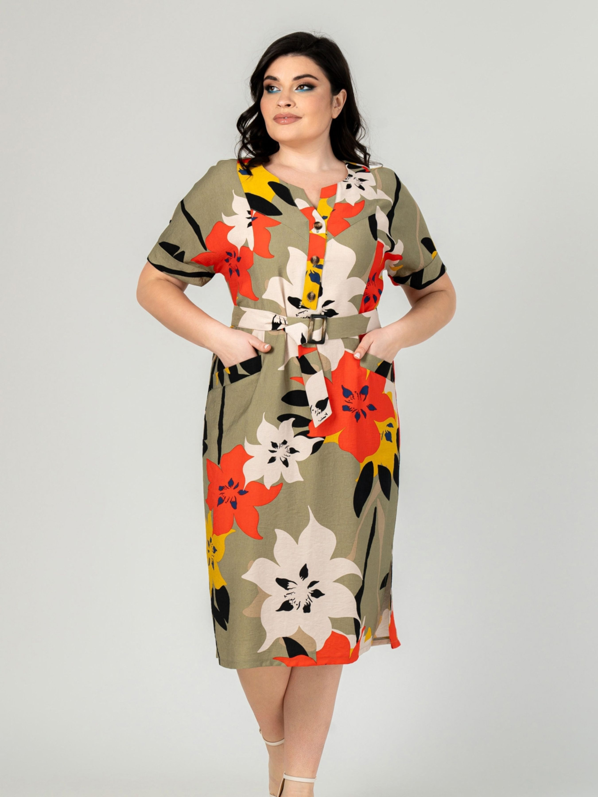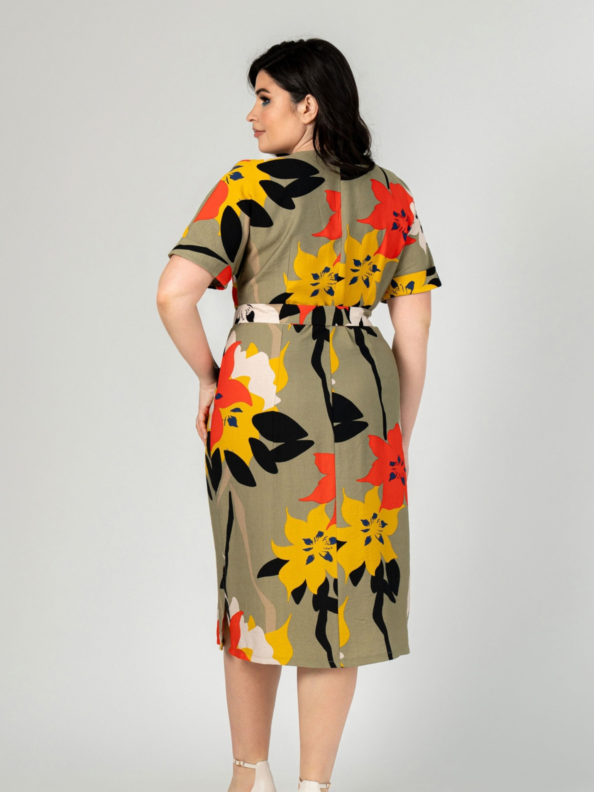 Платье миди All Posa модель ap101910p-olivka-pomaranchevij