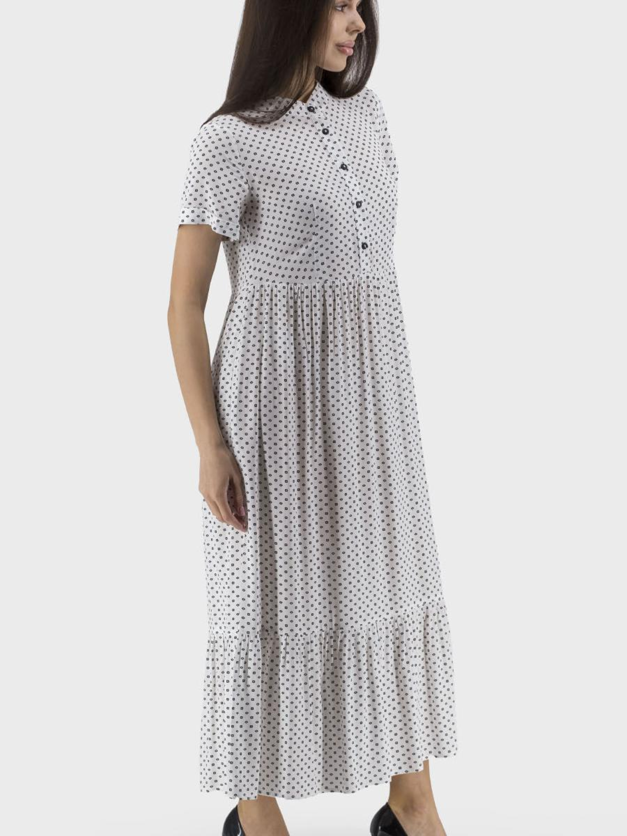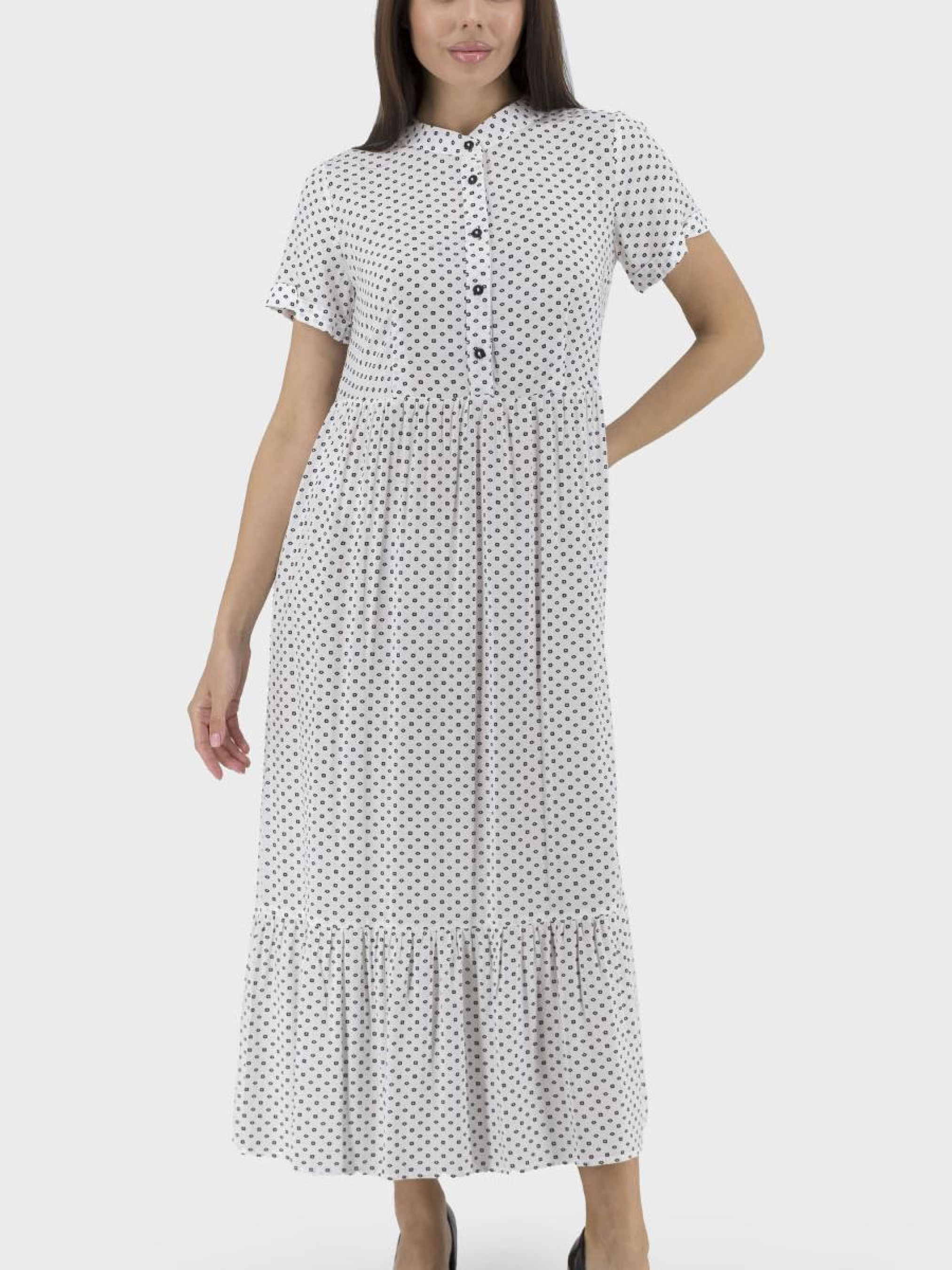 Стильное женское платье с цветочным узором – идеальный выбор для лета! Этот спортивный и casual вариант гардероба сочетает комфорт и современный стиль. Платье выполнено без подкладки, что позволяет коже дышать даже в самые жаркие дни. Втачный короткий рукав и воротник-стойка придают оригинальность, а удобная застежка на пуговицы обеспечивает легкость надевания. Практические втачные карманы придадут модели функциональности. Прямой силуэт подойдет для разных фигур, придавая свободу движениям. Доступное в классическом черном и белом цветах, это платье станет незаменимой частью вашего летнего гардероба.