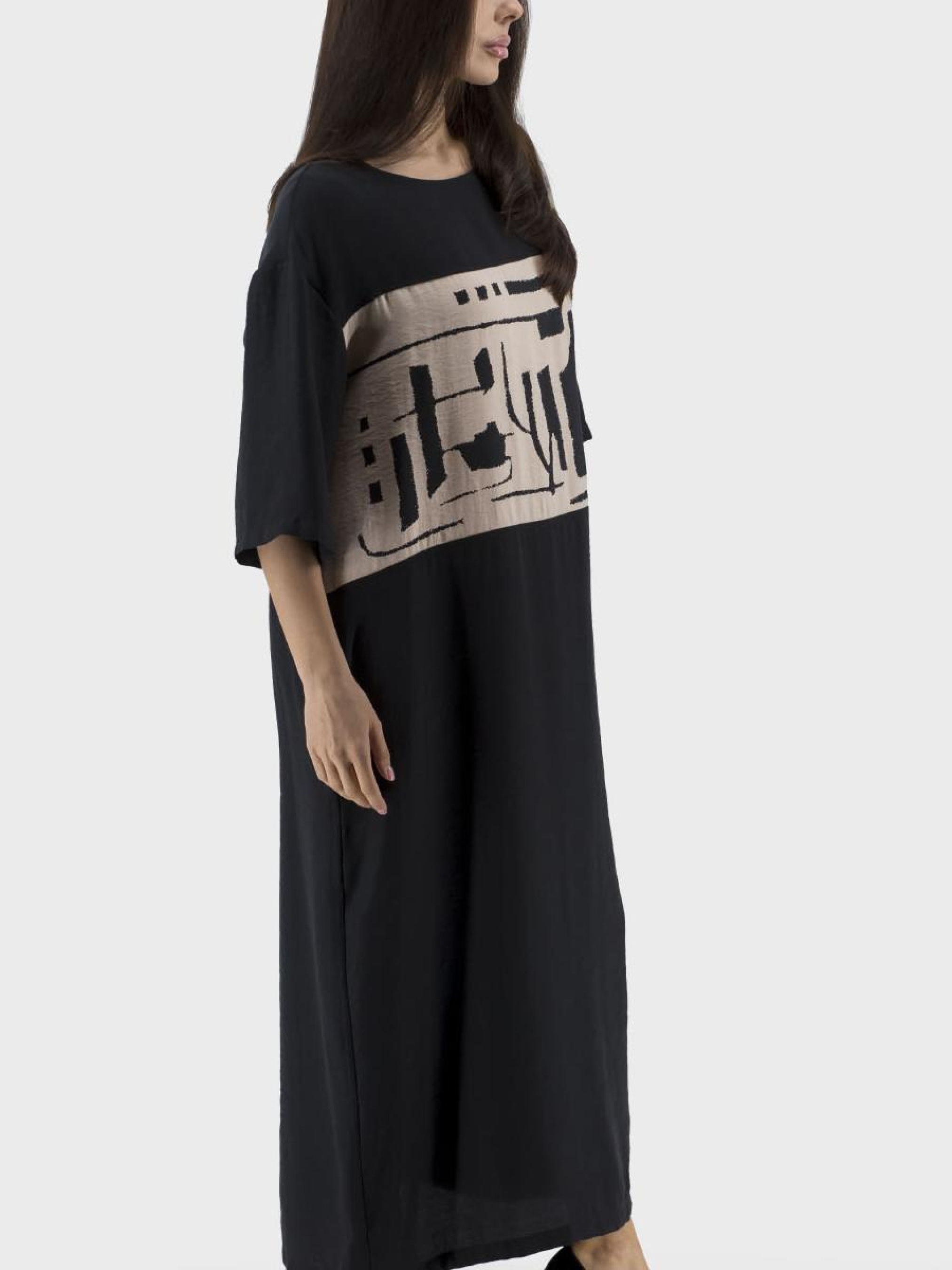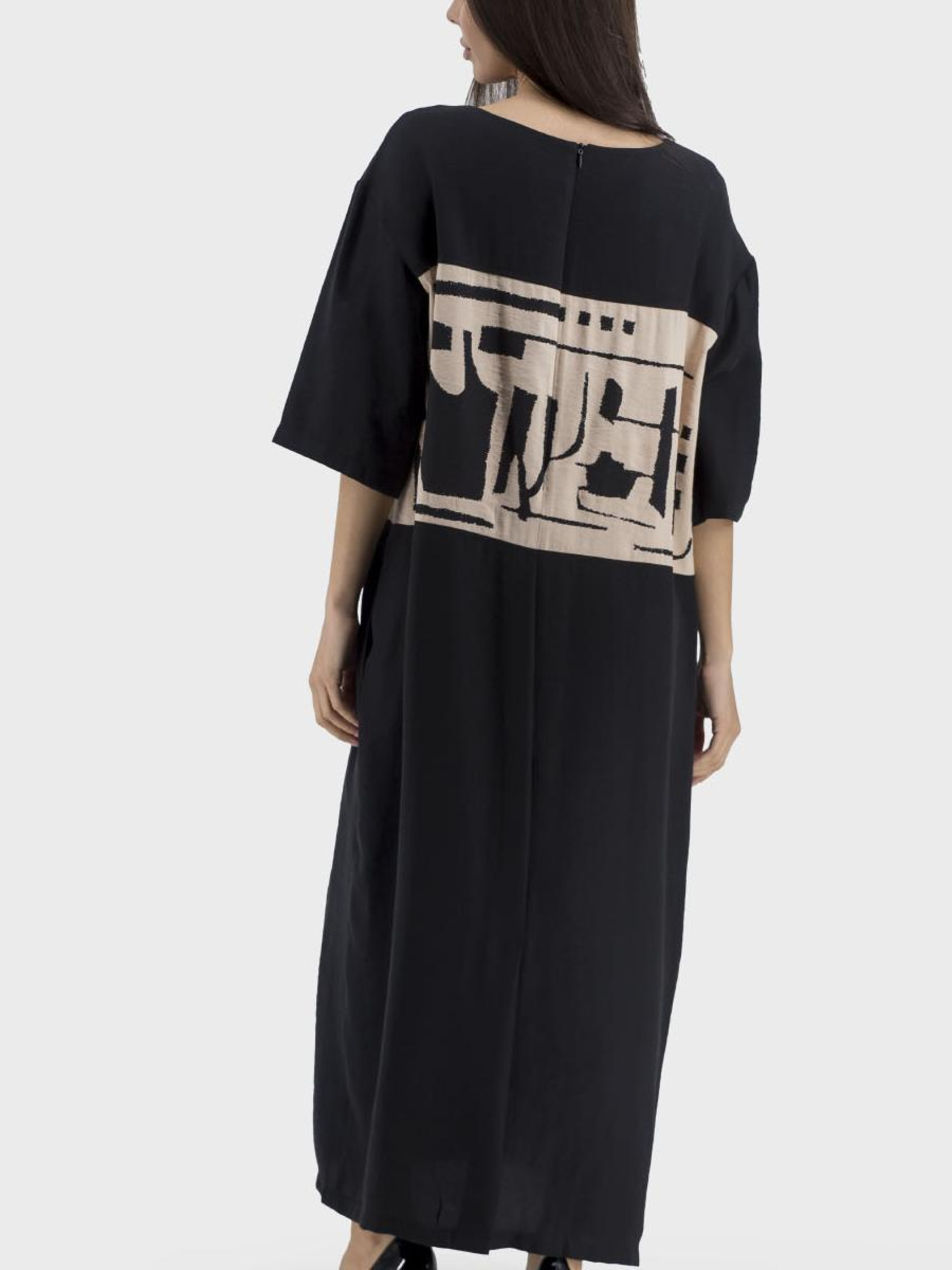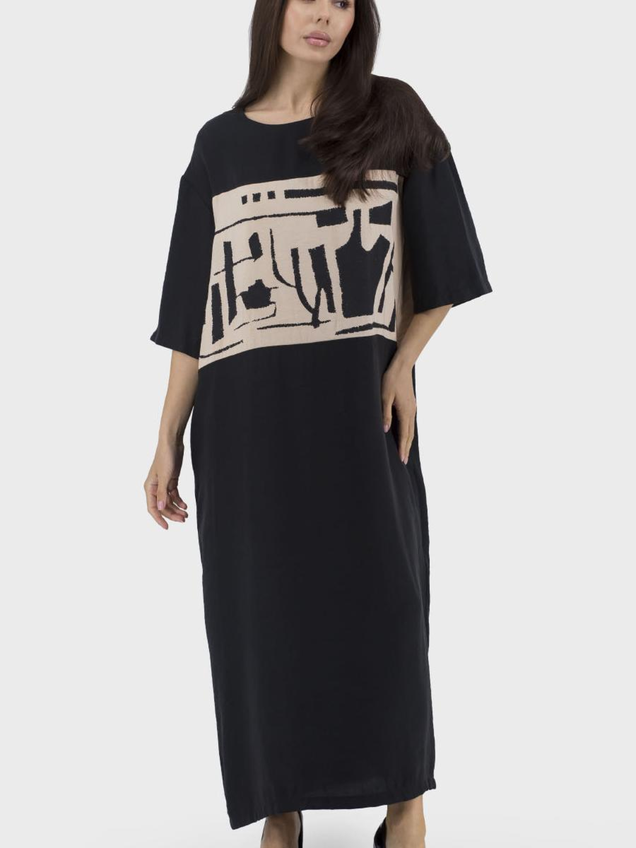 Раскройте свой личный стиль этим летом с женским платьем, что сочетает в себе комфорт и элегантность спортивно-casual стиля. Это черно-белое платье с рисунками и надписями станет вашим любимым выбором для активного дня. эффектность вашему образу, а круглый вырез и молния придают изысканности. Без подкладки, это легкое платье создано для комфортного ношения в летние дни.