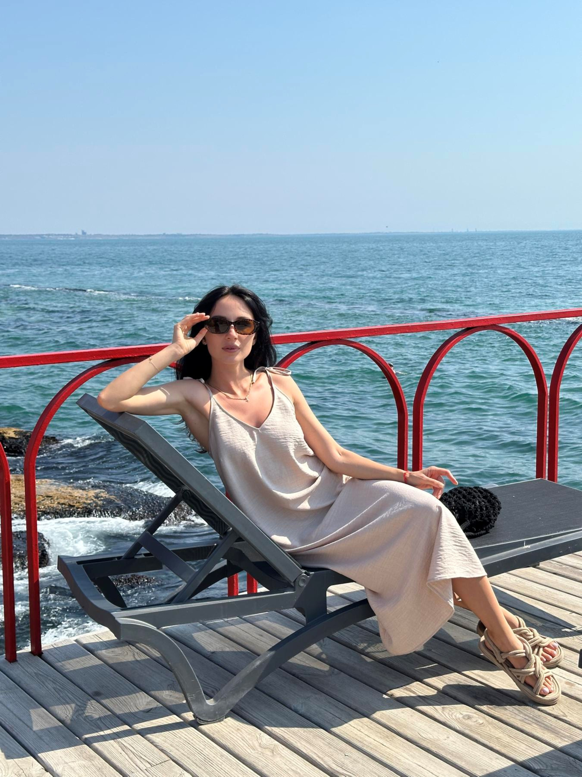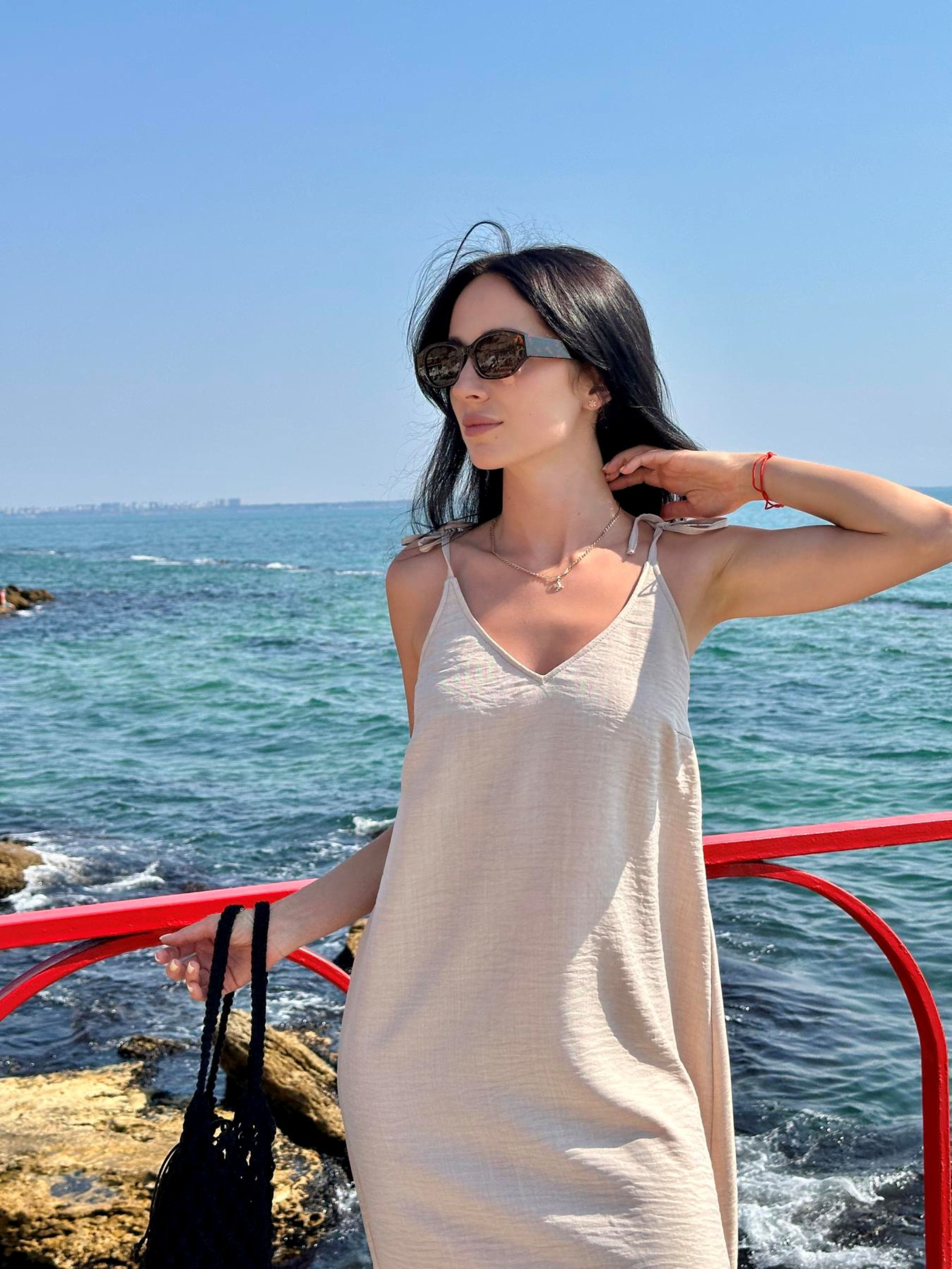 Летний сарафан на завязках – в трендовом песочном цвете Сарафан Sandy длинный песочного цвета – легкость, элегантность и комфорт для лета. Мечта каждой женщины на лето – легкий и стильный сарафан, в котором хочется жить! Sandy в длинном варианте – это воплощение летней свободы, женственности и природной красоты. Завязки на плечах придают нежности, а ручей силуэт делает образ изящным и расслабленным. Цвет: трендовый песочный — мягкий, теплый, подходит к загару и легко комбинируется с аксессуарами. Длина: макси – удобная для города, путешествий и пляжного отдыха. Фасон: свободный крой на завязках – регулируется индивидуально, подходит для разных типов фигуры. Ткань: 80% вискоза, 20% полиэстер — приятная на ощупь, легкая, почти не мнется. Сарафан Sandy maxi – идеальный спутник для солнечных дней, вечерних прогулок и морских путешествий. Просто добавьте шляпу, сумку и любимые сандалии – и вы готовы к отдыху. Длина по боковому шву – 100 см. Размеры: S, M, L, XL