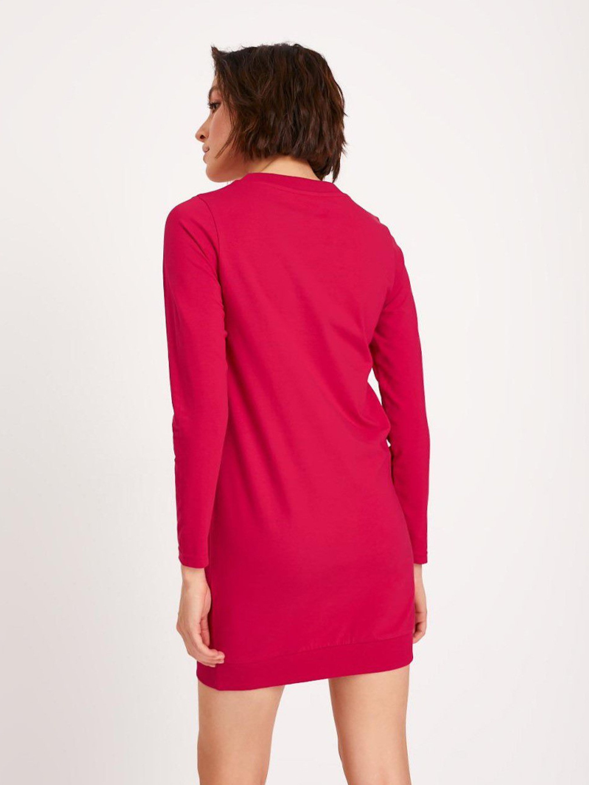 Трикотажное платье линейки EVB 24 в спортивном стиле с большими пришивными карманами спереди. Отличный вариант для ежедневного использования в прохладные дни весны, осени. Изделие выполнено из цельного трикотажа. Вырез горловины и низ с рубчатой отделкой. Сезон: Весна-лето Состав: 100% хлопок Размер на модели – S Рост модели – 178 см