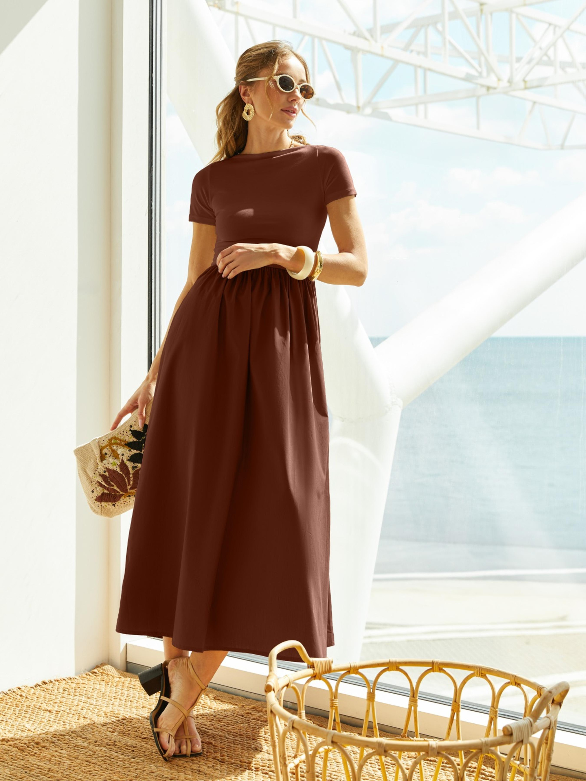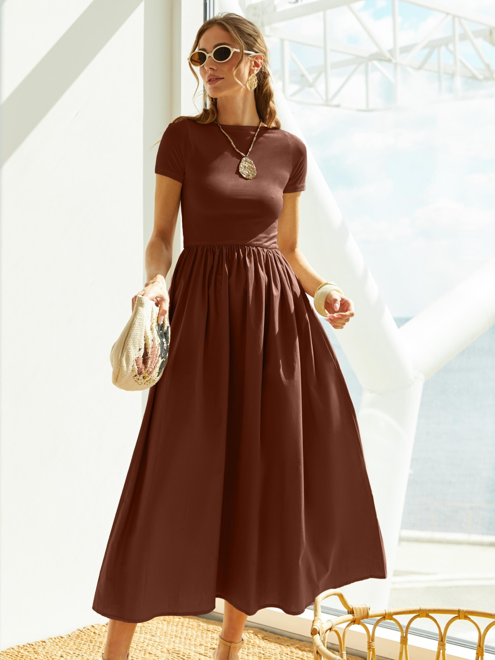 Повседневное платье из высококачественного турецкого материала. Верх выполнен из вискозы, хорошо тянется. Нижняя часть — из хлопка, сохраняет форму в течение дня. Модель с круглым вырезом и короткими рукавами. Отрезная линия талии и свободная юбка обеспечивают комфорт в движении.