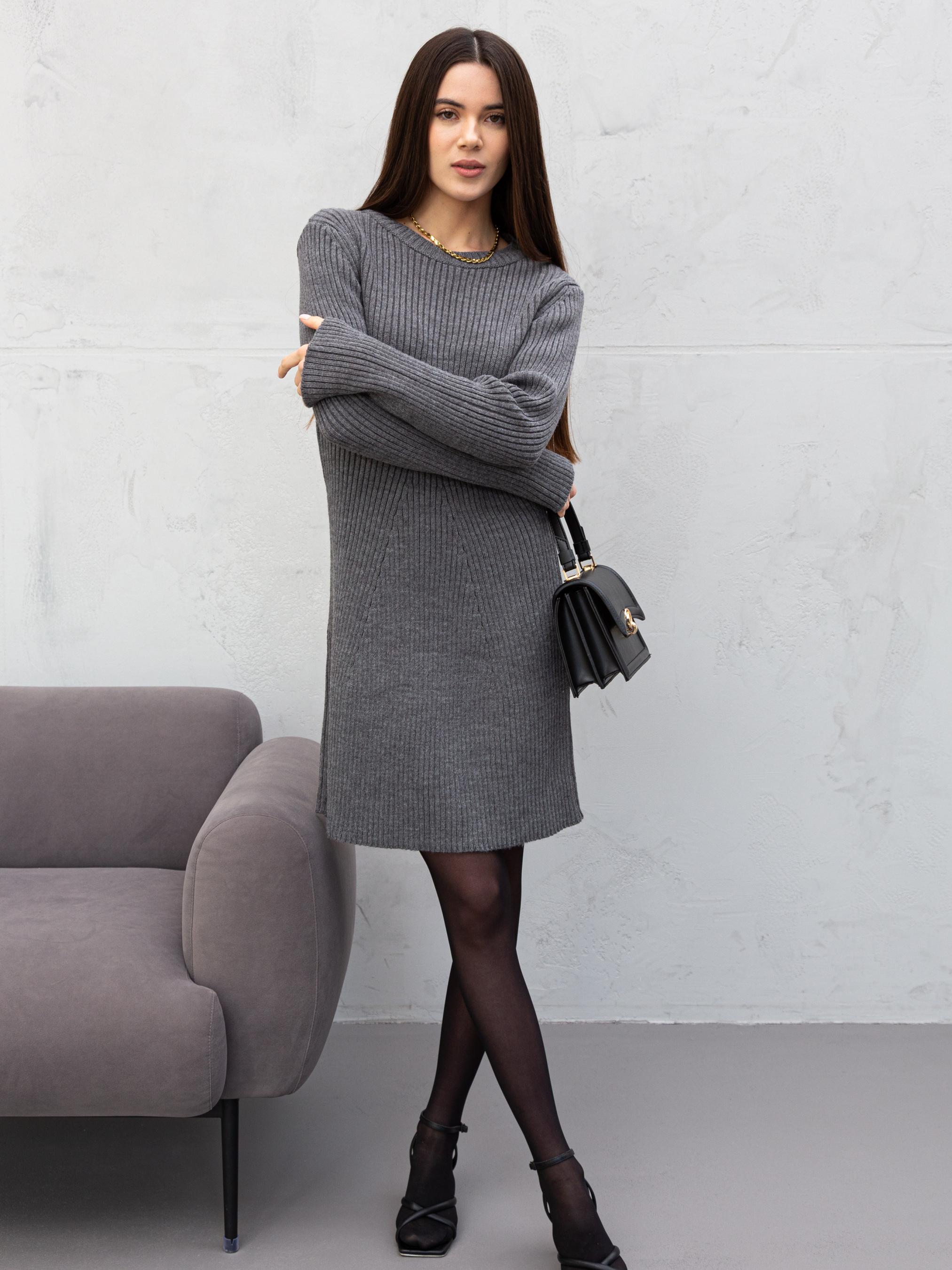 Сукня в'язана з довгими рукавами - це універсальний і зручний варіант для повсякденного носіння. Її особливості та переваги роблять її незамінною в гардеробі сучасної жінки, це універсальний базовий предмет гардеробу. Її можна носити в холодну пору року, поєднуючи з різними елементами одягу і аксесуарами.Переваги: • Комфорт: В'язана тканина м'яка і приємна до тіла, не викликає подразнень. • Тепло: Завдяки своїм властивостям, акрил добре зберігає тепло, що робить таку сукню ідеальною для осінньо-зимового періоду. • Еластичність: Тканина добре тягнеться, що забезпечує свободу рухів. • Формостійкість: Сукня довго зберігає свою форму і не мнеться. В'язані сукні з акрилу та поліестеру - це чудовий вибір для повсякденного носіння завдяки своїй практичності та комфорту. Щоб зберегти їх в ідеальному стані, дотримуйтесь наступних рекомендацій: Прання: • Температура води: Оптимальна температура для прання - 30-40°C. Вища температура може призвести до деформації виробу. • Режим прання: Вибирайте делікатний режим прання або режим для синтетичних тканин. • Засіб для прання: Використовуйте рідкий засіб для кольорових тканин або спеціальний засіб для синтетики. • Сушіння: • Сушіння: Найкраще сушити сукню в розправленому вигляді на горизонтальній поверхні, подалі від прямих сонячних променів. Прасування: • Прасування: Як правило, в'язані вироби не потребують прасування. Якщо все ж таки необхідно, використовуйте мінімальну температуру праски і прасуйте через вологу тканину. Дотримуючись цих простих правил, ви зможете довго насолоджуватися комфортом і стилем, які надає ваша в'язана сукня.