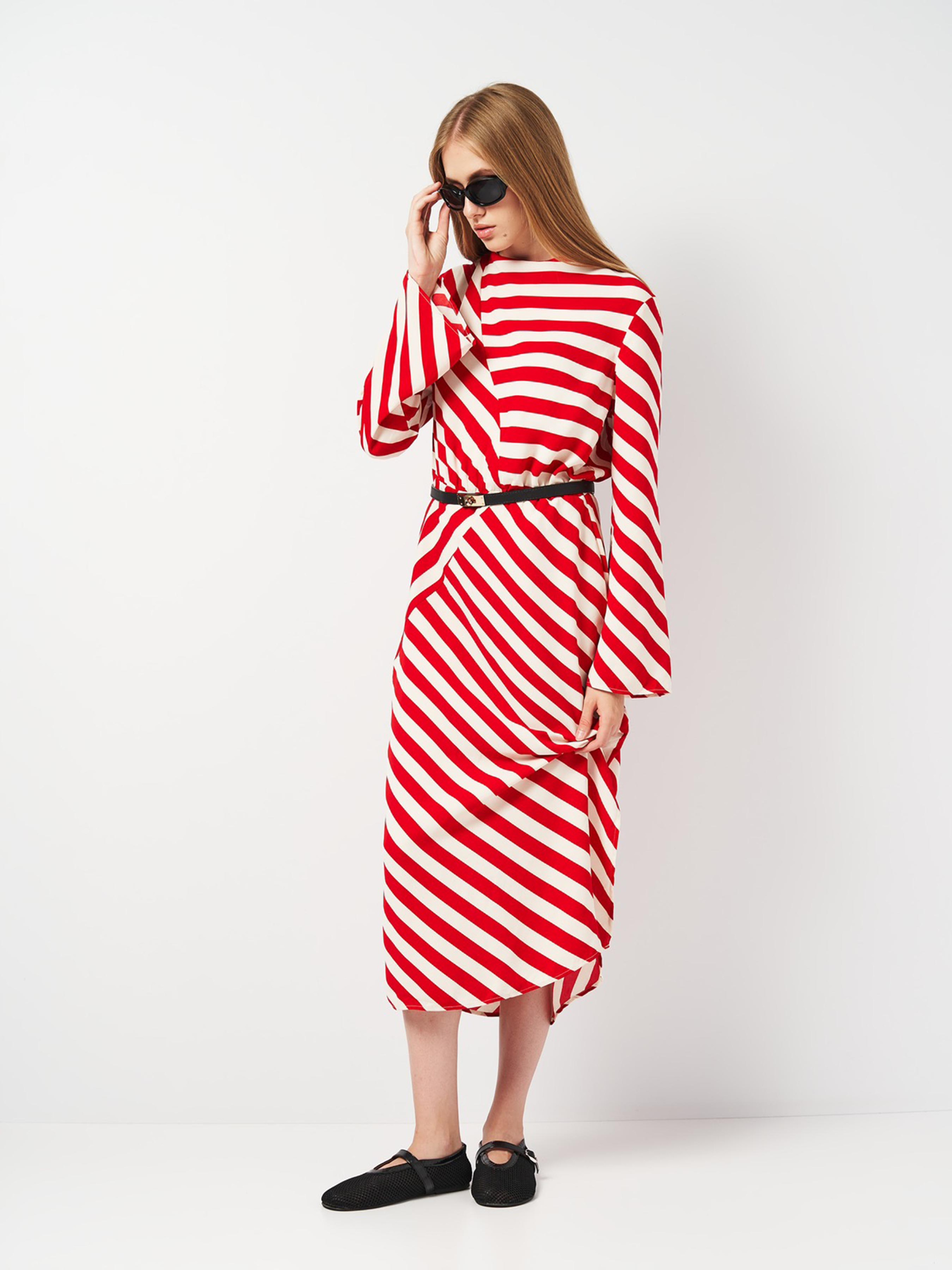 Платье макси H&M модель 5551101ral_Красно-белый