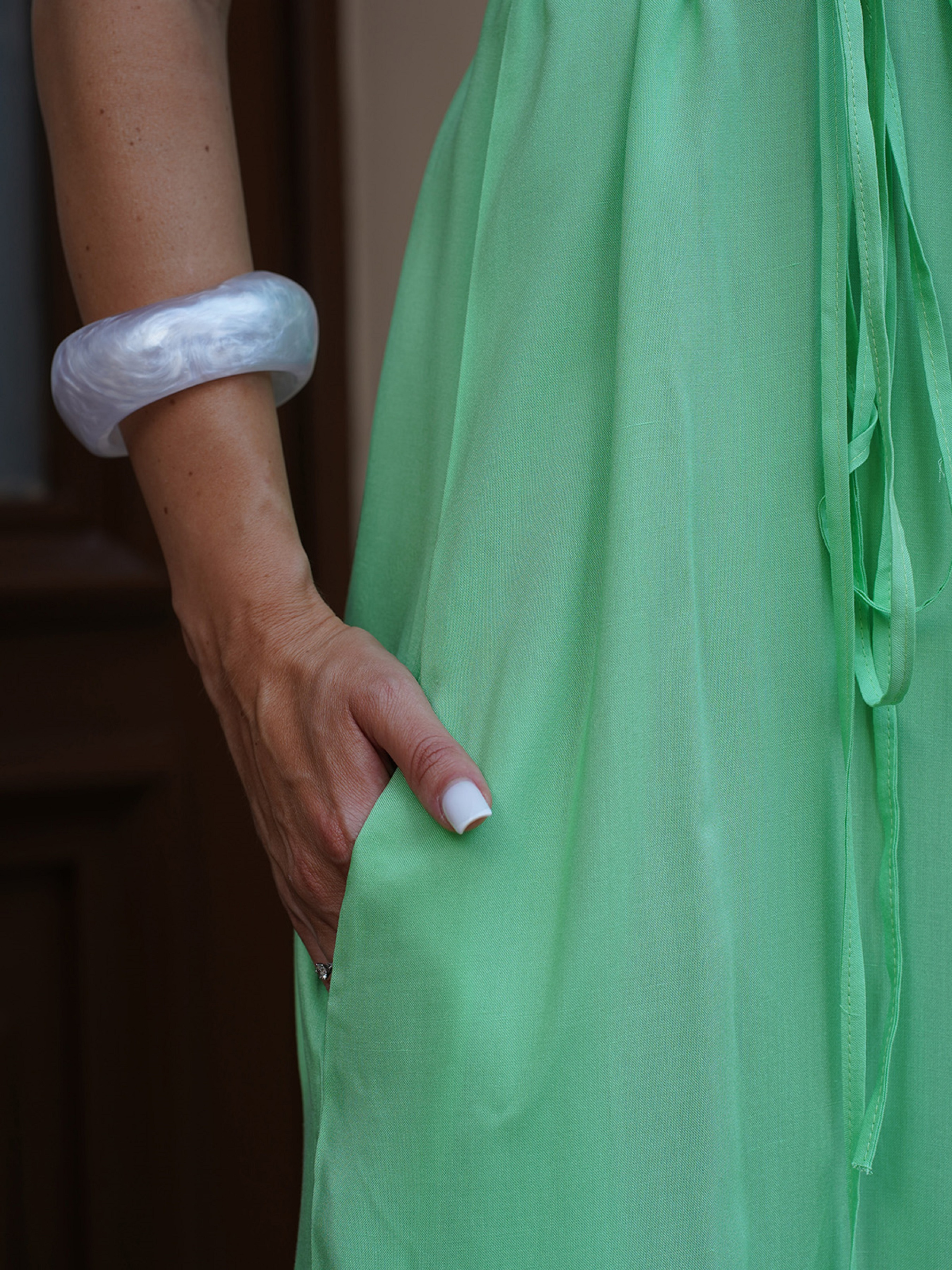 Салатовый длинный сарафан с двумя разрезами. Полуобхват: Грудь: S (48), M (50), L (52), XL (54), XXL (56), 3XL (58), Талия: S (52), M (54), L (56), XL (58), XXL (60), 3XL (62), Бедра: S (56), M (58), L (60), XL (62), XXL (64), 3XL (66), Длина изделия - 139-142*, Ткань: Низкой эластичности.