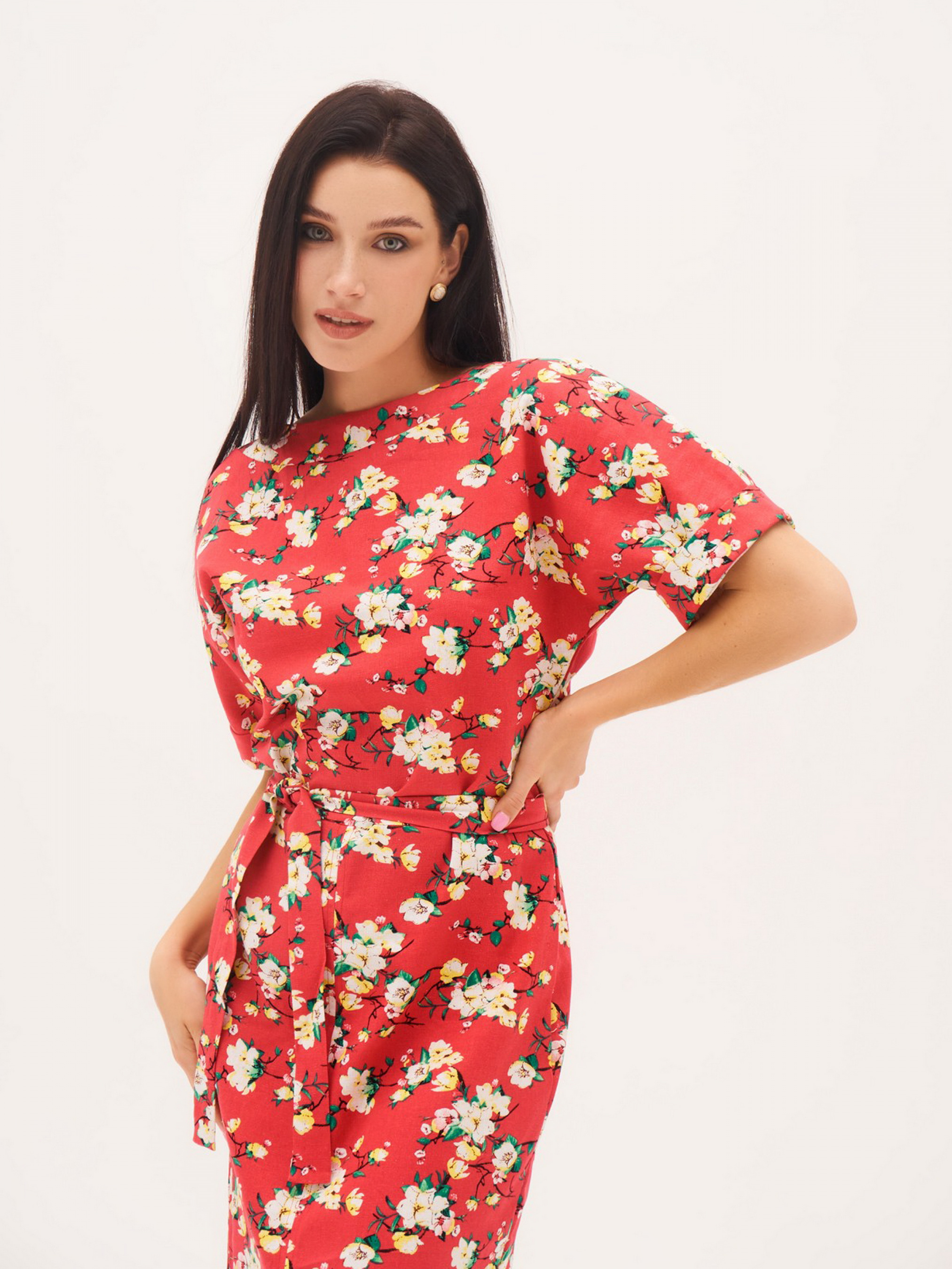 Состав: 100% хлопок. Полуобхват: Грудь: S (45), M (47), L (49), XL (51), Талия: S (39), M (41), L (43), XL (45), Бедра: S (47), M (49), L (51), XL (53), Длина изделия - 118, Рукав - 25, Ткань: Низкой эластичности.