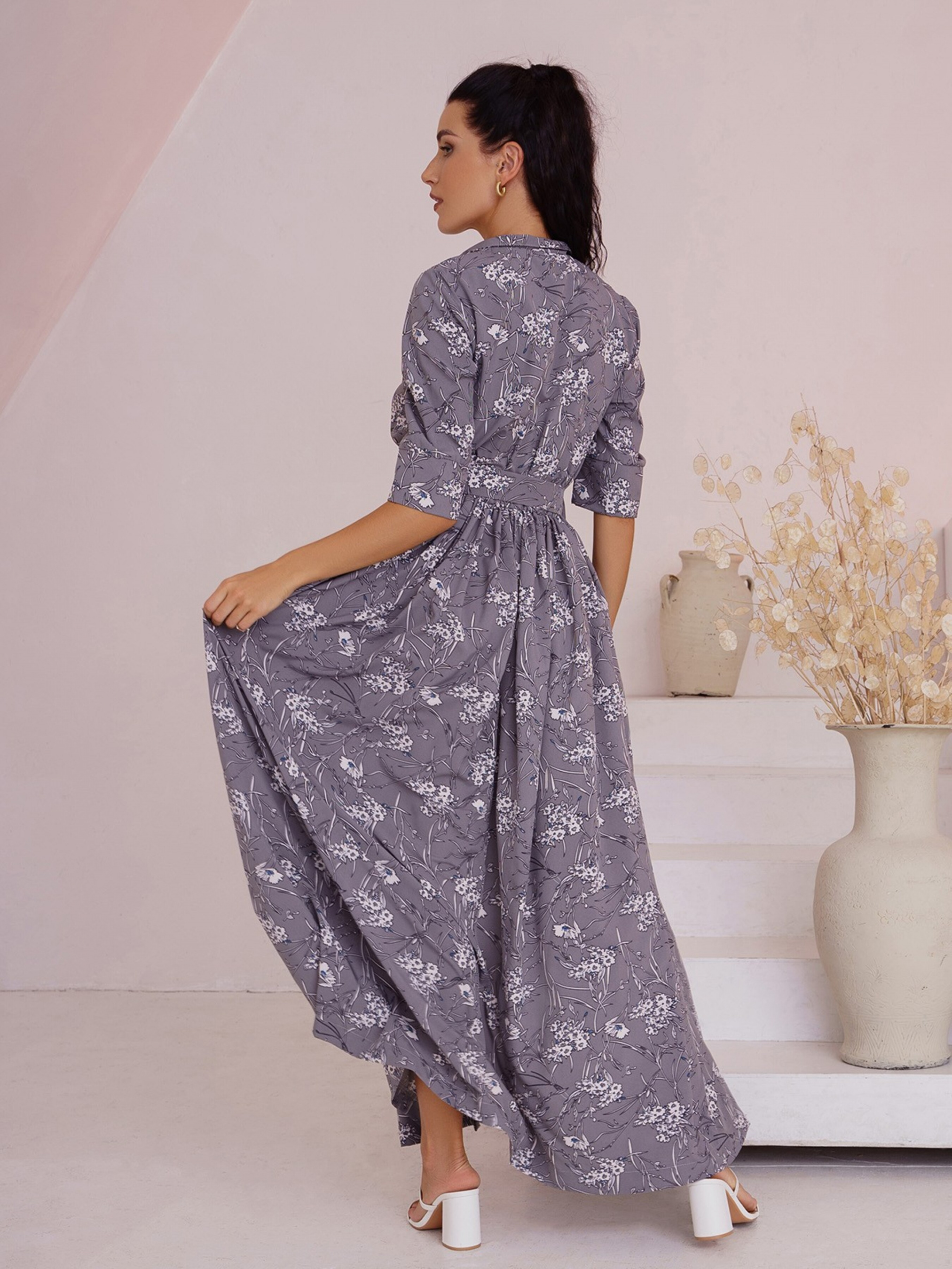 Платье макси ISSA Plus модель 13512_grey