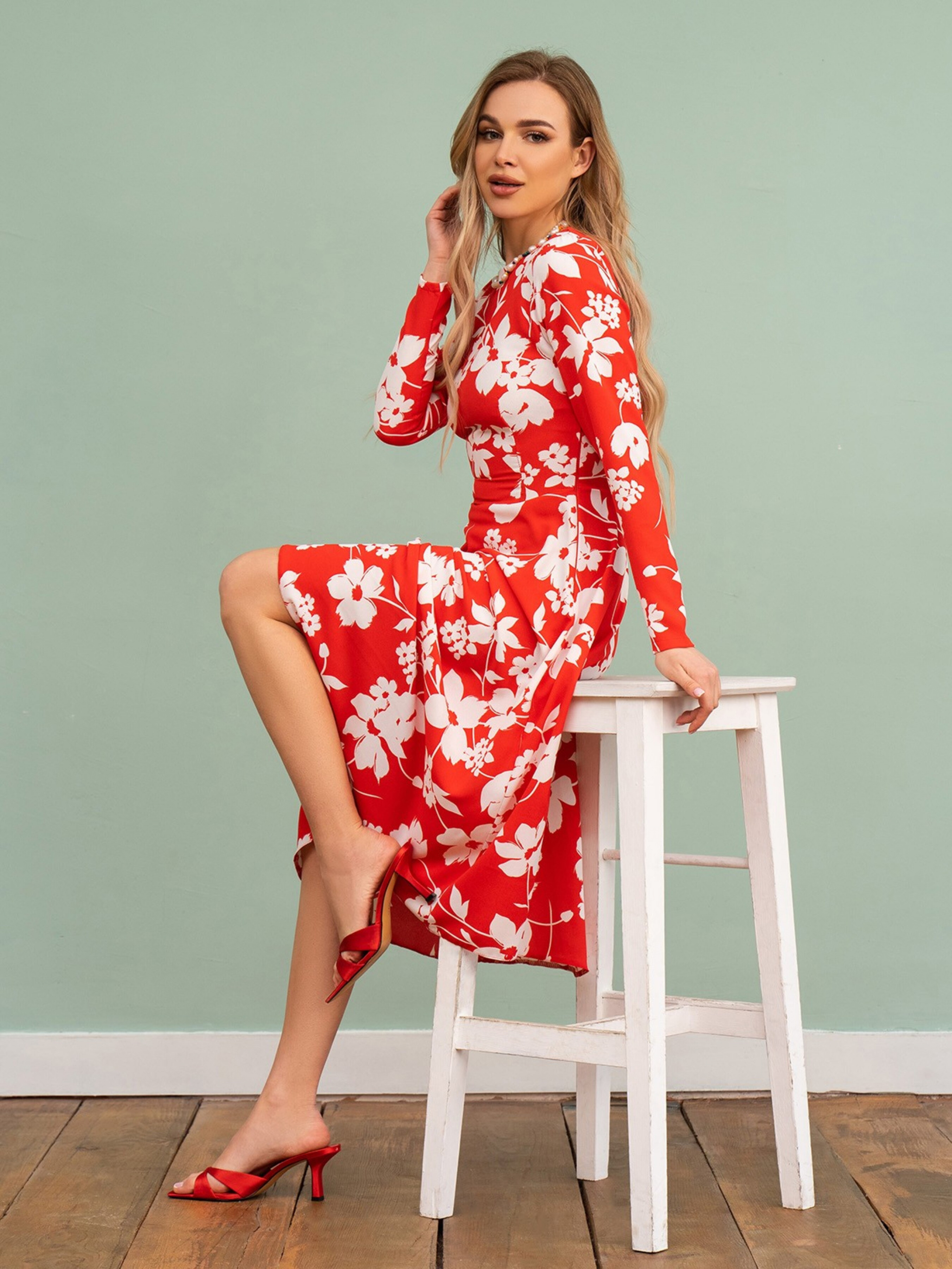 Платье миди ISSA Plus модель 13477A_red