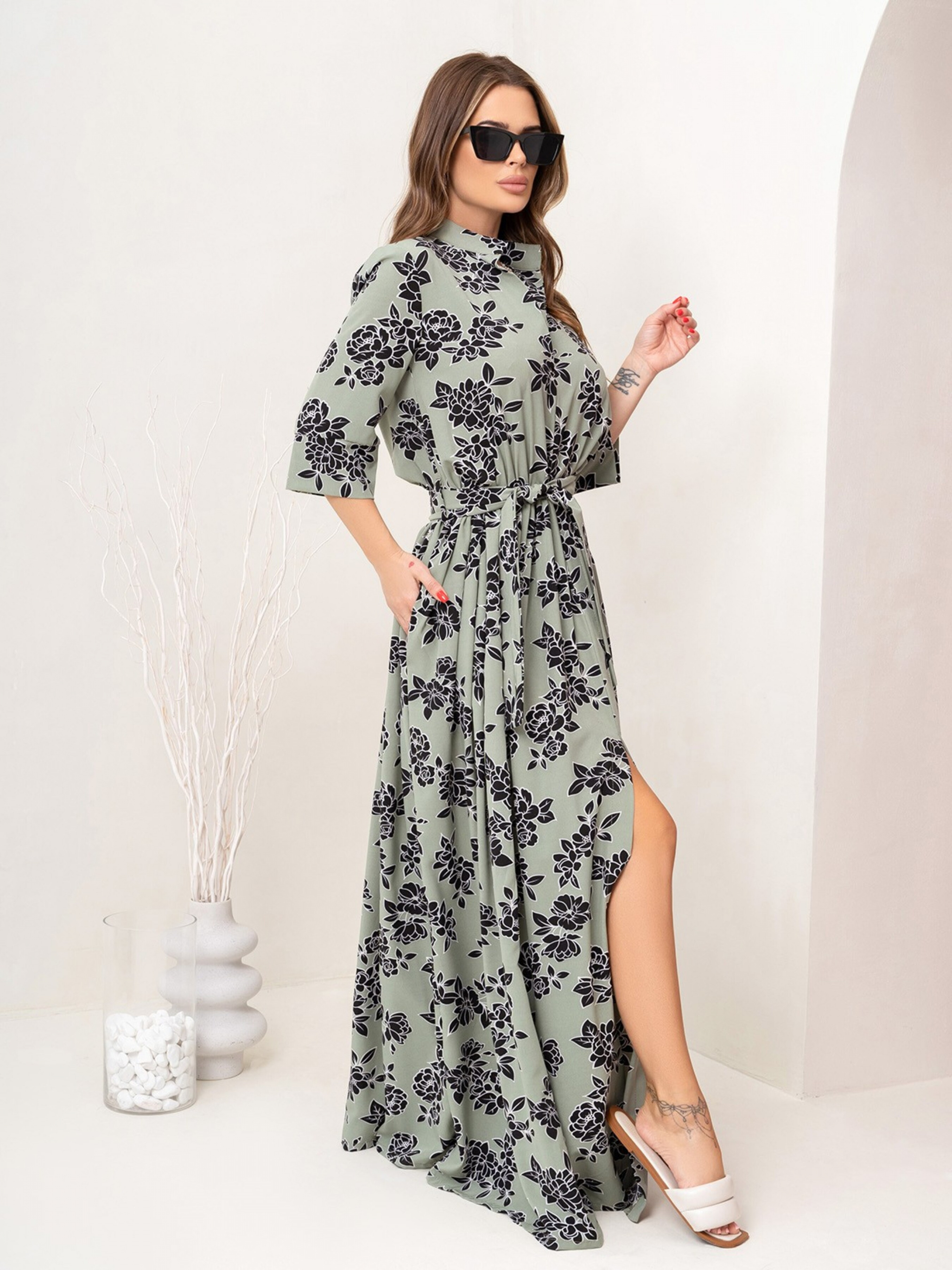 Платье макси ISSA Plus модель 14070_olive