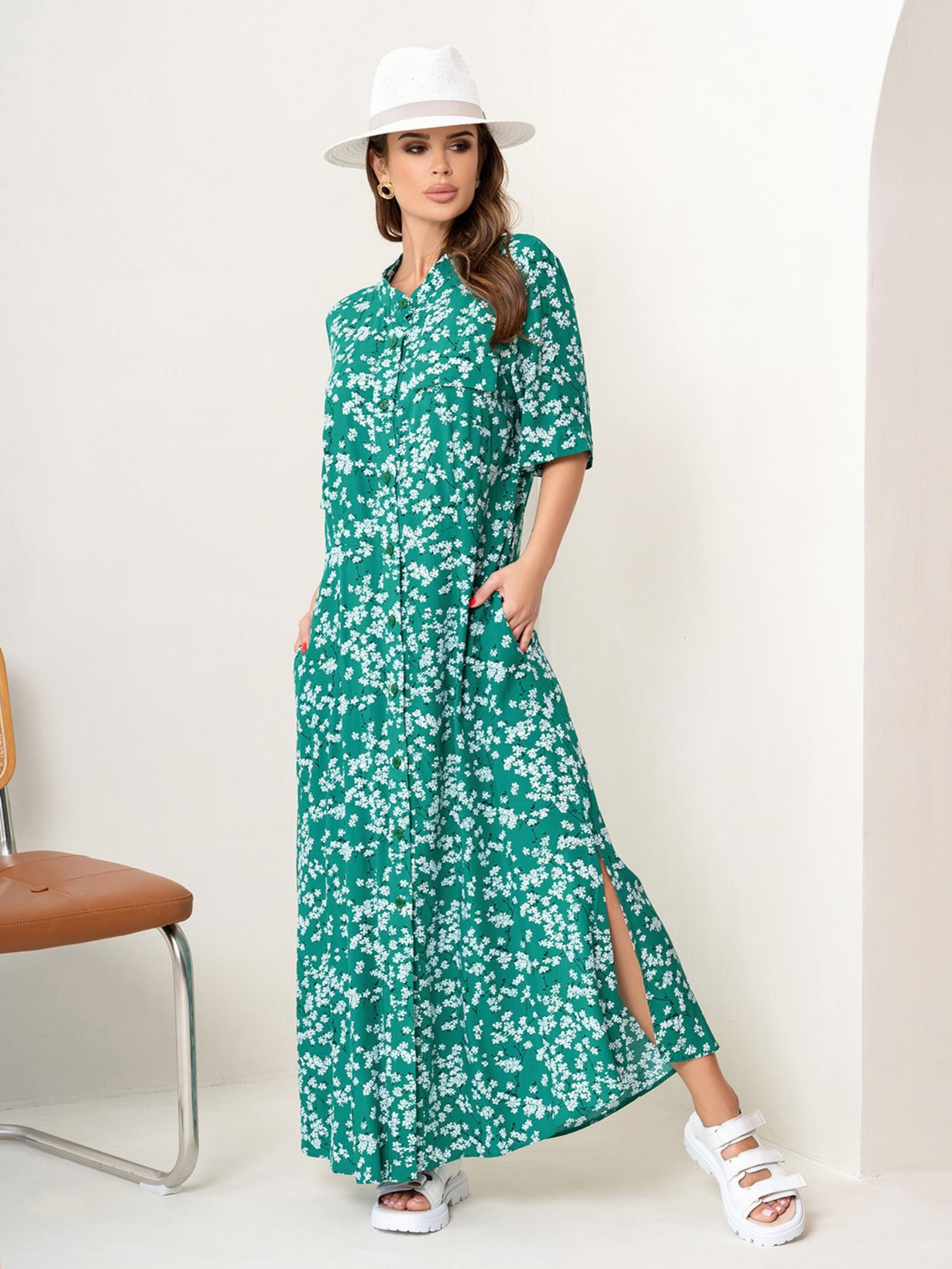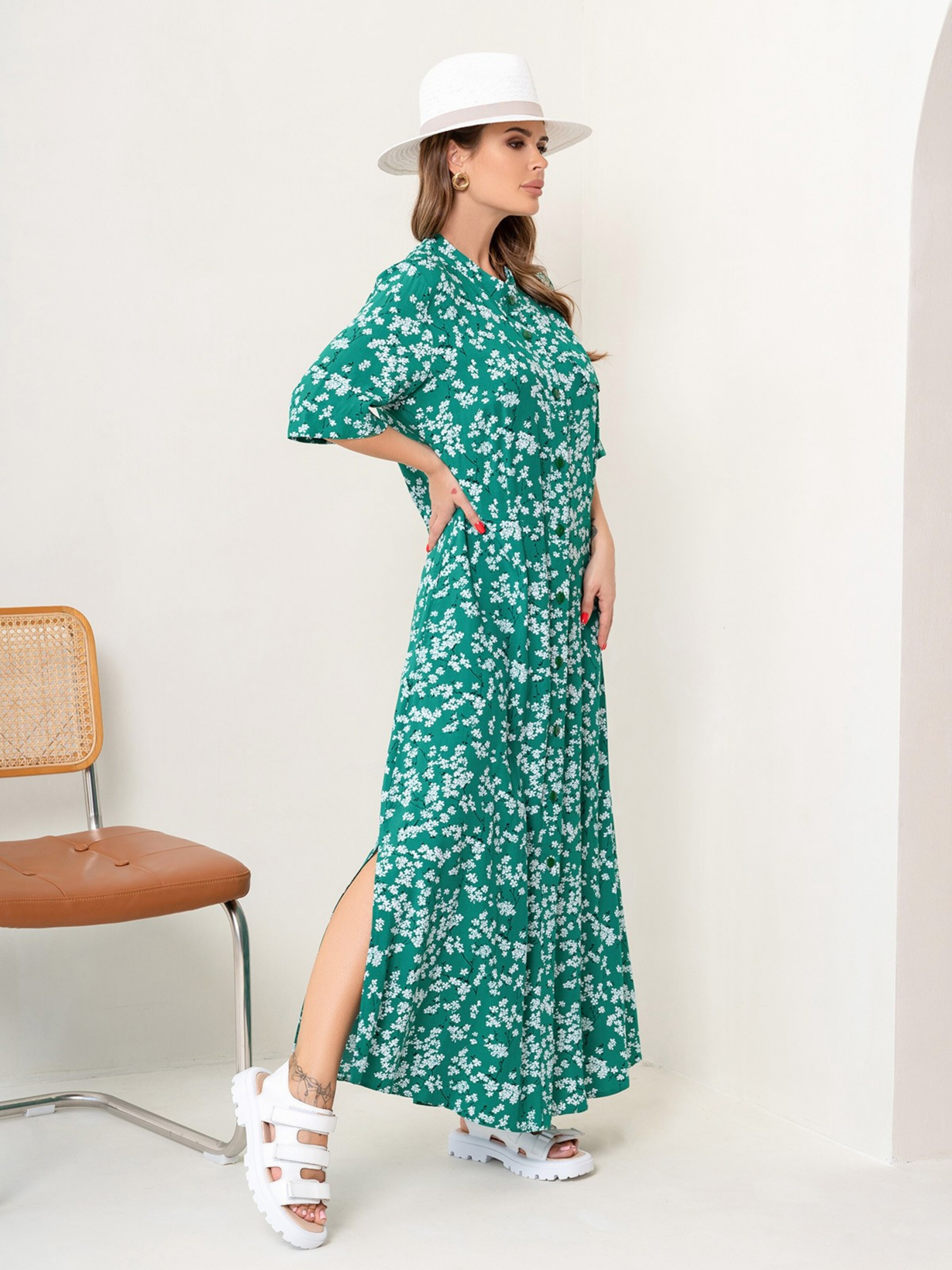 Платье макси ISSA Plus модель 14073_green