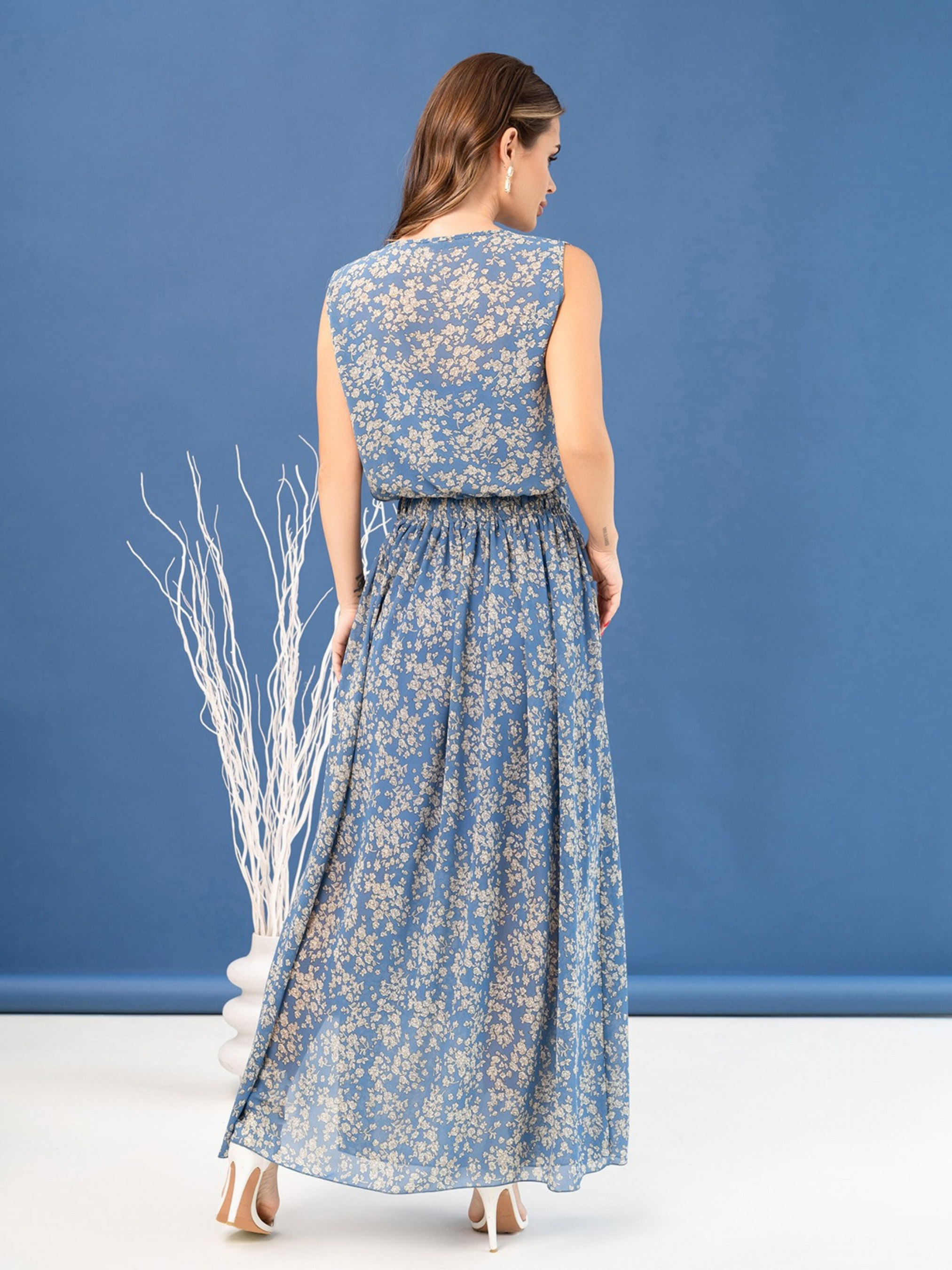Платье макси ISSA Plus модель 14057_blue