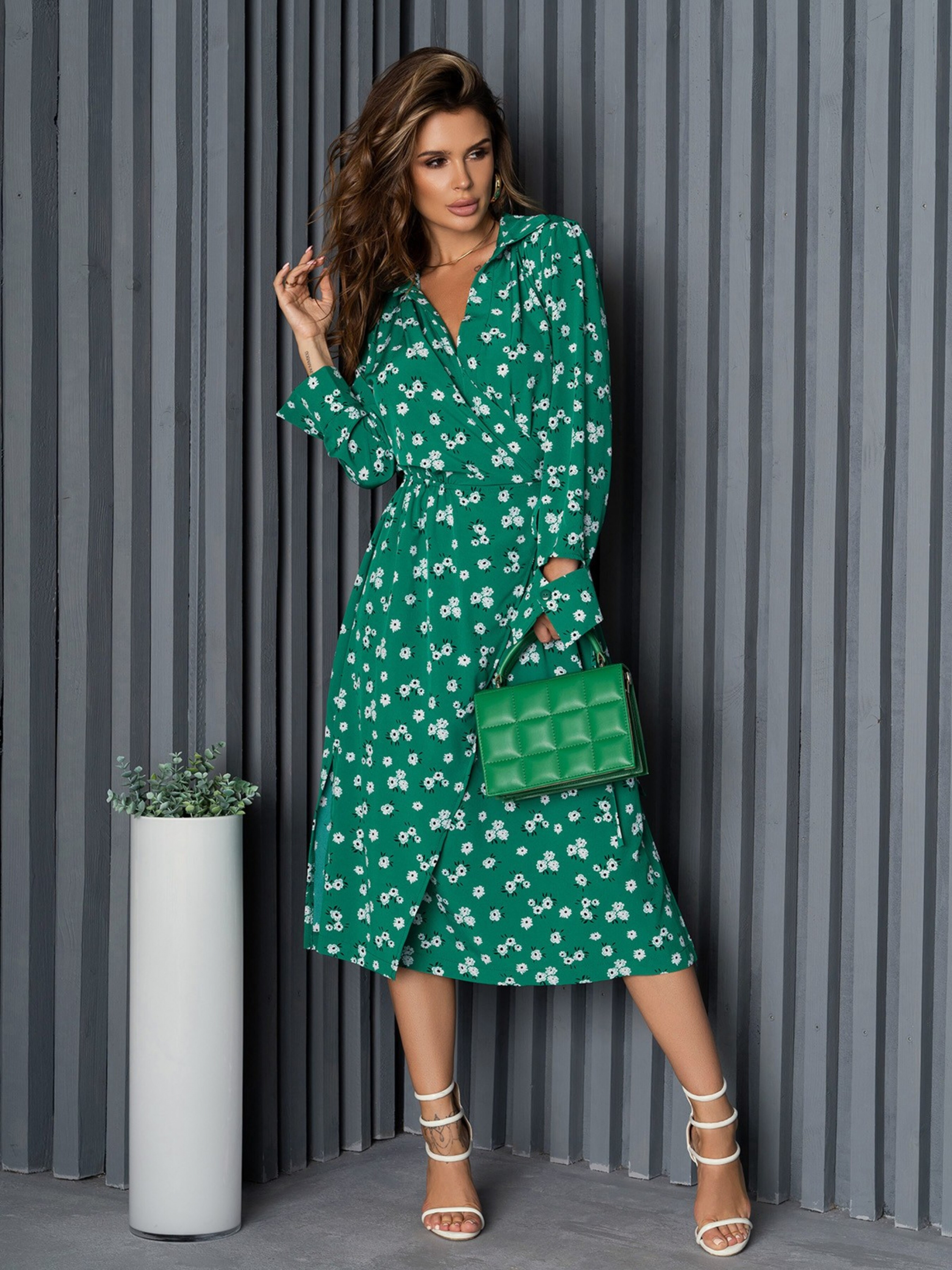 Платье миди ISSA Plus модель 14183_green