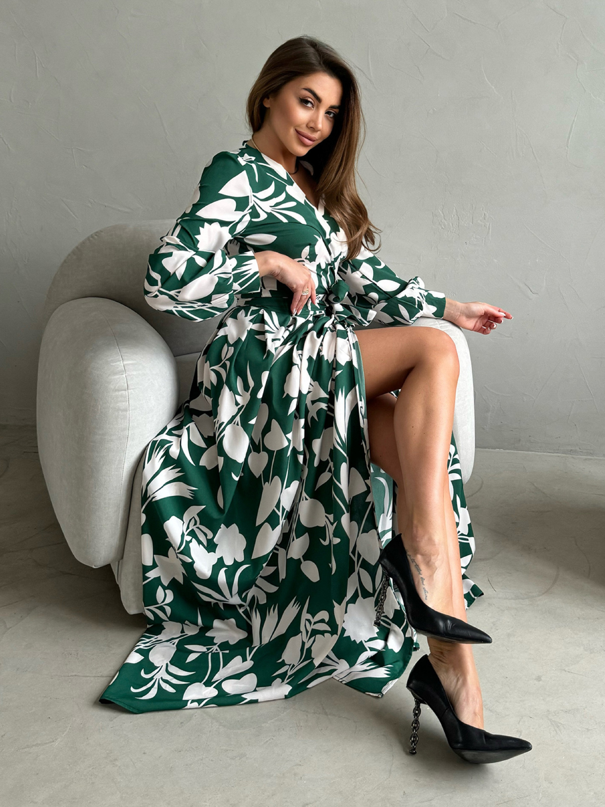 Платье макси ISSA Plus модель 14458_зеленый