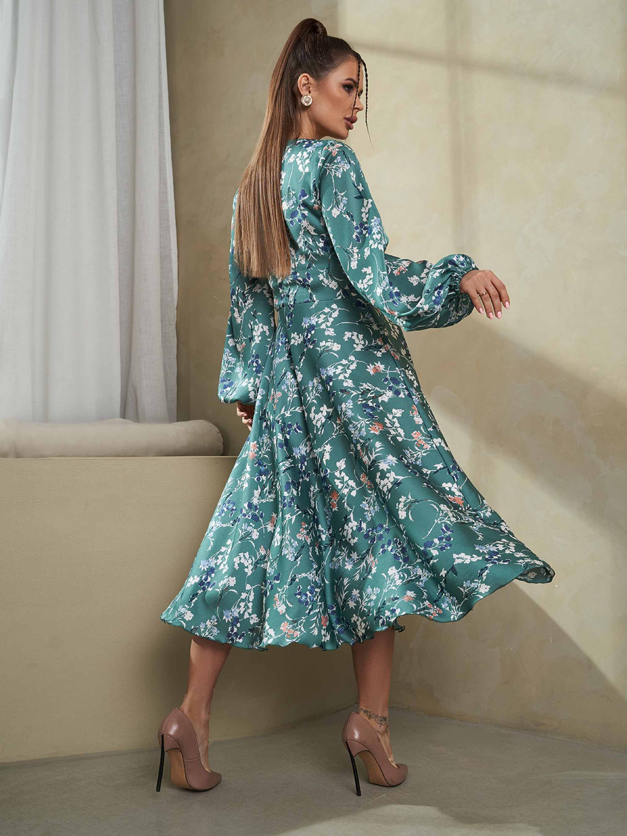 Платье миди ISSA Plus модель 14485_зеленый