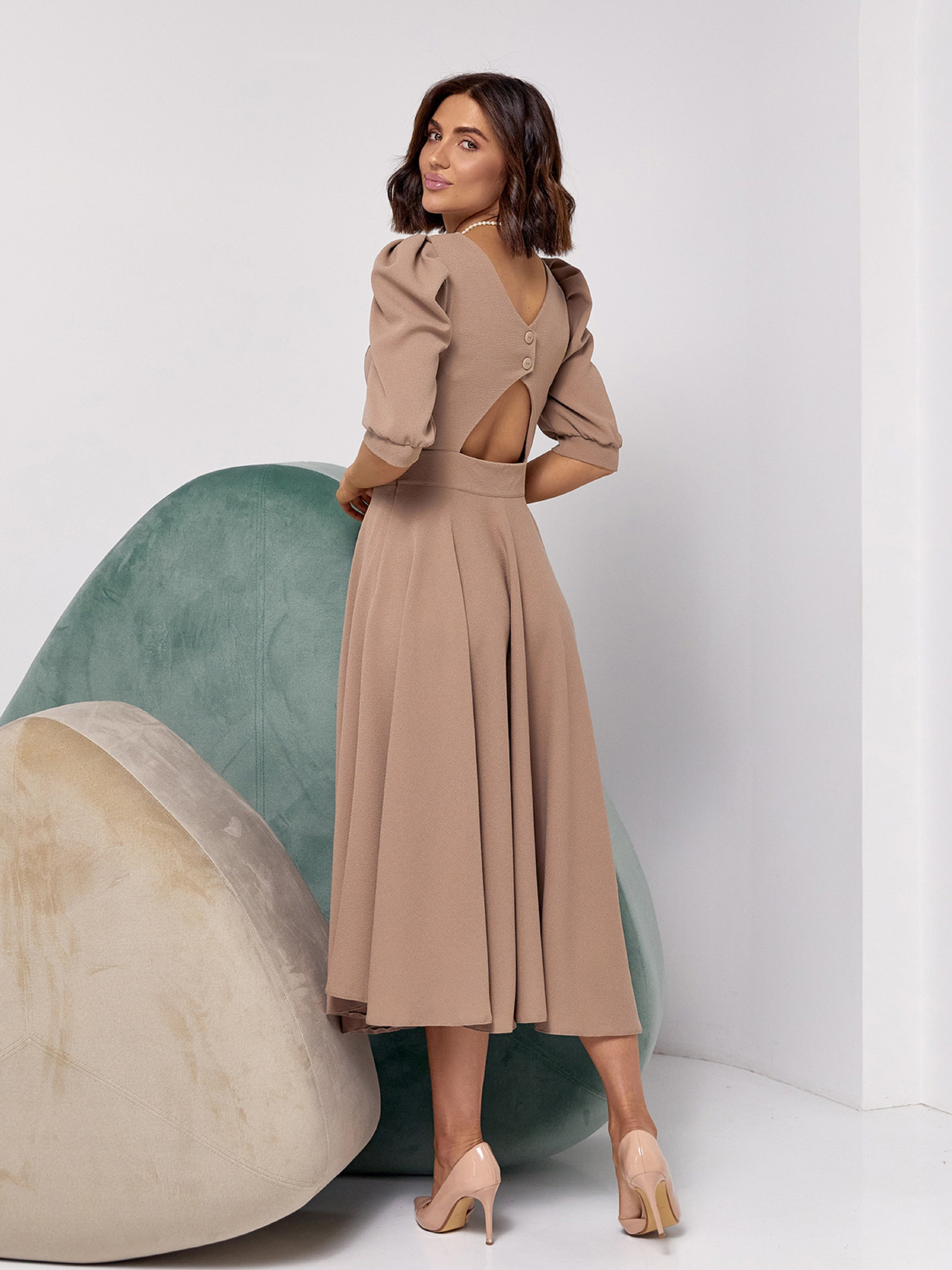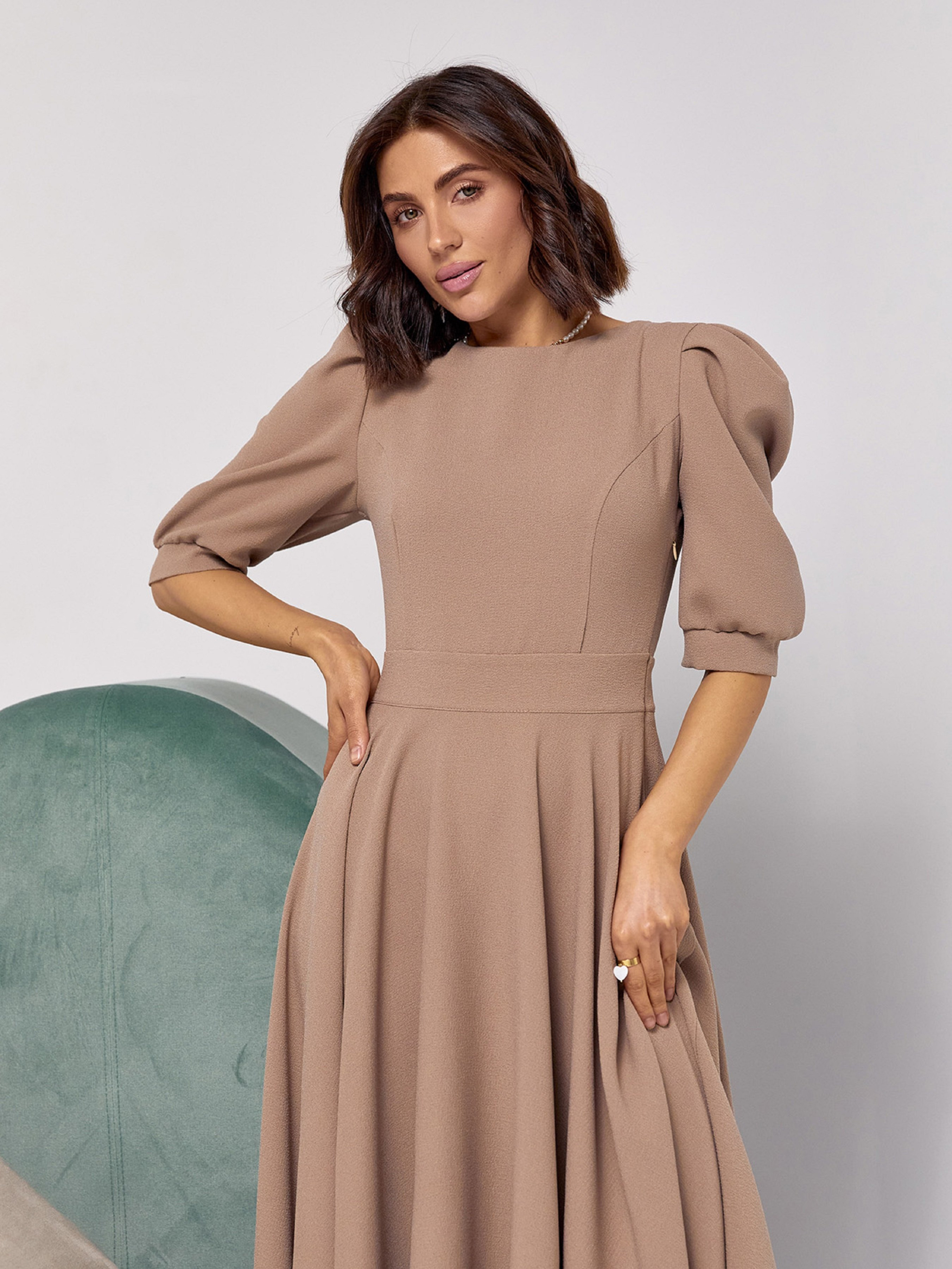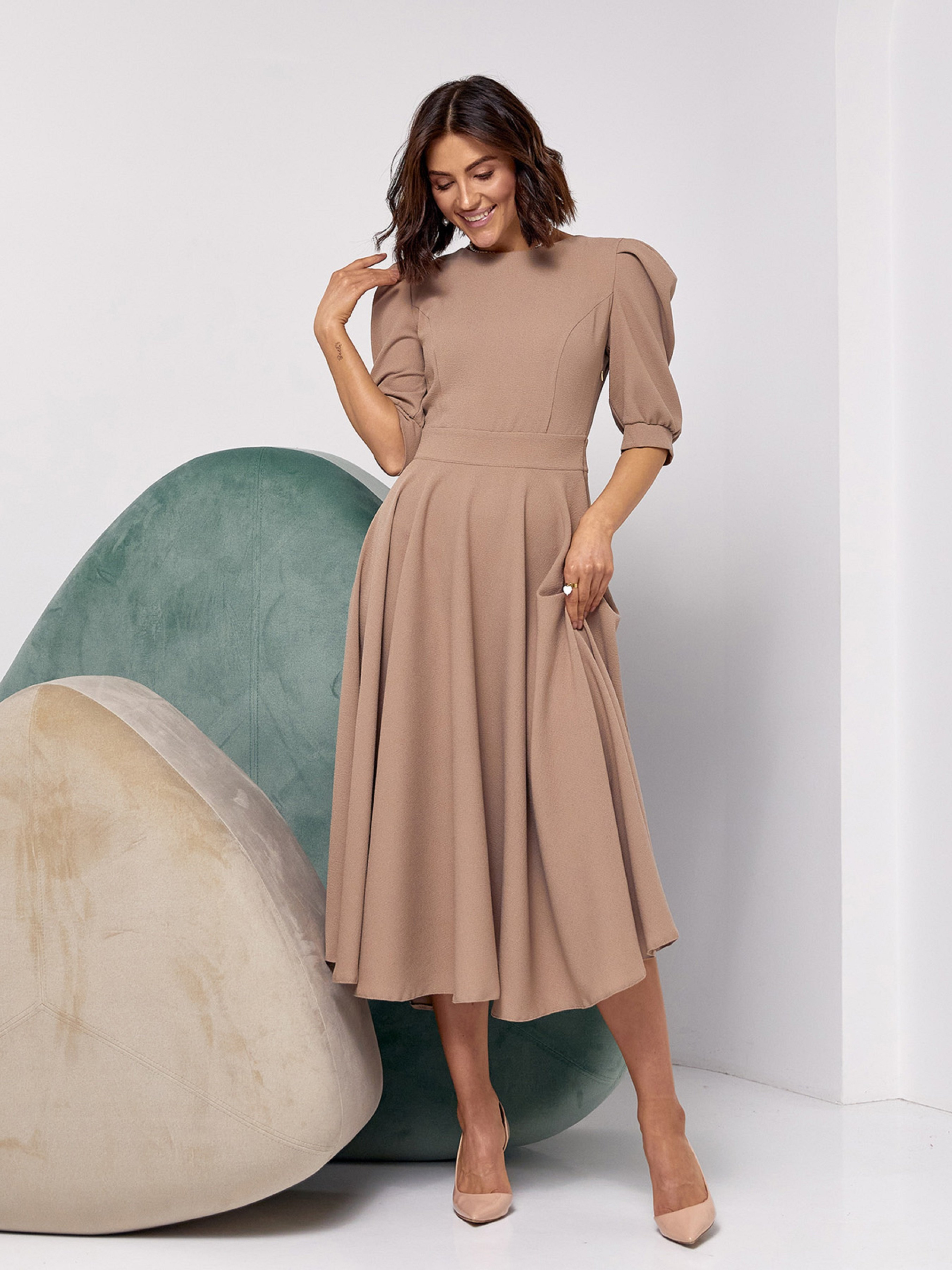 Платье миди ISSA Plus модель 14527_бежевый