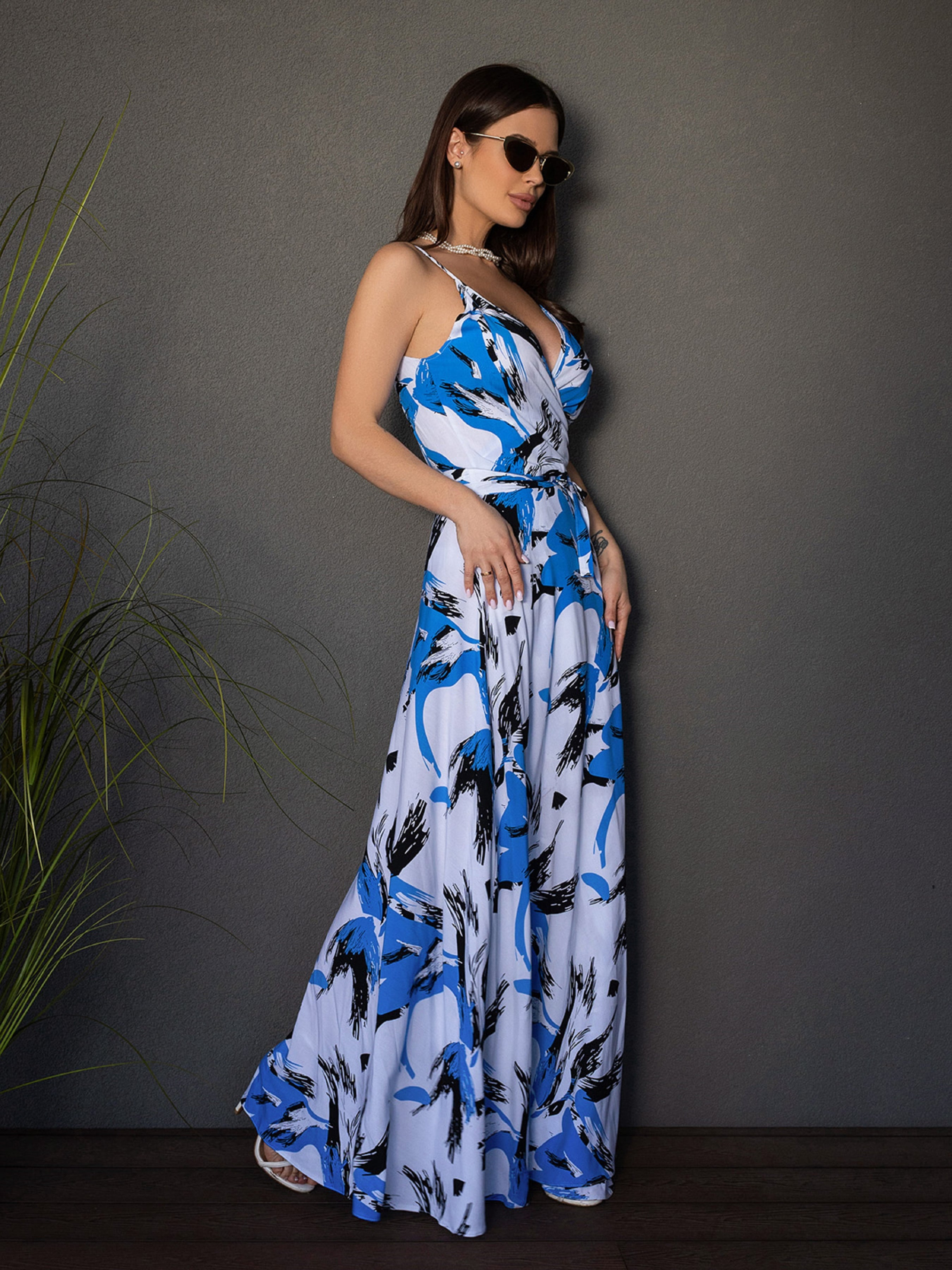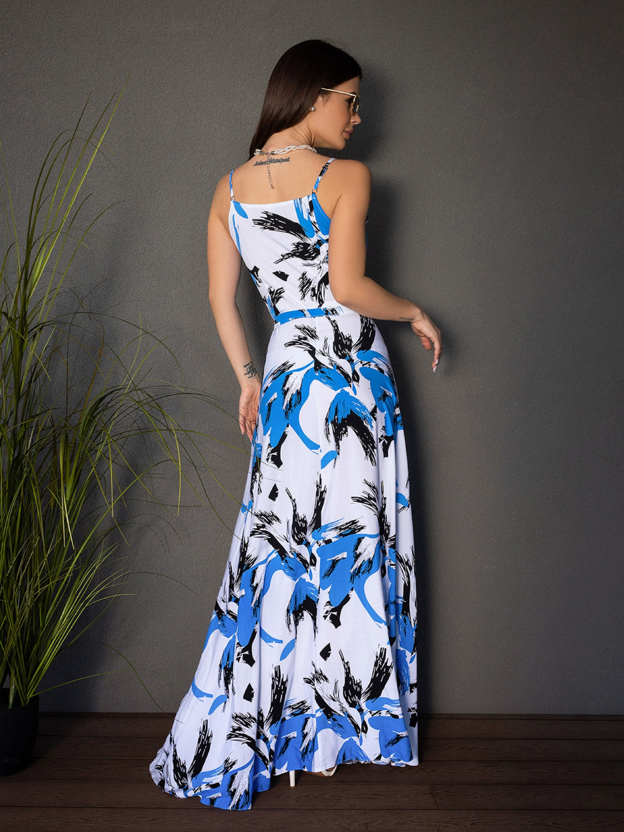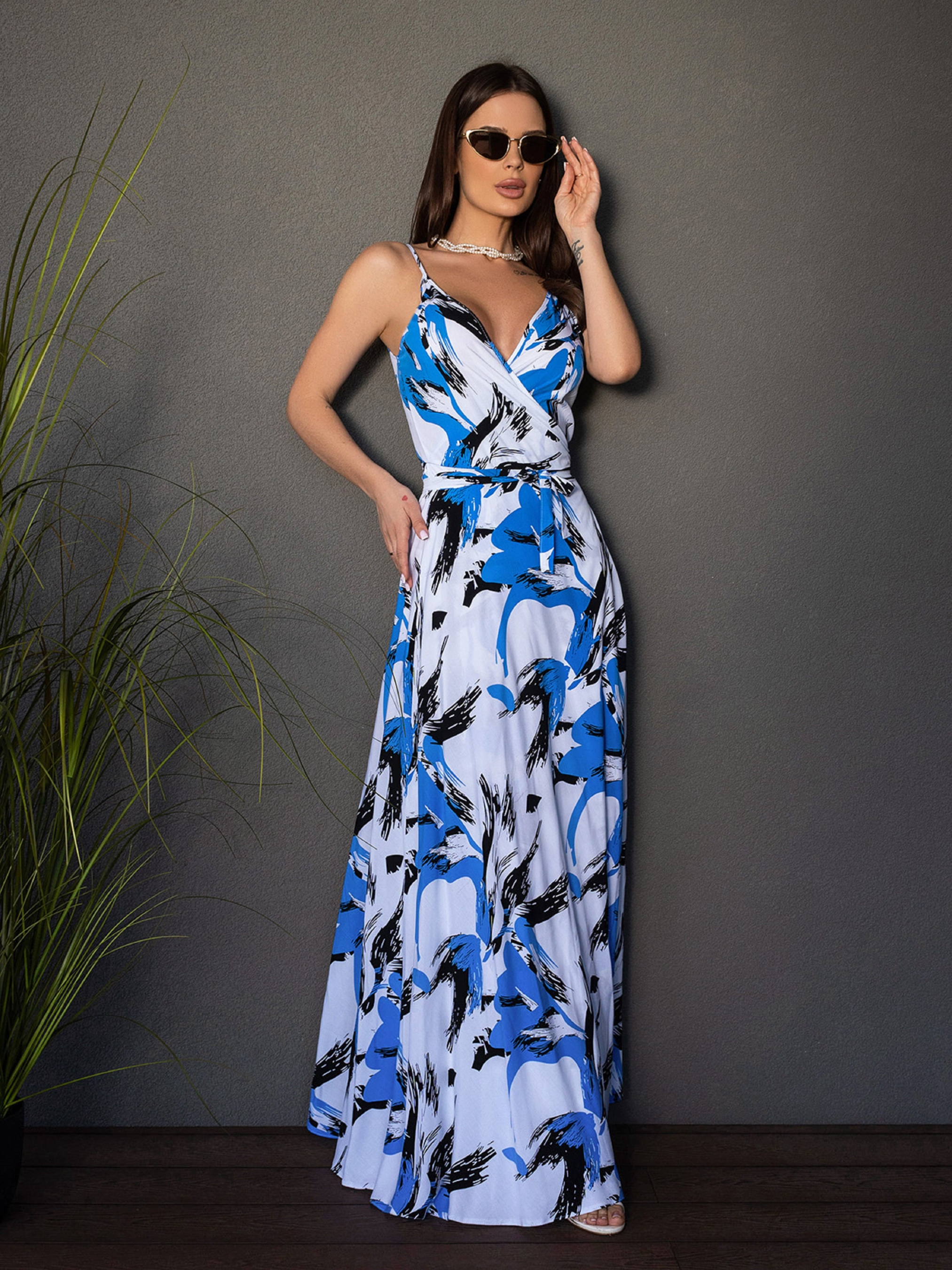 Сарафан ISSA Plus модель 14679_белый_голубой