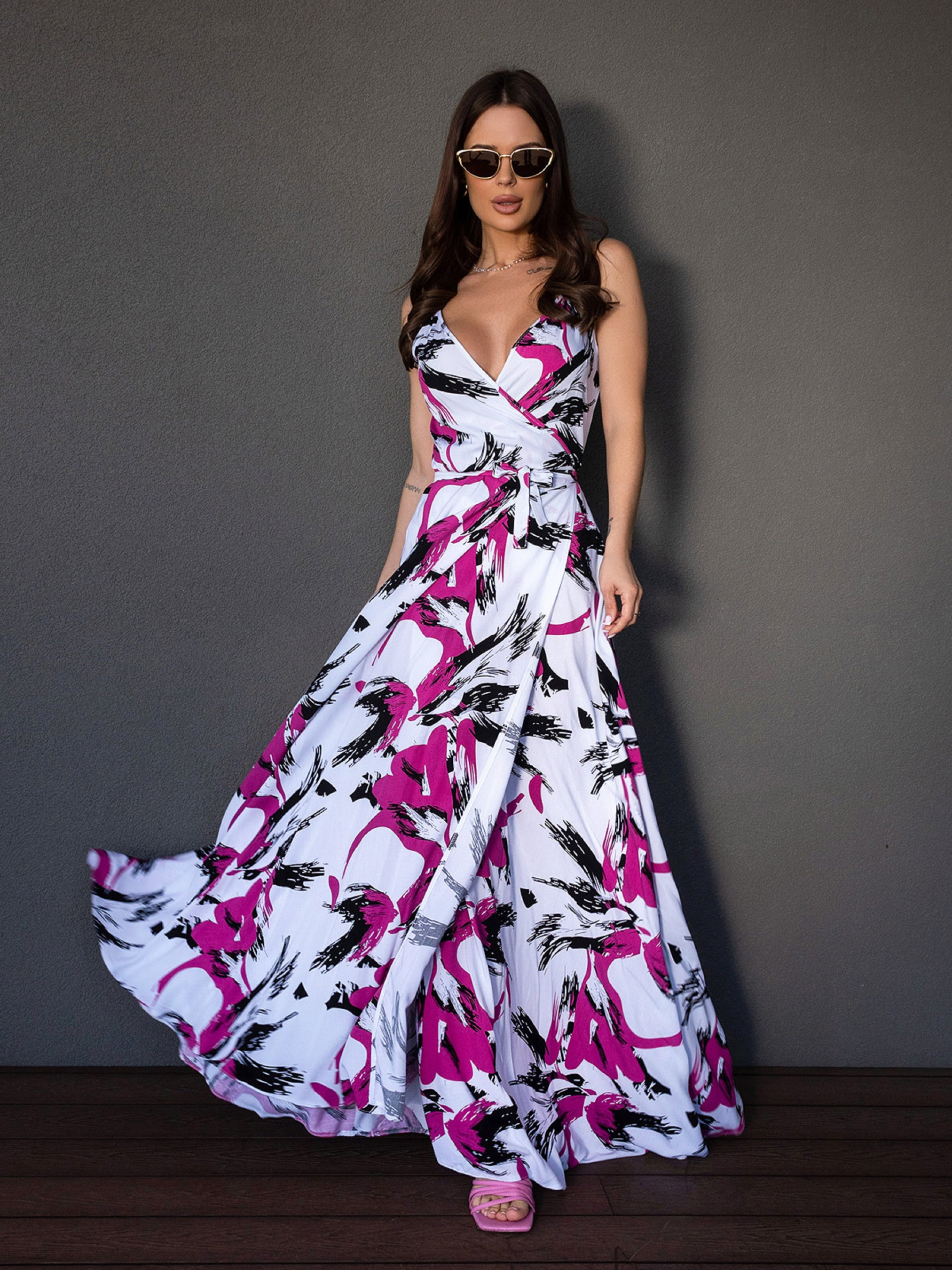 Сарафан ISSA Plus модель 14679_белый_малиновый