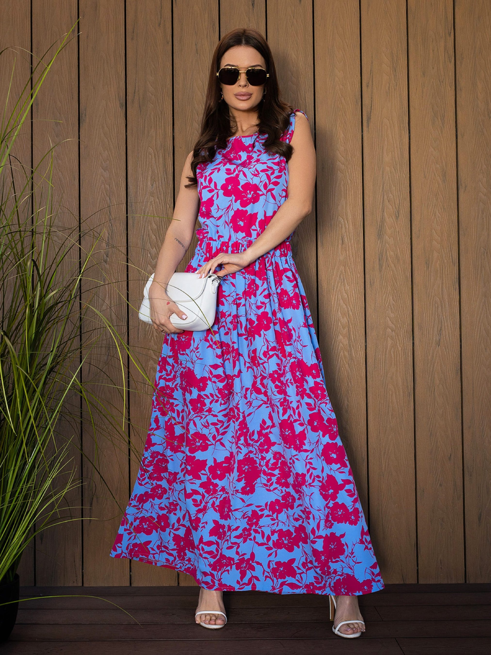 Платье макси ISSA Plus модель 14692_малиновый_голубой