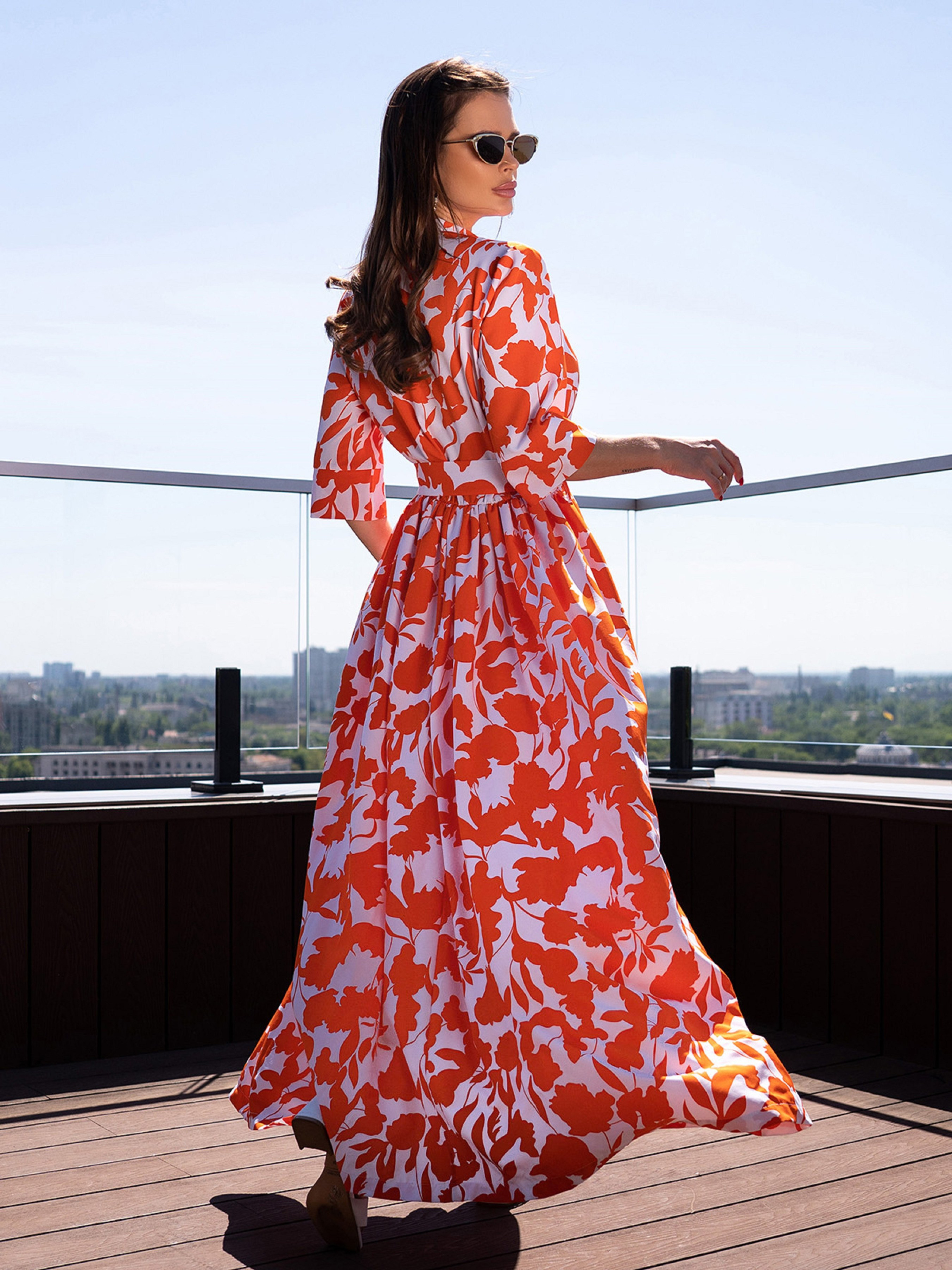 Платье макси ISSA Plus модель 14714_оранжевый