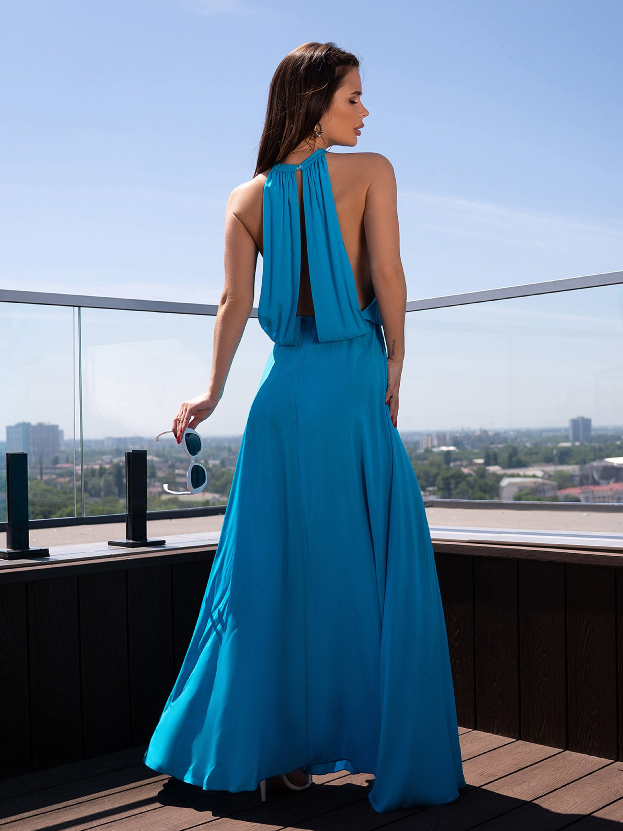 Платье макси ISSA Plus модель 14720_голубой