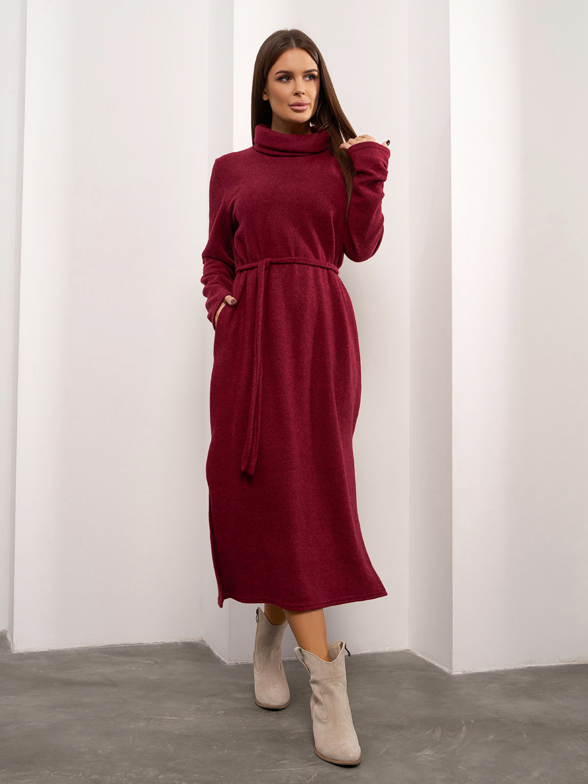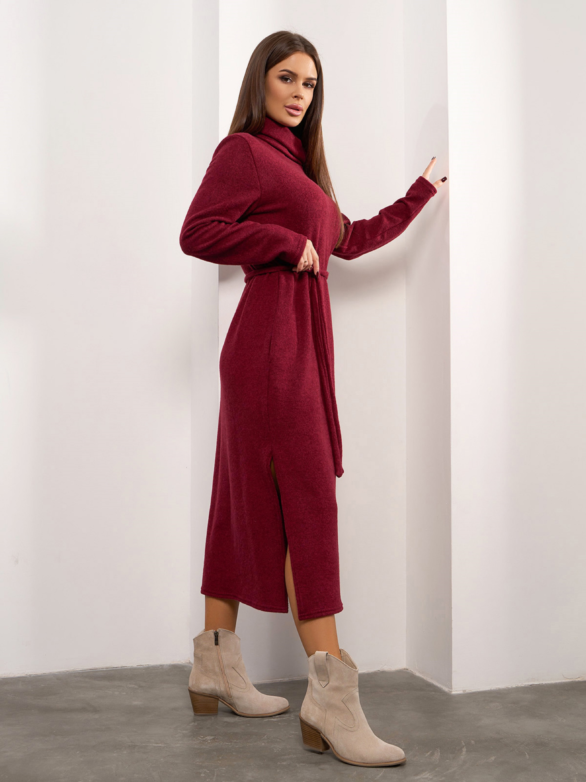 Платье миди ISSA Plus модель 14920_бордовый