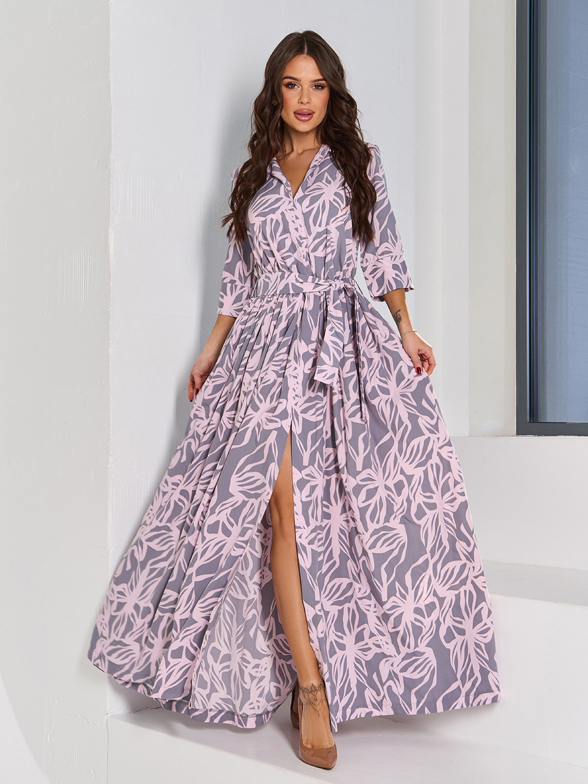 Платье макси ISSA Plus модель 15067_серый