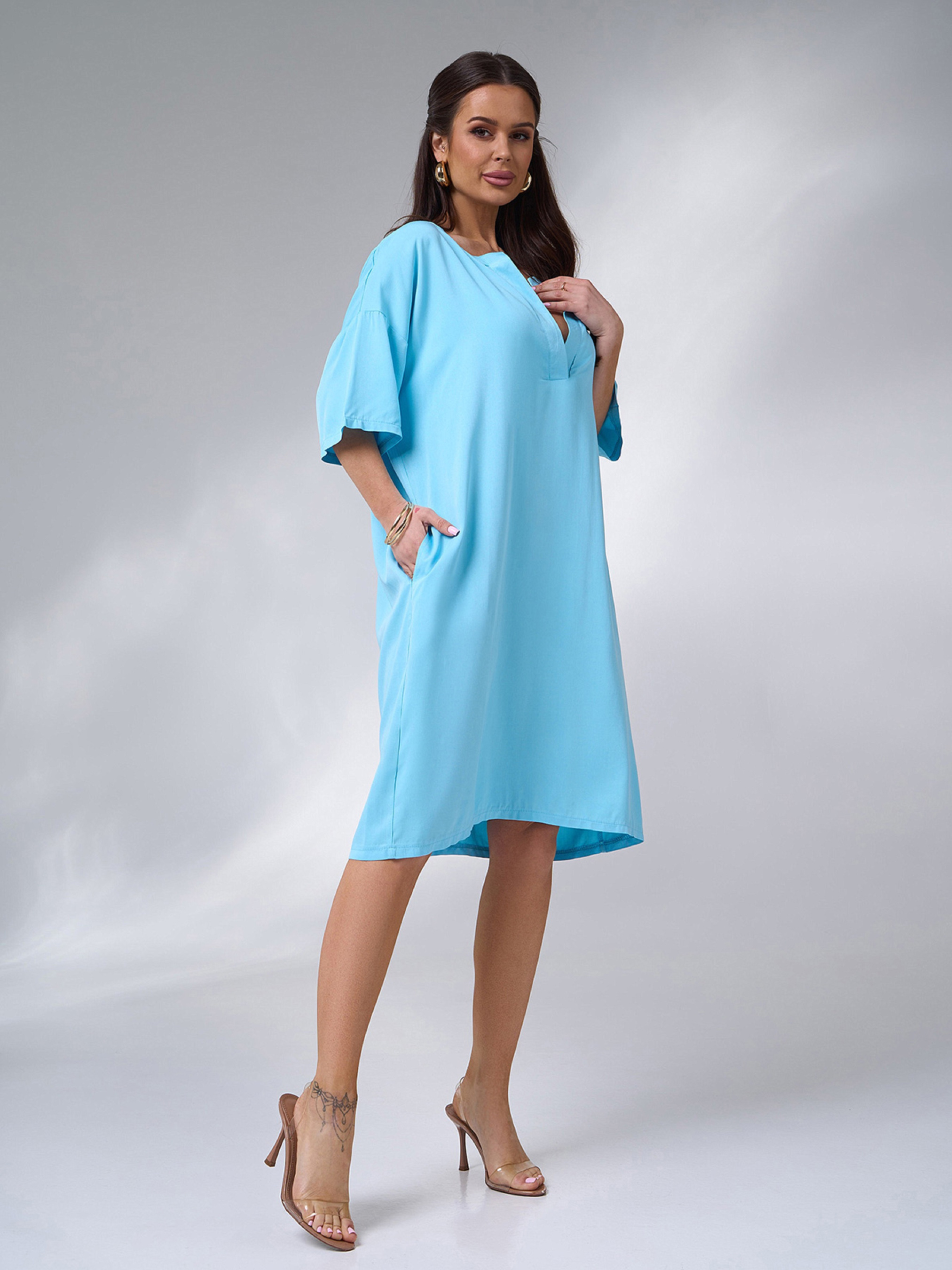 Платье миди ISSA Plus модель 14003_голубой