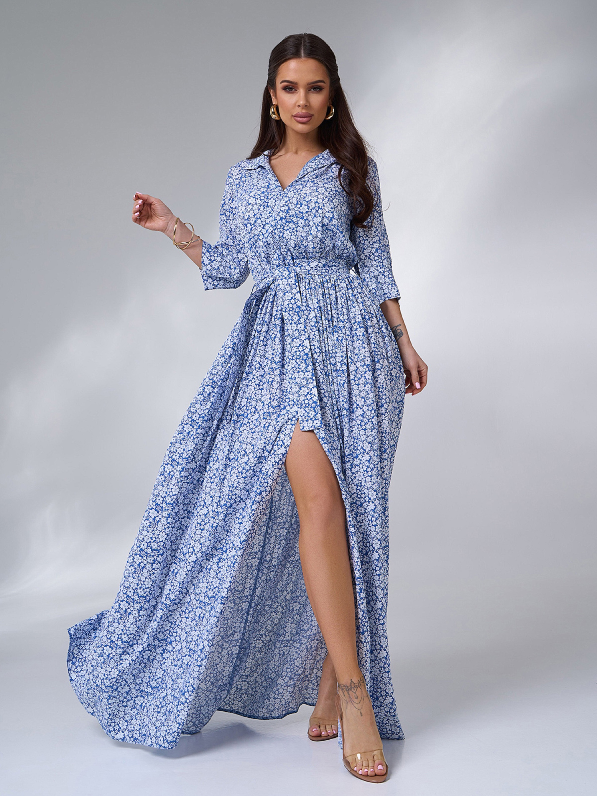 Платье макси ISSA Plus модель 14636_синий