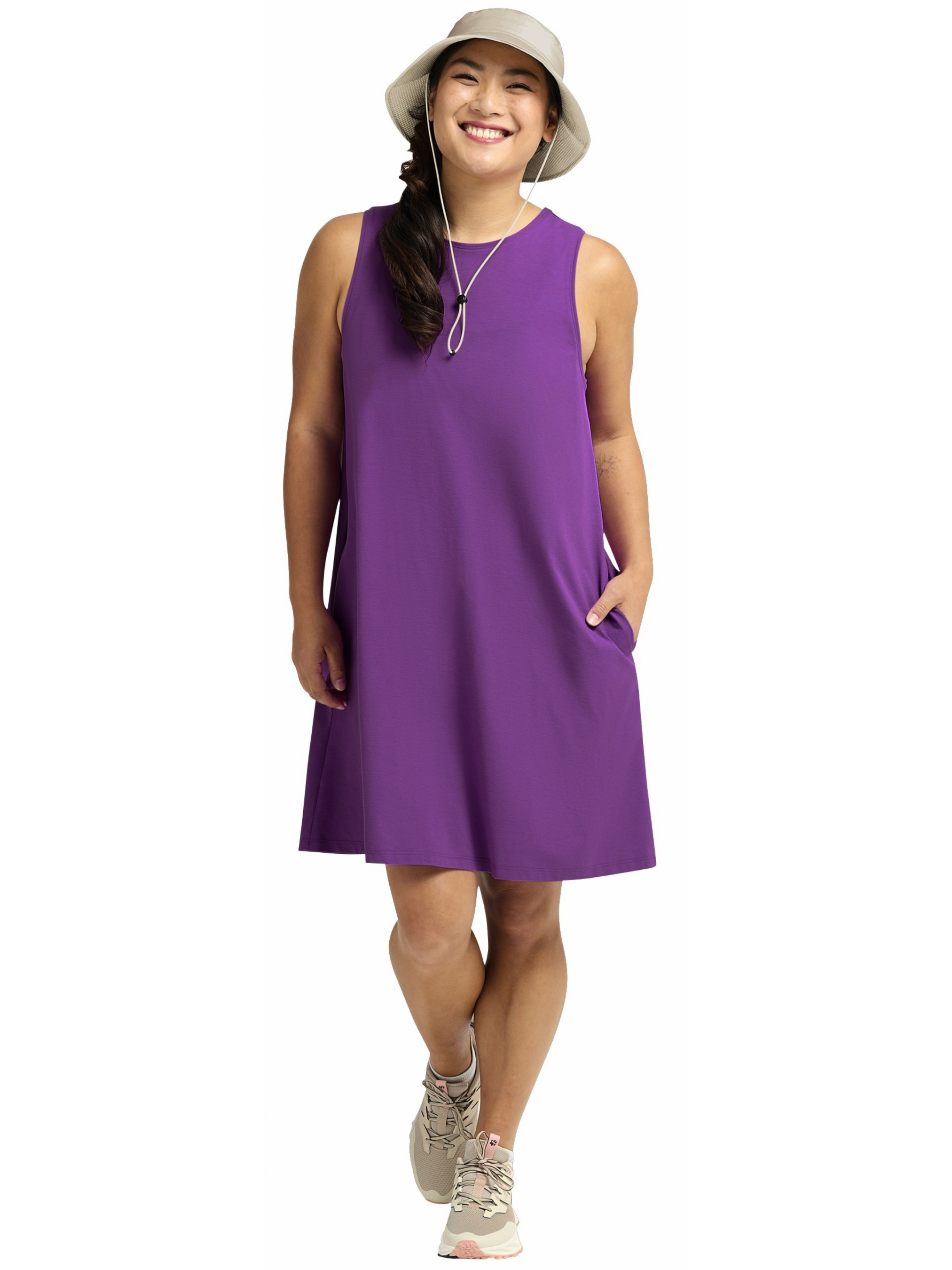 TRAVEL DRESS W – это легкое платье для путешествий и активного отдыха, сочетающее непринужденный стиль и практичность. Свободный крой и силуэт обеспечивают естественную свободу движений в жаркие дни и во время путешествий. Модель без рукавов выглядит лаконично и уместно как в городе, так и на природе. Ткань с технологией TEXADRI эффективно отводит влагу, быстро высыхает и поддерживает ощущение свежести во время активности. Дополнительная обработка Microban способствует длительной свежести материала. Практичность подчеркивают два удобных боковых кармана, в которых легко разместить мелкие необходимые вещи. Платье создано с учетом стандартов ответственного производства и отвечает принципам Fair Wear Foundation, что подчеркивает заботу об этичных условиях труда. Это универсальный вариант для поездок, прогулок и ежедневных дел в теплое время года.