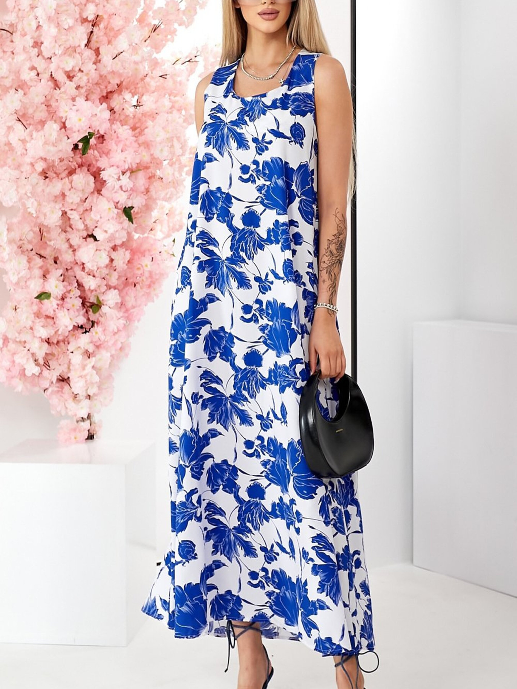 Довгий жіночий сарафан з квітковим принтом — легкість, жіночність і універсальність у кожному русі Цей довгий сарафан — справжнє втілення літнього настрою й витонченого стилю. Виконаний з легкої тканини та прикрашений ніжним квітковим принтом, він створює романтичний образ, що пасує як для прогулянок, так і для офіційних подій. Завдяки подовженій довжині максі та прямому вільному крою, сарафан ідеально сідає на будь-яку фігуру, підкреслюючи природну жіночність і додаючи легкості силуету. Модель має круглий комір, не має рукавів і одягається через голову — практичний варіант для спекотних днів, офісних буднів або особливих зустрічей. Широкий крій забезпечує комфорт і свободу рухів, дозволяючи почуватися впевнено в будь-якій ситуації. Переваги моделі: Квітковий принт — актуальний тренд сезону Довжина максі — елегантність і захист від сонця Прямий і широкий крій — ідеальний для будь-якої фігури Без рукавів — чудовий вибір на літо Круглий комір — стриманий та лаконічний акцент Зручне вдягання через голову — швидко та практично Стиль: нарядний, повсякденний (casual), офісний, романтичний Сезон: весна-літо Довжина: максі, подовжена Фасон: прямий, широкий Тип вдягання: через голову Рукав: без рукавів Принт: квітковий Цей сарафан стане вашою улюбленою сукнею сезону — поєднання комфорту, стилю та легкої елегантності, яка ніколи не виходить з моди.
