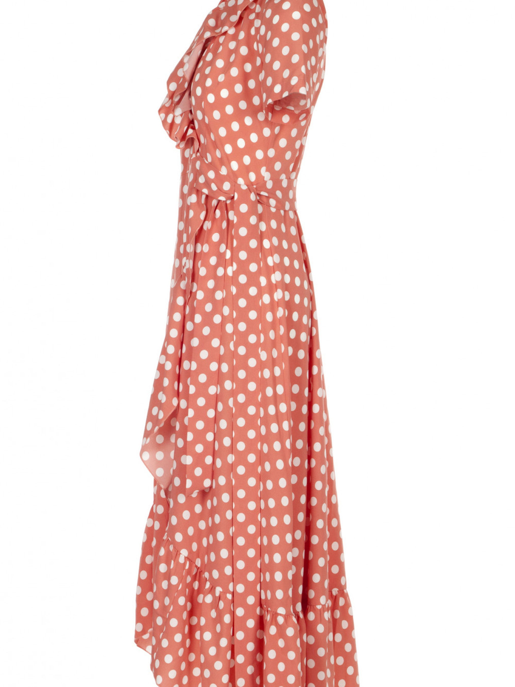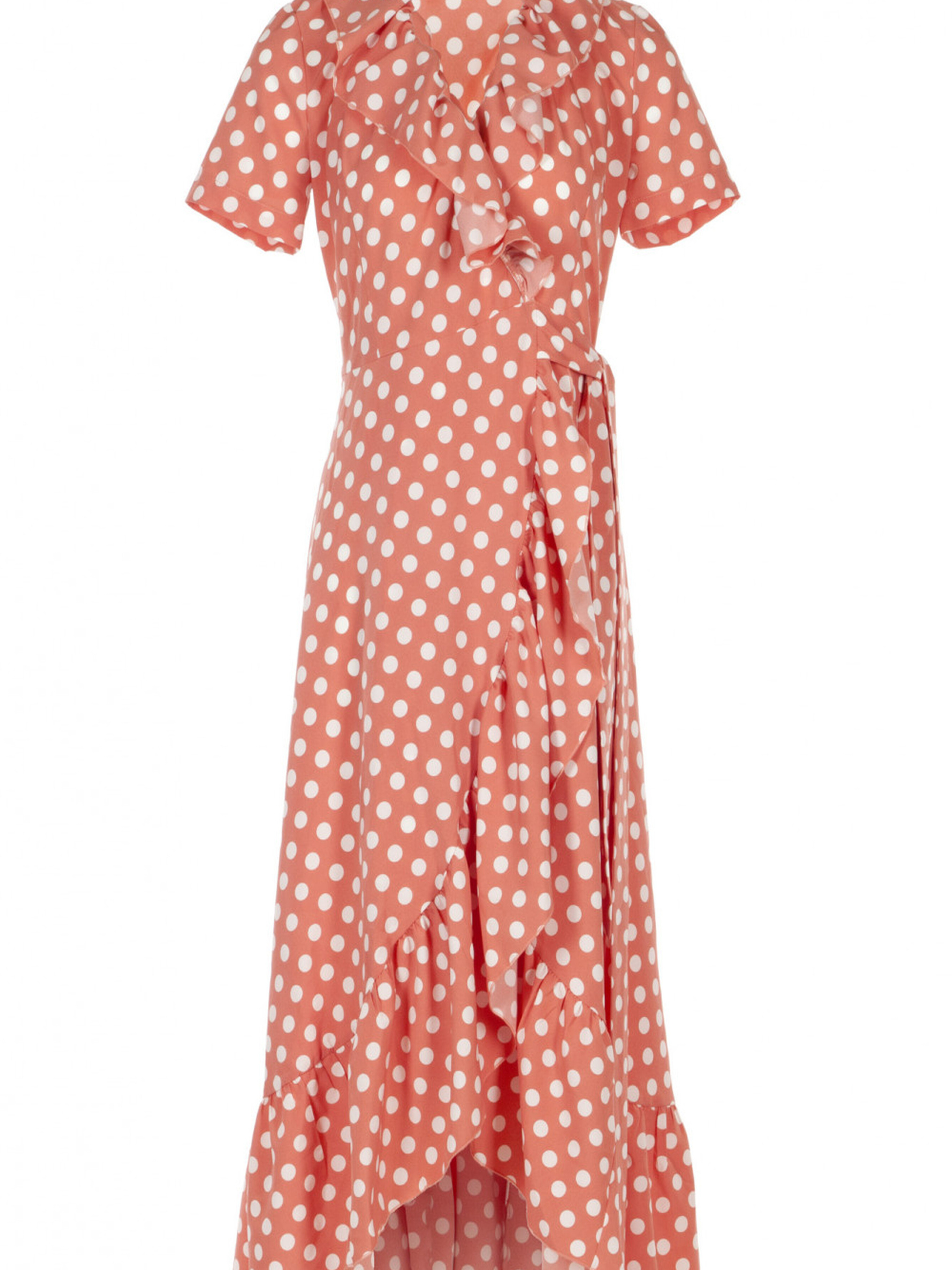 Персикова сукня з воланом в горох — легка та стильна сукня, яка підкреслює жіночність і додає елегантності. Особливості моделі: Матеріал: Легкий і приємний до тіла, ідеально підходить для теплого часу року Дизайн: Стильний волан на низу сукні додає рухливості та витонченості Запах: Спереду є запах, який створює акцент на талії та надає силуету жіночності Крій: Широкий крій дарує свободу рухів і комфорт протягом дня Резинка та пояс: Резинка на талії підкреслює фігуру, а пояс додає чіткість і акцентує лінію талії Рукави: Короткі рукави ідеально підійдуть для літа та теплих днів Довжина: Міді — стильна і універсальна довжина для будь-якої ситуації Призначення:Ця сукня — чудовий вибір для романтичних прогулянок, повсякденного носіння або літніх вечорів. Її можна поєднувати з різними аксесуарами і взуттям, додаючи елегантності кожному образу.