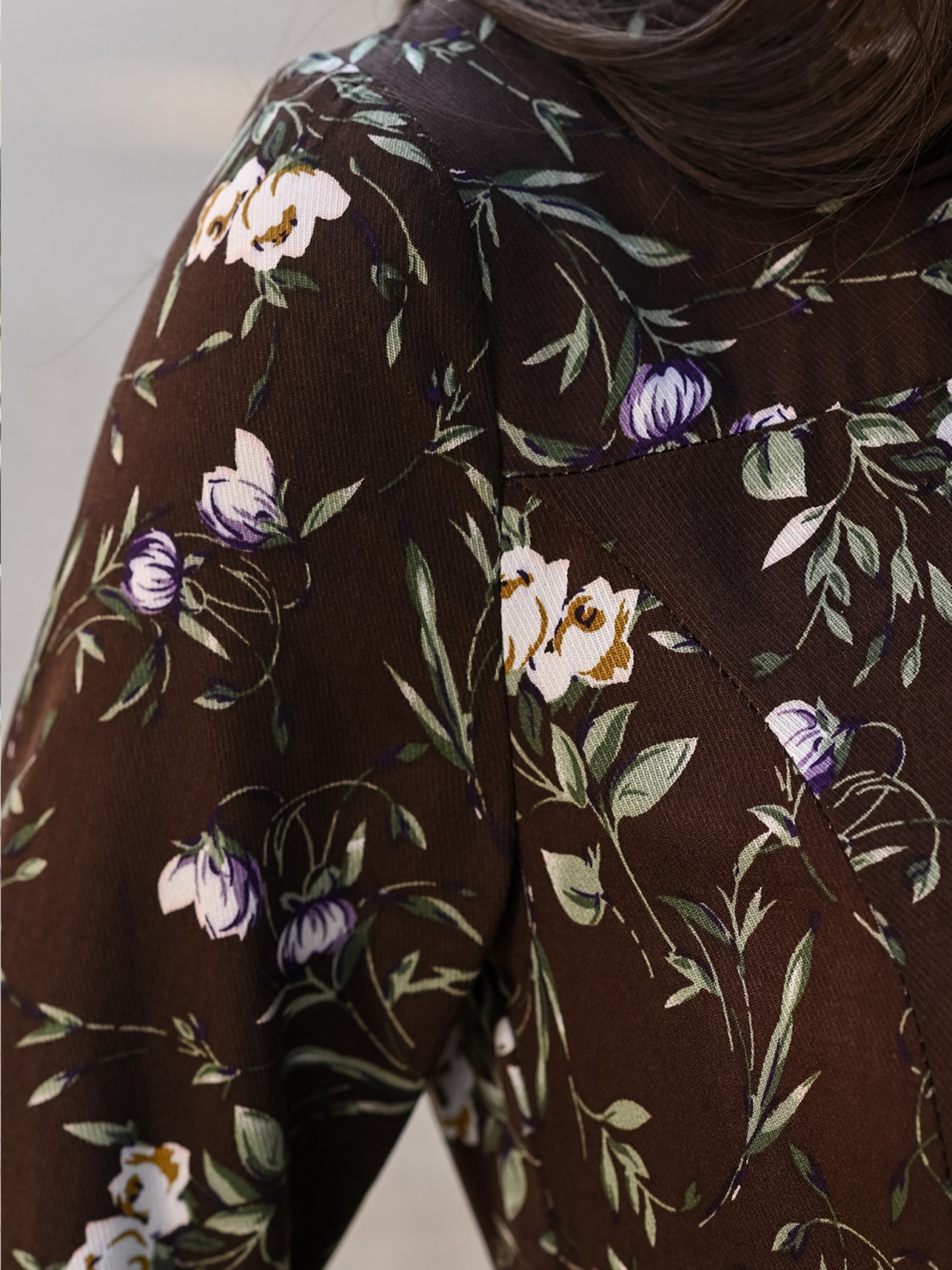 Коричнева сукня в бузкові квіти — це стильний і елегантний вибір для осінньо-зимового сезону. Її унікальний дизайн поєднує комфорт і витончену естетику, що робить її ідеальною для офісних та повсякденних образів. Основні характеристики: Колір та принт: Коричнева основа сукні поєднується з бузковими квітами, що надає їй романтичного та вишуканого вигляду. Бузкові квіти на коричневому фоні створюють елегантний і стильний контраст, підходящий для осінньо-зимового сезону. Манжета: Сукня оснащена манжетами на рукавах, що додає елемент структури та закриває зап'ястя, зберігаючи тепло та стиль. Широкий крій: Вільний крій сукні дарує свободу рухів і підкреслює природну елегантність. Такий крій чудово виглядає на будь-якій фігурі, додаючи жіночності та комфорту. На ґудзиках: Ґудзики по всій довжині сукні додають класичного шарму та легкості у застібці, водночас вони підкреслюють елегантність сукні. Банти з тканини: Тканинні банти додають особливого акценту, роблячи сукню більш цікавою та незабутньою. Це додатковий елемент, що підкреслює витонченість і жіночність. На молнии: Молнія на задній частині сукні забезпечує зручність у носінні та надає можливість легкого вдягання і знімання. Переваги: Поєднання коричневого кольору з бузковими квітами робить сукню універсальною для різних подій, від офісних до повсякденних. Манжети на рукавах та молнія створюють практичність та стильний вигляд. Широкий крій забезпечує комфорт і дозволяє вільно рухатися, не обмежуючи ваші рухи. Банти з тканини додають сукні оригінальності та роблять її ще більш вишуканою. Як стилізувати: Сукня буде виглядати чудово з елегантними черевиками або ботильйонами на невисокому каблуку. Для завершення образу оберіть мінімалістичні аксесуари, наприклад, невеликі сережки та тонкий браслет. Легкий макіяж та акуратно укладене волосся підкреслять вашу елегантність і стиль. Коричнева сукня в бузкові квіти — ідеальний варіант для тих, хто хоче створити стильний, комфортний та елегантний образ на осінь та зиму.