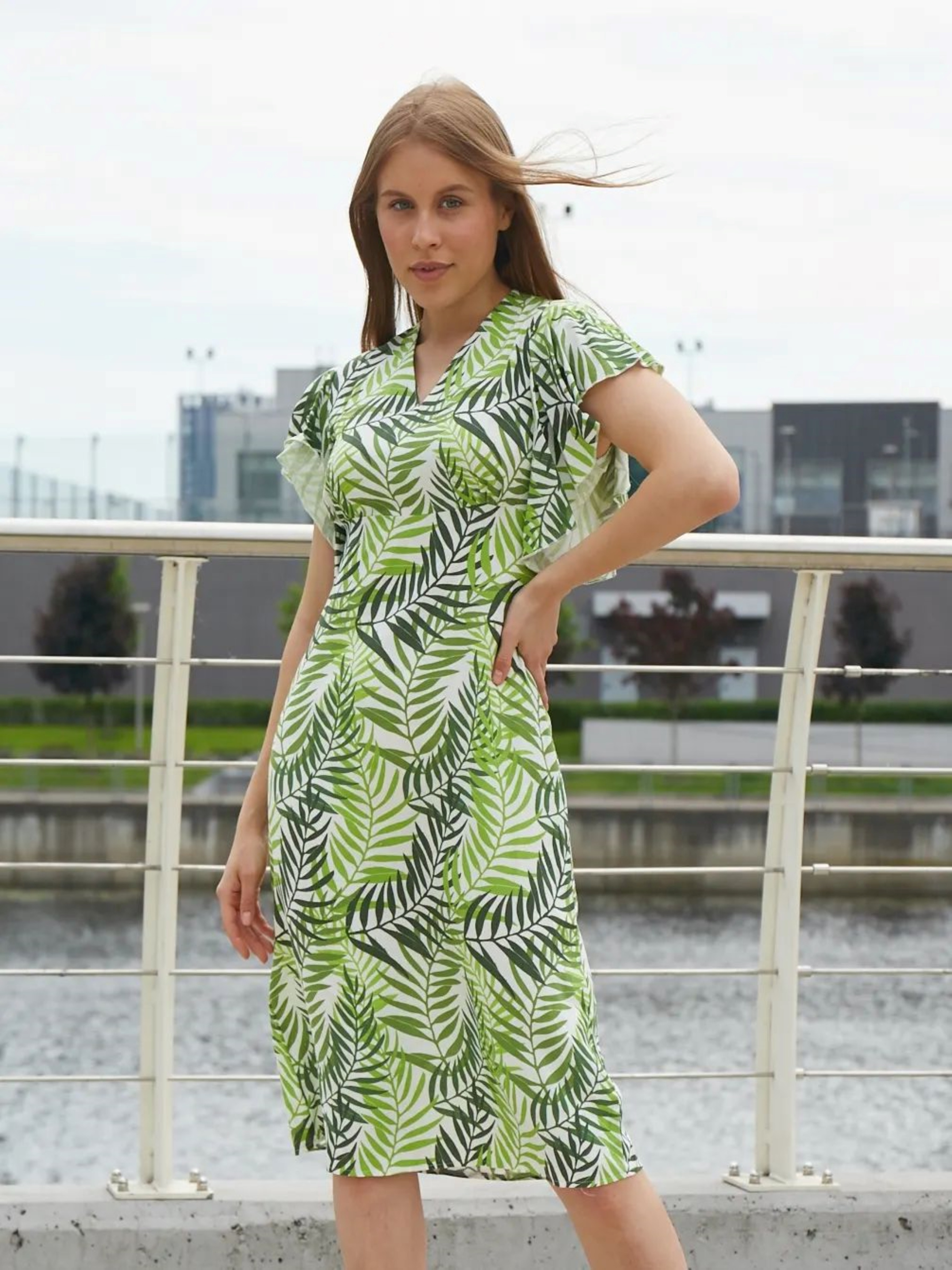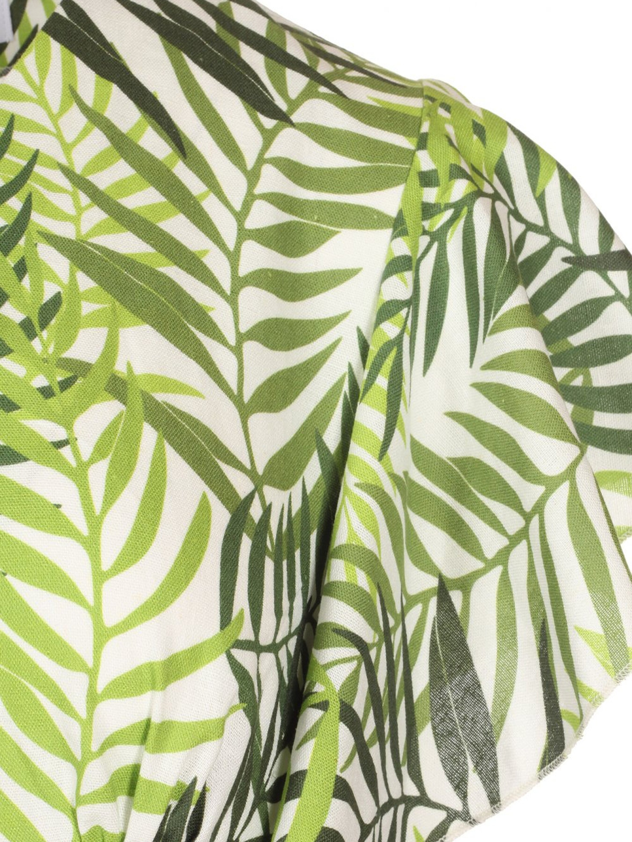 Сукня лляна в великі зелені листки — це елегантна і натуральна сукня, яка підкреслює зв'язок з природою завдяки яскравому принту у вигляді великих зелених листків. Вона ідеально підходить для літніх днів, коли хочеться відчувати комфорт і стиль одночасно. Основні характеристики: Колір і принт: Великий зелений листковий принт на лляній тканині додає сукні природного шарму і виглядає свіжо. Зелений колір символізує гармонію з природою і створює спокійний, але виразний образ. Матеріал: Льон — натуральна тканина, яка дозволяє тілу дихати і відчувати прохолоду в теплі дні. Лляна сукня легко вбирає вологу, тому в такій сукні комфортно навіть в найспекотніші дні. Дизайн: Крой: Сукня може мати різноманітні фасони: від вільного до приталеного, що підкреслює фігуру. Льон добре тримає форму, тому така сукня виглядатиме елегантно і просто. Горловина: Може бути округлою або V-подібною, що дозволяє вибрати варіант для різних типів фігури. Вільний або закритий комір надає образу легкості. Рукава: Короткі рукави або без рукавів для літніх днів — це практичний варіант для збереження комфорту. Стилізація: Для повсякденного образу: Літні сандалі, капелюх і стильні окуляри завершать образ, додаючи нотку легкості і свіжості. Для відпочинку на природі: Сукня з великими зеленими листками чудово виглядатиме з плетеною сумкою, шкіряними сандалями і легкими аксесуарами. Для вечірнього виходу: Доповніть сукню стильними босоніжками на підборах та легкими срібними або золотими прикрасами для створення елегантного вигляду. Сукня лляна в великі зелені листки стане вашим ідеальним вибором для літніх днів, забезпечуючи не лише комфорт, але й стильний вигляд у гармонії з природою.