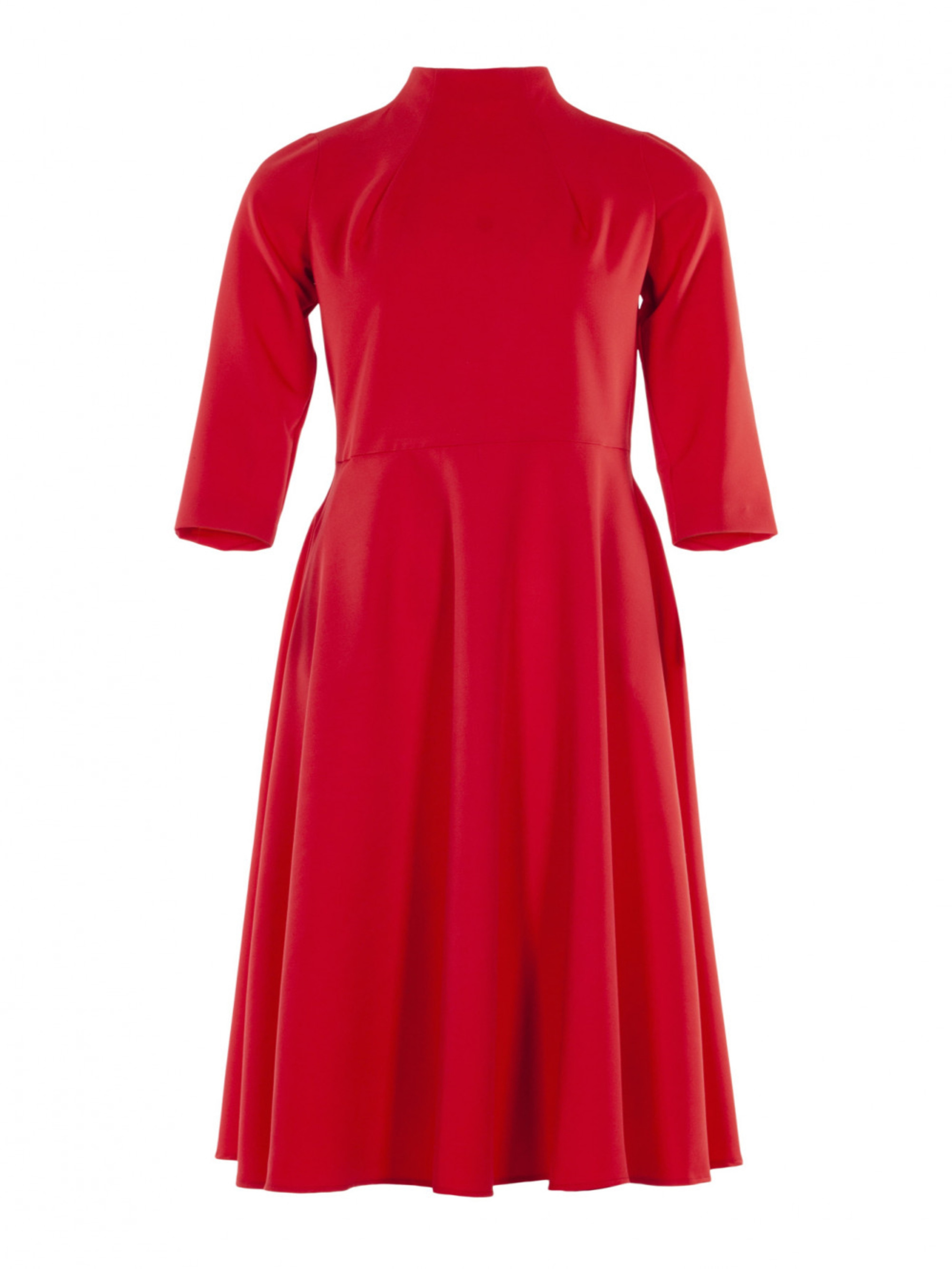Сукня червона зі стійкою та спідницею кльош — яскравий і стильний варіант, який підкреслює жіночність та додає образу динаміки. Основні характеристики: Верх: Акуратна стійка на горловині додає елегантності та завершеності. Крій: Верх із прямим або злегка приталеним силуетом переходить у вільну спідницю кльош, що створює легкий, розкішний рух при ході. Довжина: Міді — оптимальна для ділових зустрічей, святкових подій або щоденного стилю. Застібка: Молнія на спинці забезпечує зручність одягання та знімає потребу в додаткових деталях. Пояс: Відсутній, що дозволяє зосередити увагу на формі самої сукні та її яскравому кольорі. Стилізація: Офіс: Поєднується з лаконічними туфлями або балетками та діловим аксесуаром. Святкові події: Яскраво-червоний колір і силует кльош роблять сукню чудовим варіантом для свят або урочистих заходів. На кожен день: Комфортний крій і натуральний матеріал дозволяють носити її і у повсякденному житті. Сукня червона зі стійкою та спідницею кльош — це поєднання класики та динаміки, яке підходить для будь-якої нагоди, даруючи впевненість і стиль.