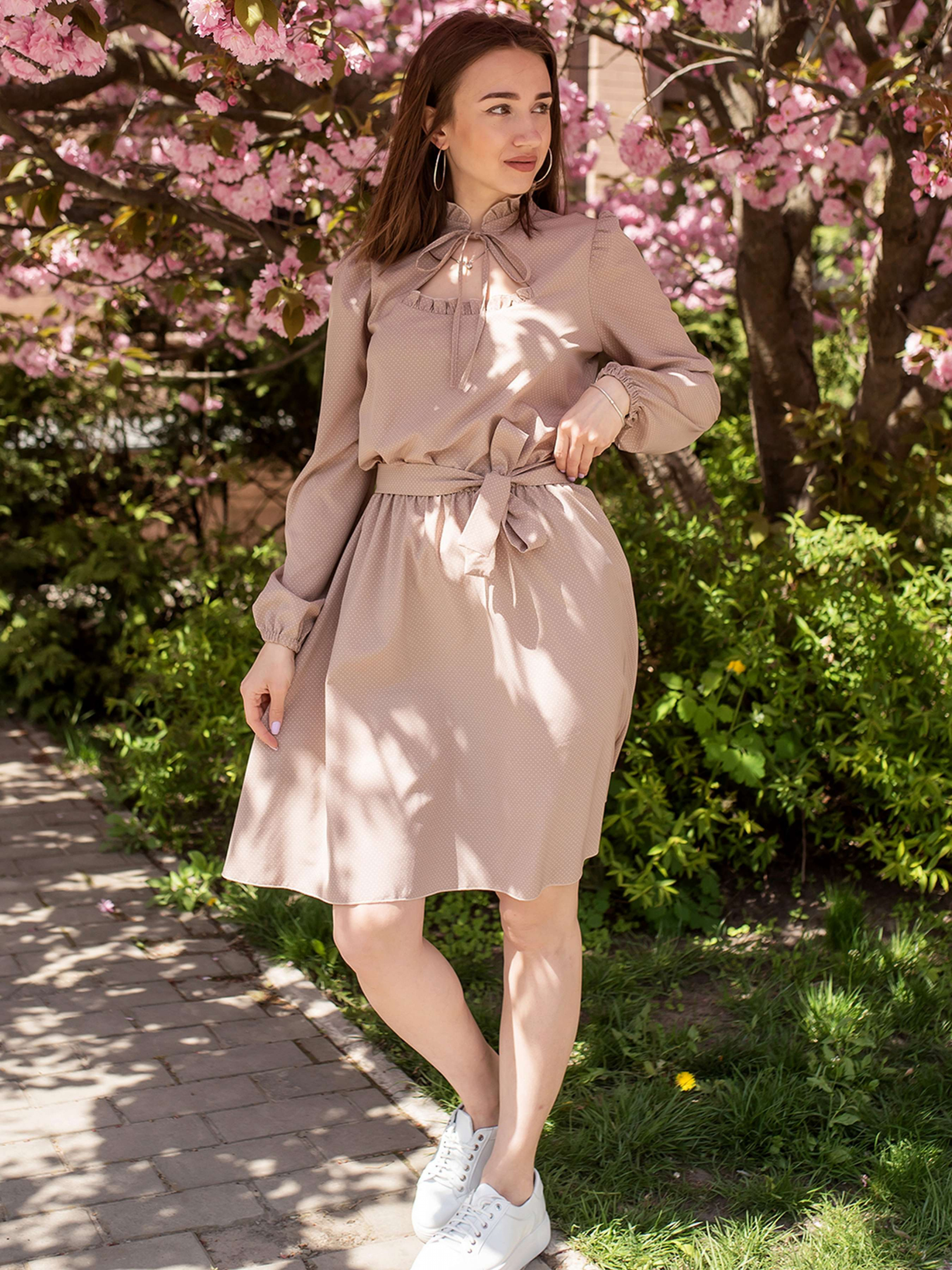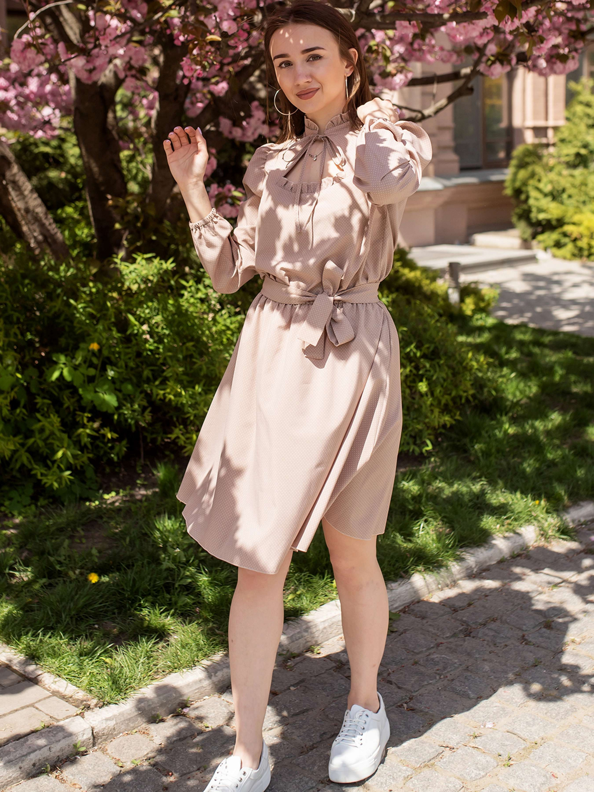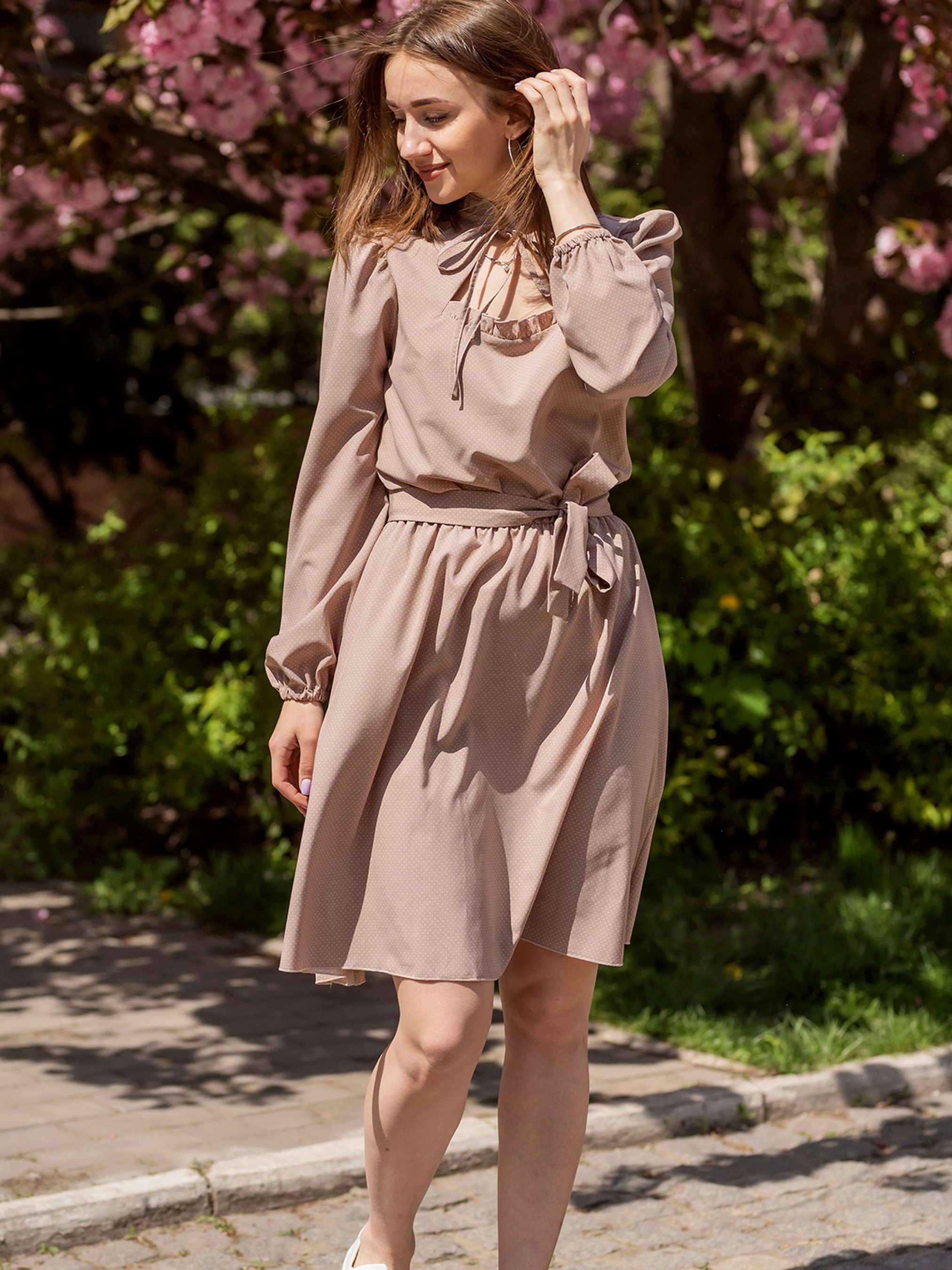 Романтична сукня Кохання; Виконане з якісної та приємної до тіла тканини; Сукня чудово підійде для створення повсякденного образу; Модель із довгими рукавами; Фігурний виріз горловини з крапелькою на зав'язці; Лінію талії підкреслює пояс; Спідниця розкльошеного крою з кишенями з боків. Склад: Софт 100%
