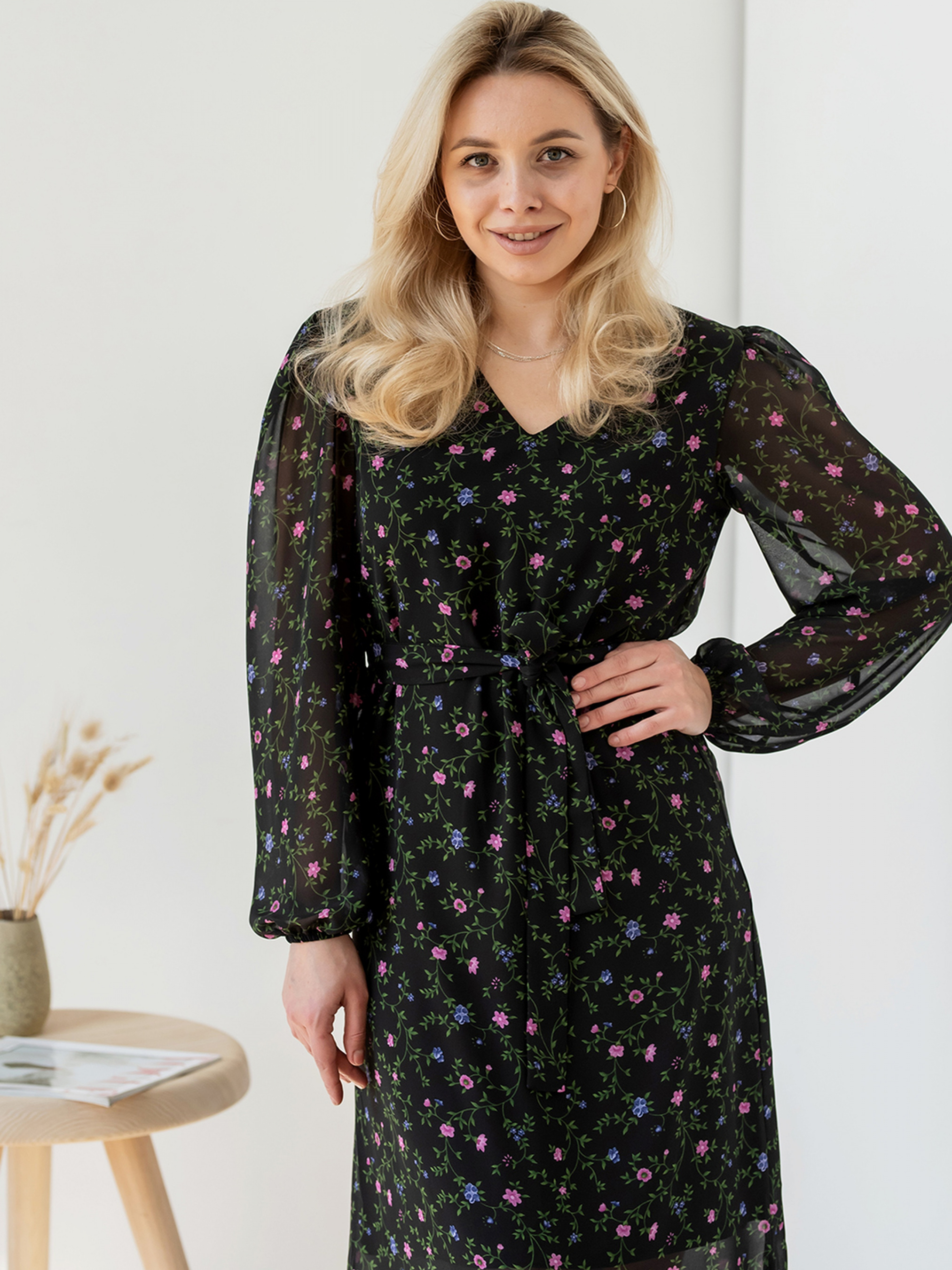 Легка і жіночна сукня.Квітковий принт ніколи не виходить із модитому ця модель точно стане вигідною інвестицією у гардероб.Матеріал тактильно приємний та виглядає розкішно.З цією моделлю виходять ненав'язливі тавитончені образи для літа, теплої весни та осені.. Склад: Поліестер 100%