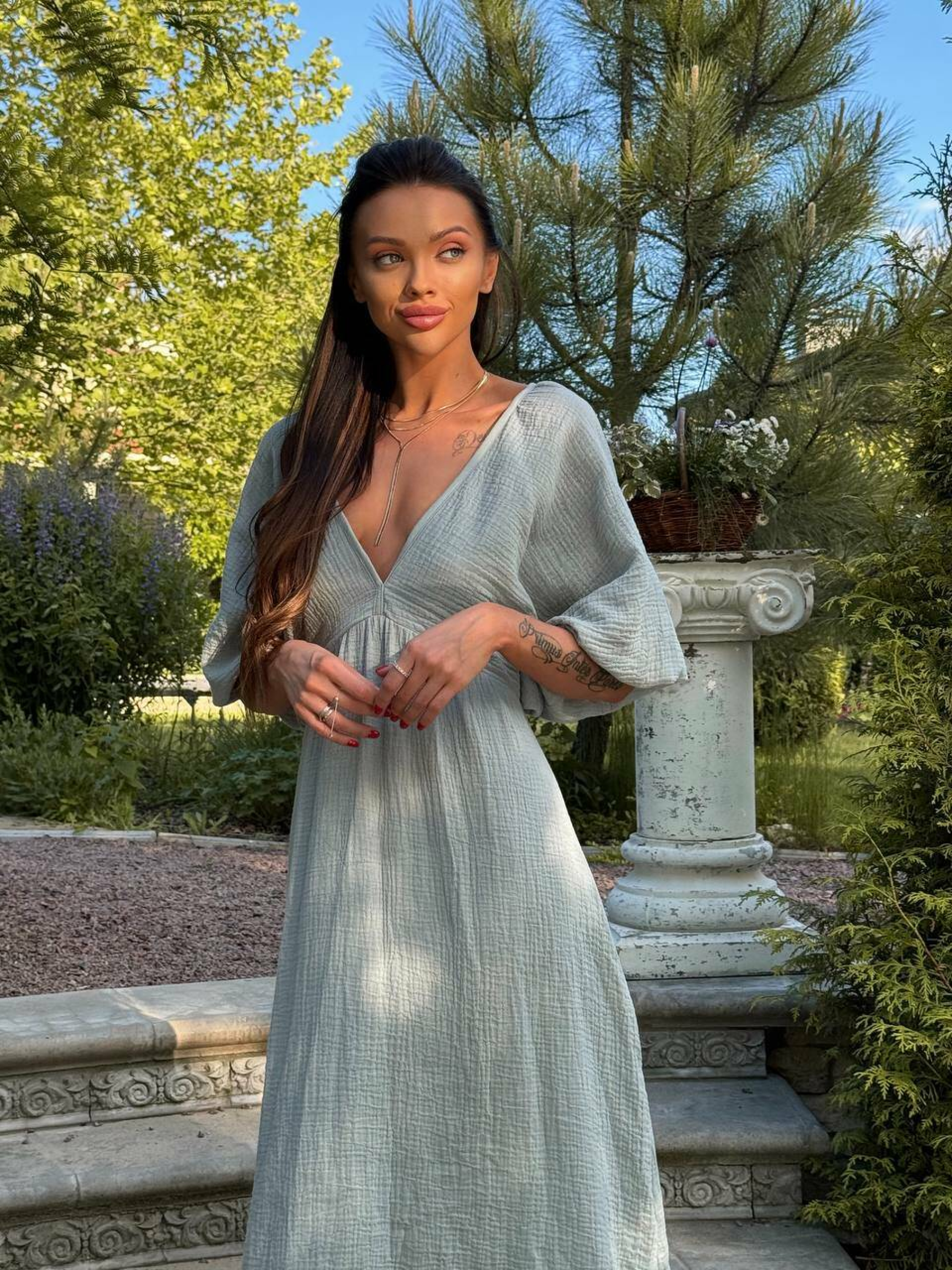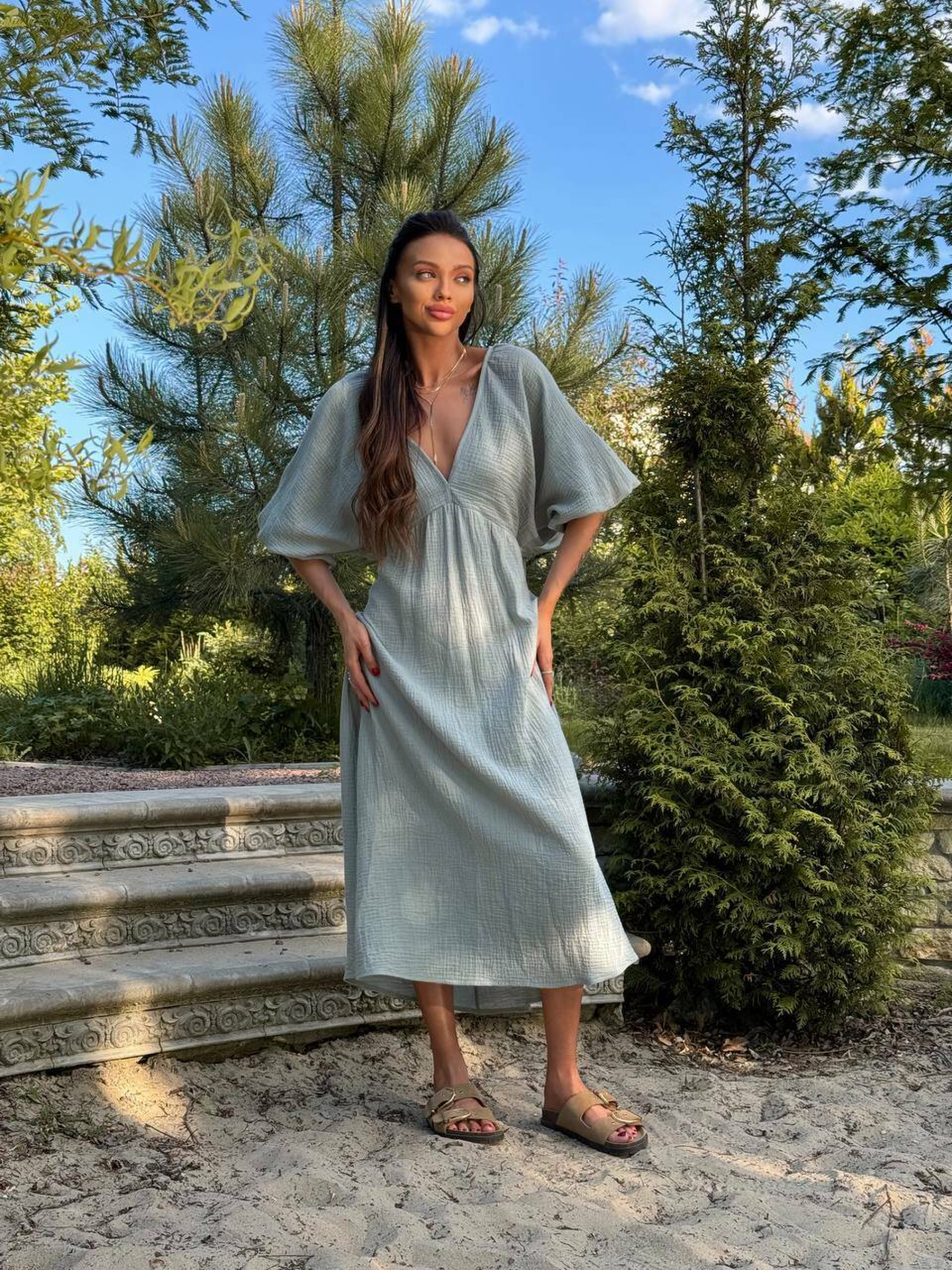 Особливості та переваги сукні MARYSIA: Відкрита спина додає вишуканості та привабливості; Легкий, дихаючий муслін приємний до тіла та комфортний у спеку; Вільний фасон красиво драпірується та підходить для різних фігур; Ідеальний варіант для літніх прогулянок, відпочинку біля моря або святкових подій. Характеристики: Тканина: муслін Розмір: S–L Довжина: максі Кольори: білий, молочний, беж, пудровий, зелений Ніжна та романтична сукня з м’якого мусліну, яка поєднує легкість і витонченість. Відкрита спина створює елегантний акцент, додаючи образу чуттєвості та шарму. Завдяки вільному крою сукня чудово підходить для будь-якого типу фігури, забезпечуючи комфорт і свободу рухів.