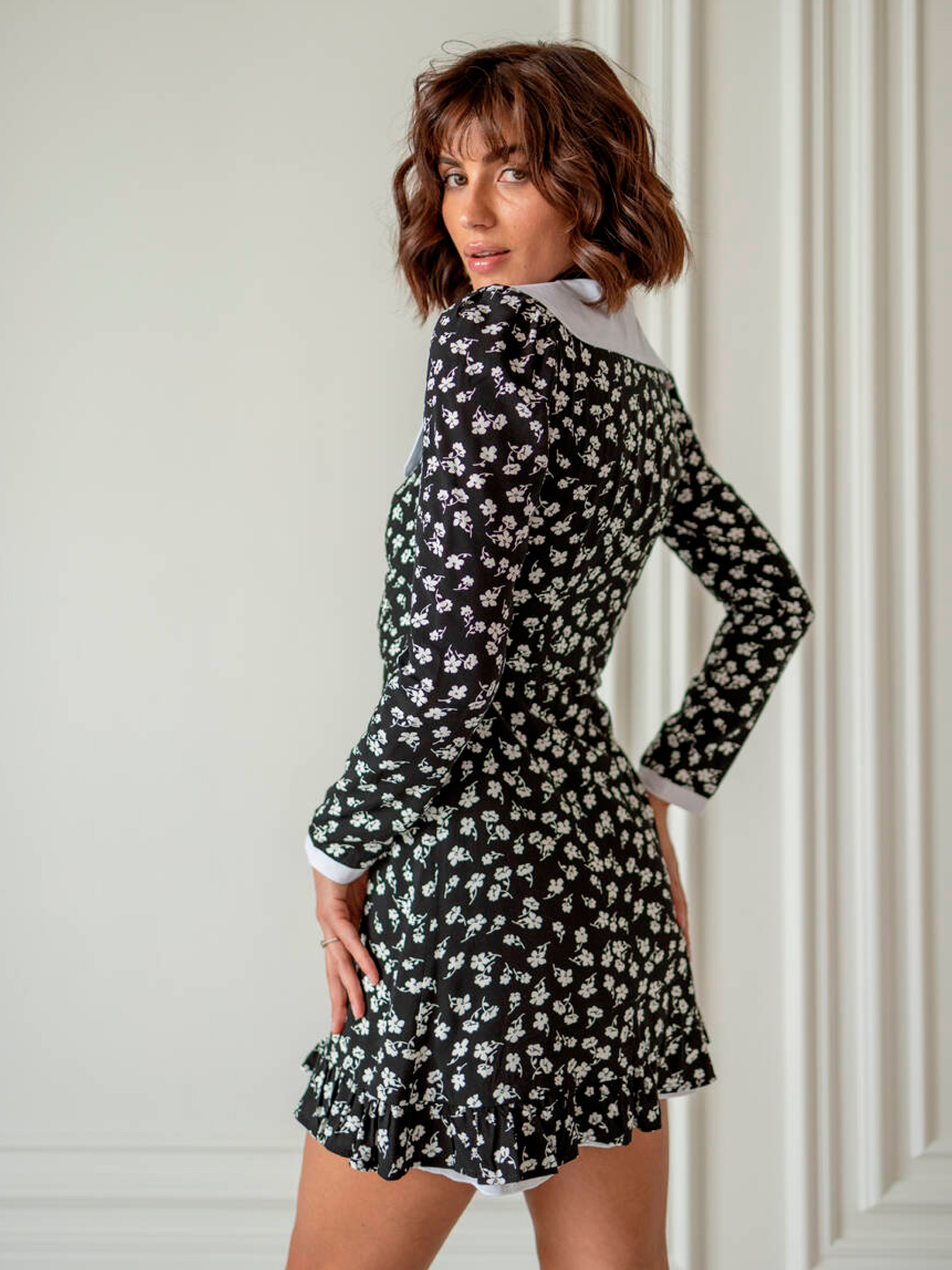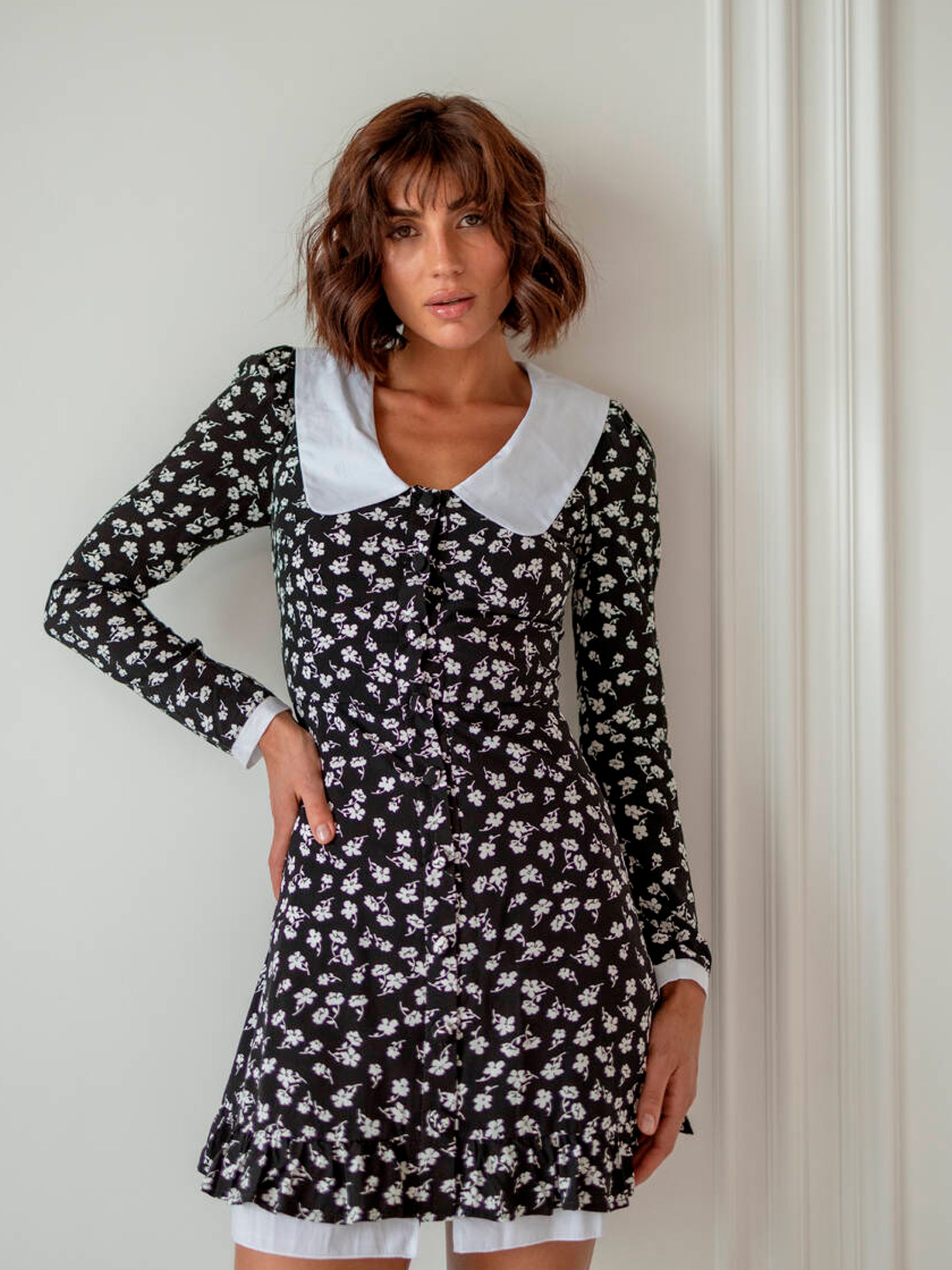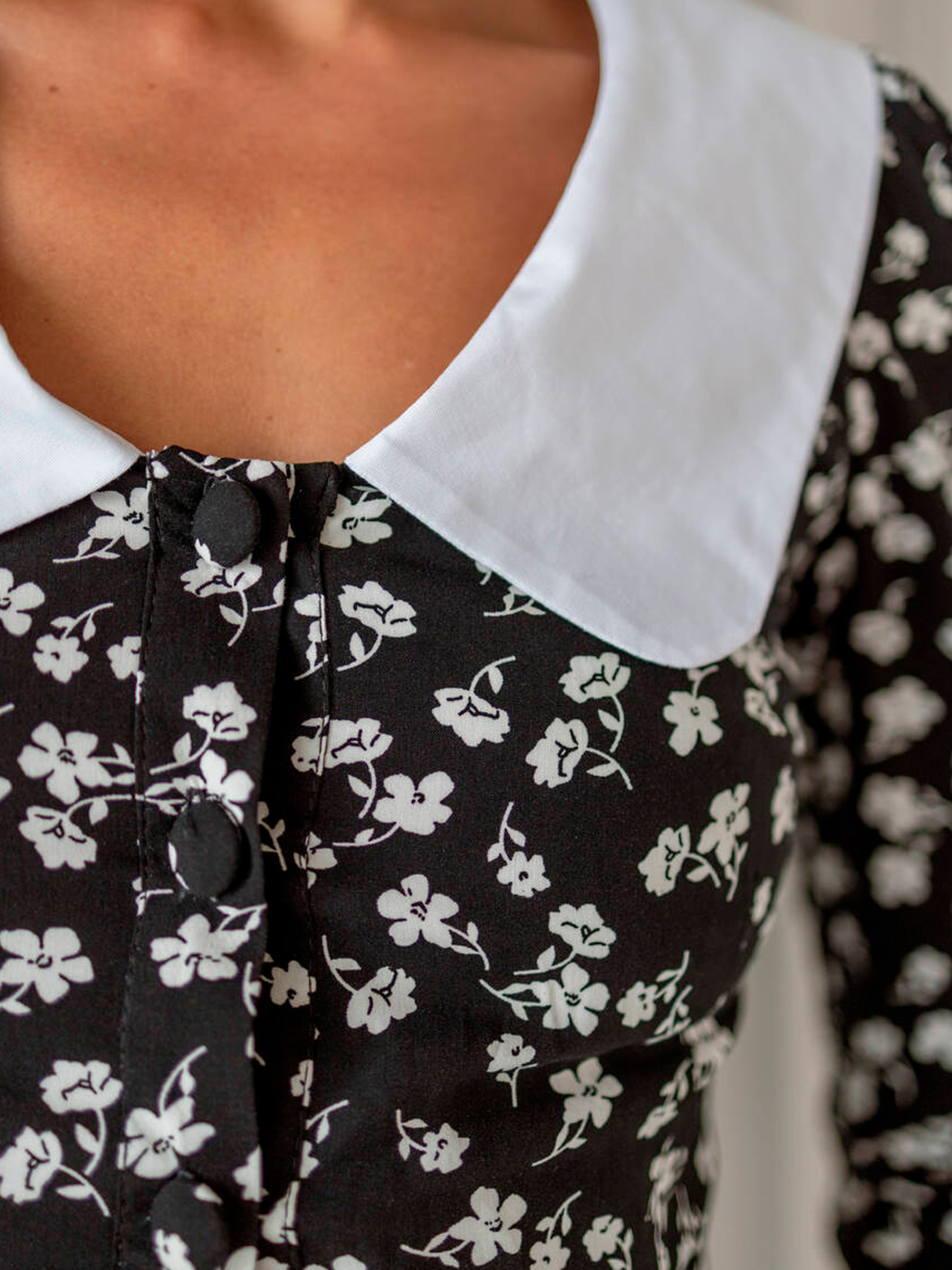Особливості та переваги сукні EMMA: Приталений силует із вільною спідницею; Білий комірець та манжети на рукавах додають романтичності; Застібка спереду на ґудзики; Легкий матеріал штапель з підкладкою з бавовни забезпечує комфорт; Ідеально підходить для створення жіночного образу. Характеристики: Тканина: штапель Підкладка: бавовна Розміри: S, M, L Кольори: чорний, зелений, червоний Неймовірно чарівна міні-сукня EMMA у квітковий принт доступна у трьох насичених кольорах. Вишуканий білий комірець ідеально поєднується з приталеним кроєм, підкреслюючи фігуру, та легкою спідницею для вільного руху. Рукави з білими манжетами додають образу ніжності та елегантності. Сукня виконана з легкого матеріалу штапель, що приємний на дотик, з підкладкою з бавовни для комфорту в носінні. Застібка спереду на ґудзики робить модель практичною та стильною.
