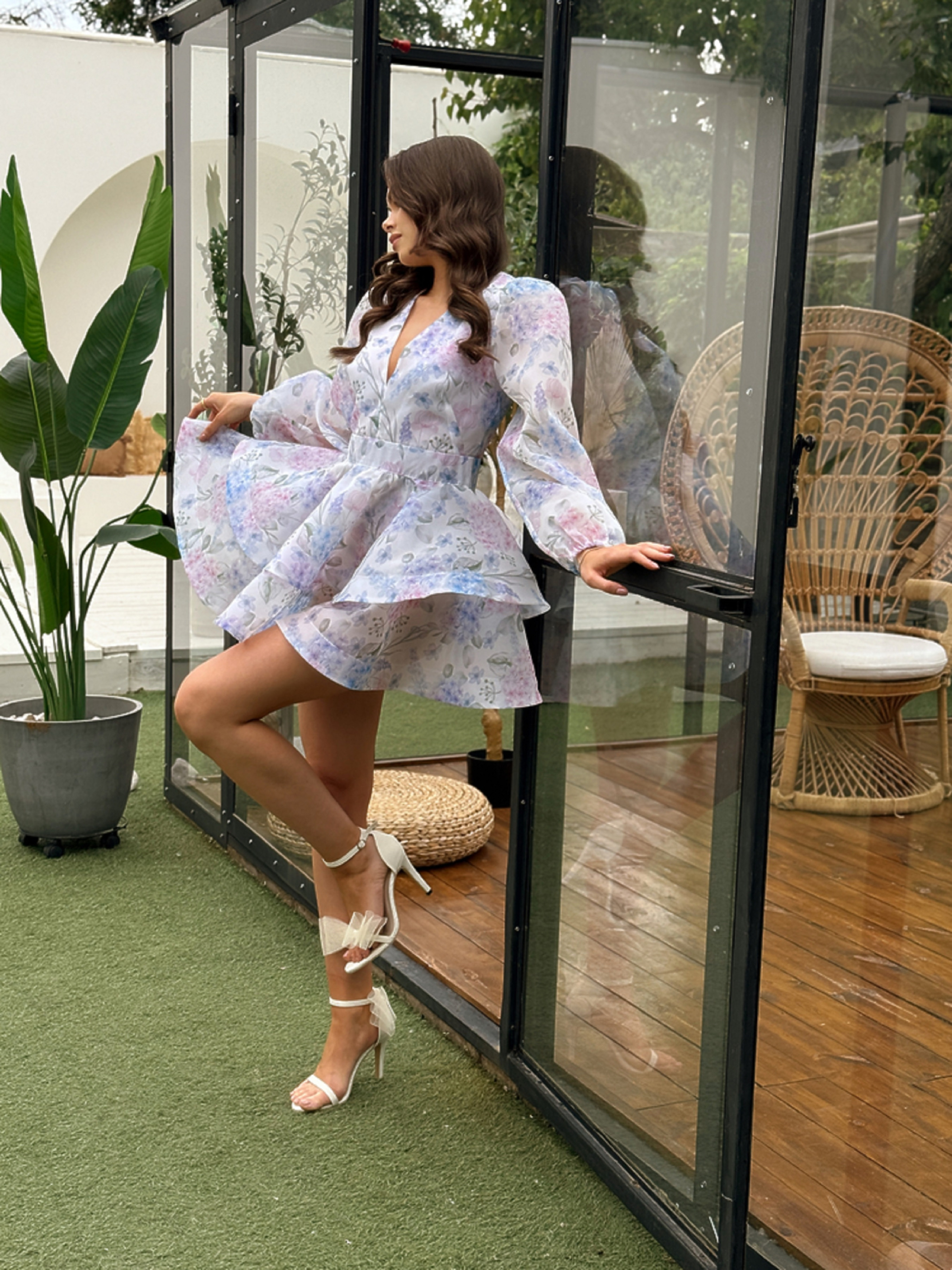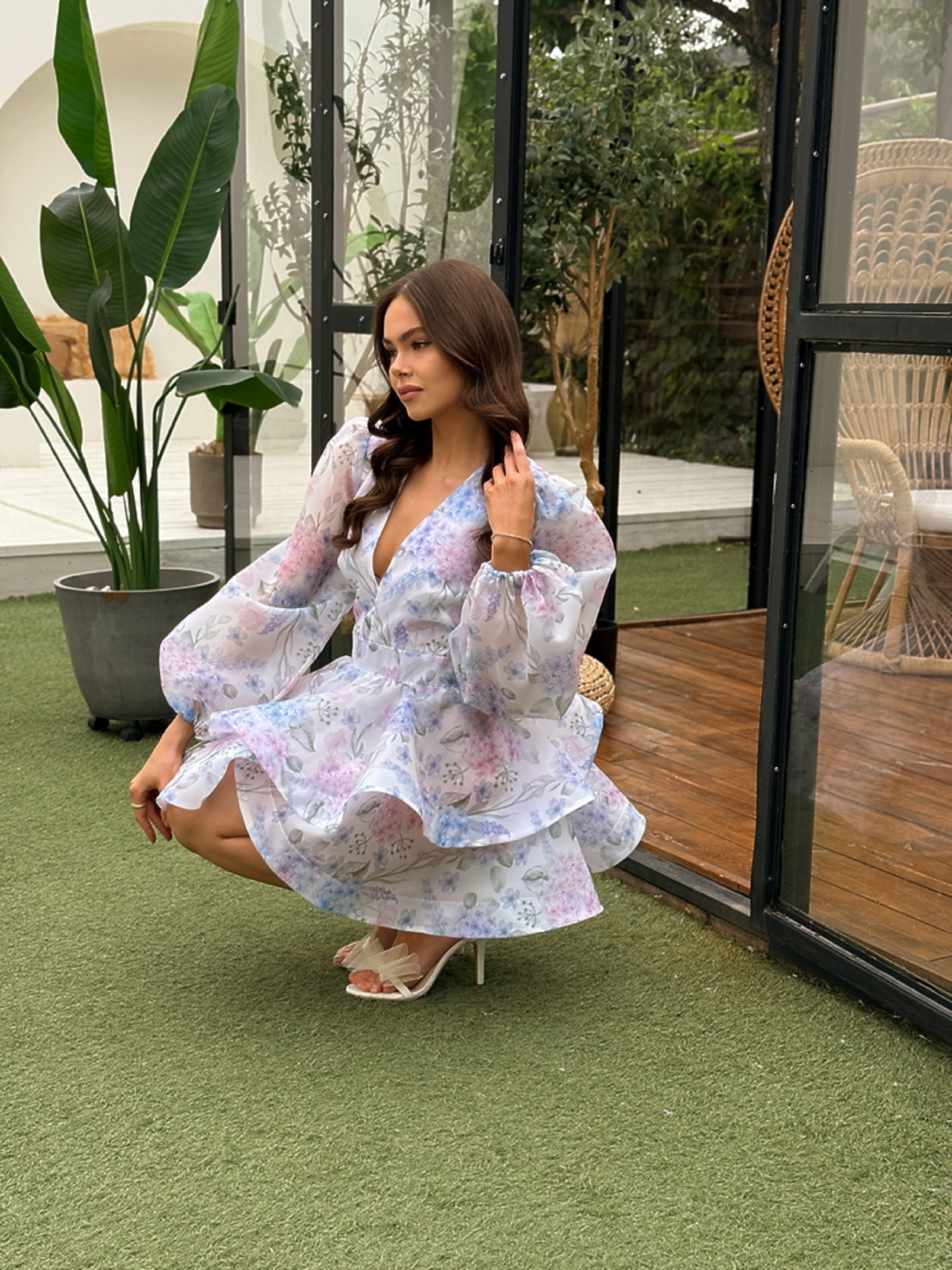 Характеристики: Тип виробу: сукня святкова Фасон: приталений верх, легка спідниця Виріз горловини: V-подібний Довжина рукава: короткий Довжина сукні: міді Тканина: органза принтована Підкладка: 100% бавовна Розміри: XS/S, M/L Принти: гортензія, сакура, рожева орхідея, блакитна квітка, півонії рожева Догляд: делікатне машинне прання при температурі до 30 °C прасування з вивороту при середній температурі до 150 °C не відбілювати не використовувати хімічну чистку сушити в тіні у розкладеному вигляді Особливості та опис: Сукня KERRY — це поєднання легкості, жіночності та ніжності. Виконана з прозорої принтованої органзи, вона створює ефект легкого сяйва та чудово тримає форму. Завдяки натуральній бавовняній підкладці виріб приємний до тіла й комфортний у носінні навіть у спекотну погоду. V-подібний виріз елегантно підкреслює лінію шиї та декольте, додаючи образу витонченості. Верхня частина сукні м’яко облягає фігуру, плавно переходячи у розкльошену спідницю, що красиво рухається під час ходи. Романтичні квіткові принти — гортензії, сакури, орхідеї та півонії — створюють святковий настрій і надають образу свіжості. Ця модель стане чудовим вибором для урочистих подій, вечірок або літніх свят. Сукня KERRY — це гармонія стилю, ніжності та природної краси, яка підкреслить індивідуальність кожної жінки.
