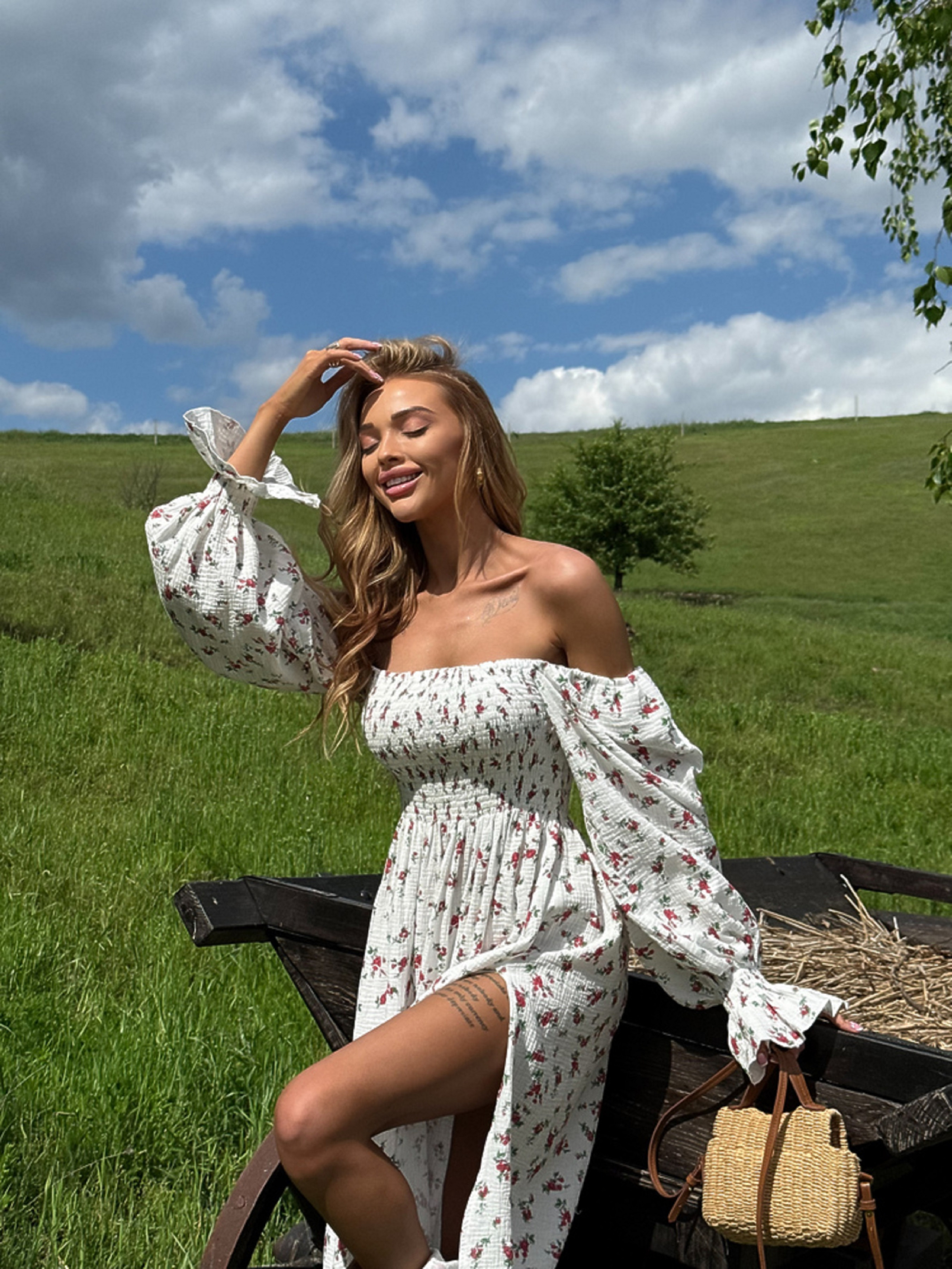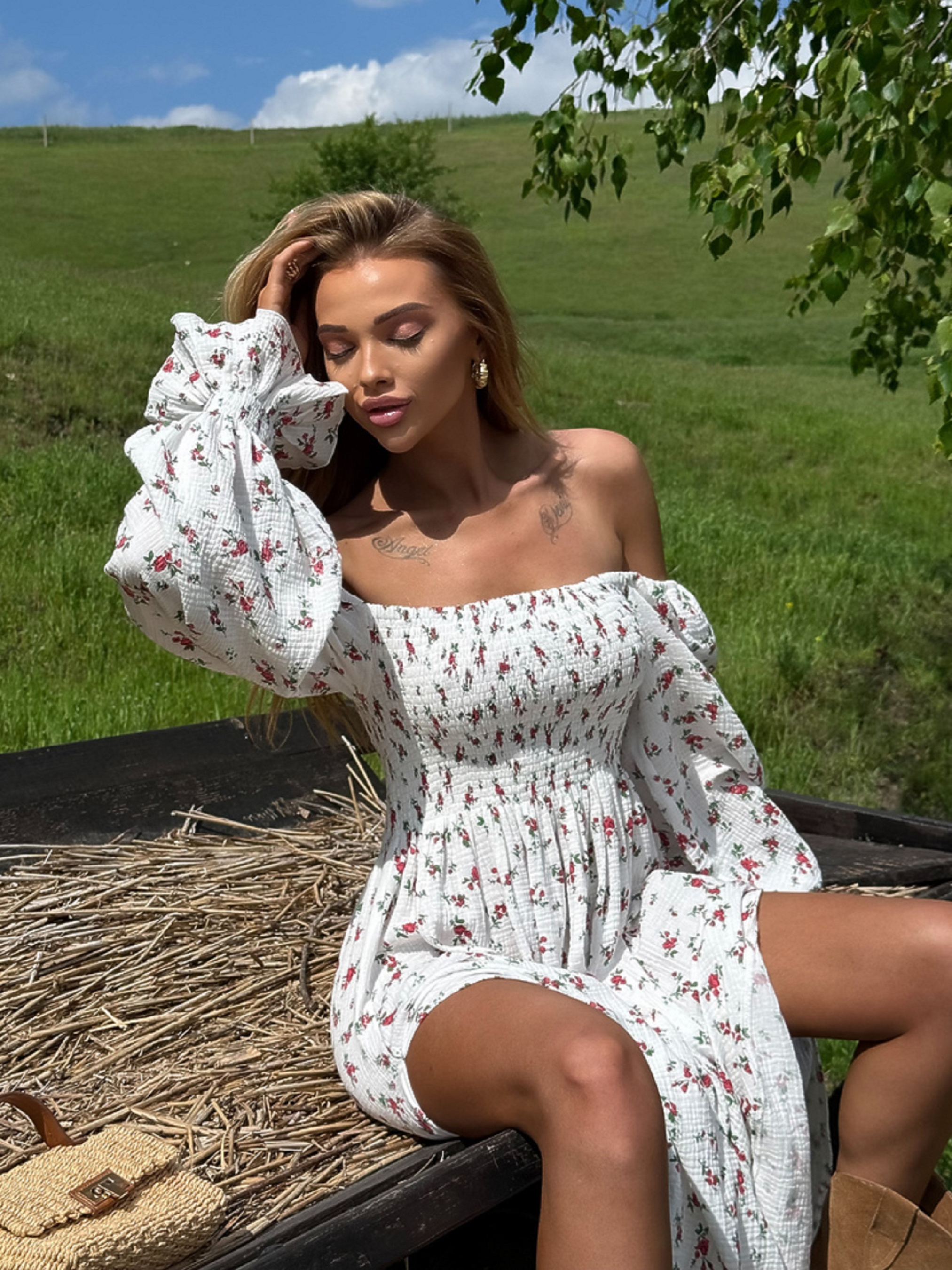 Особливості та характеристики: вільний, злегка розкльошений крій, який підходить для фігур різного типу; приємна до тіла натуральна тканина — муслін забезпечує відмінну повітропроникність; зручна довжина до щиколотки з розрізом, що додає рухливості та грації; елегантний виріз горловини та короткі рукави створюють ніжний літній образ; представлена в яскравих квіткових принтах: червона троянда, помаранчева троянда та жовта мімоза. Характеристики: Матеріал: муслін Склад тканини: 100% бавовна Розмір: one size (M) Довжина: міді Принти: троянда червона дрібна, троянда помаранчева, жовта мімоза Догляд: машинне або ручне прання при температурі до 30 °C прасування при середній температурі (до 150 °C) не використовувати відбілювачі сушити у тіні, у розправленому вигляді Легка й ніжна сукня з мусліну — ідеальний вибір для спекотних літніх днів. Вона м’яка до тіла, приємна на дотик і чудово дихає, створюючи відчуття природного комфорту. Завдяки струмливій тканині та розрізу знизу сукня виглядає жіночно, витончено й додає легкості силуету.