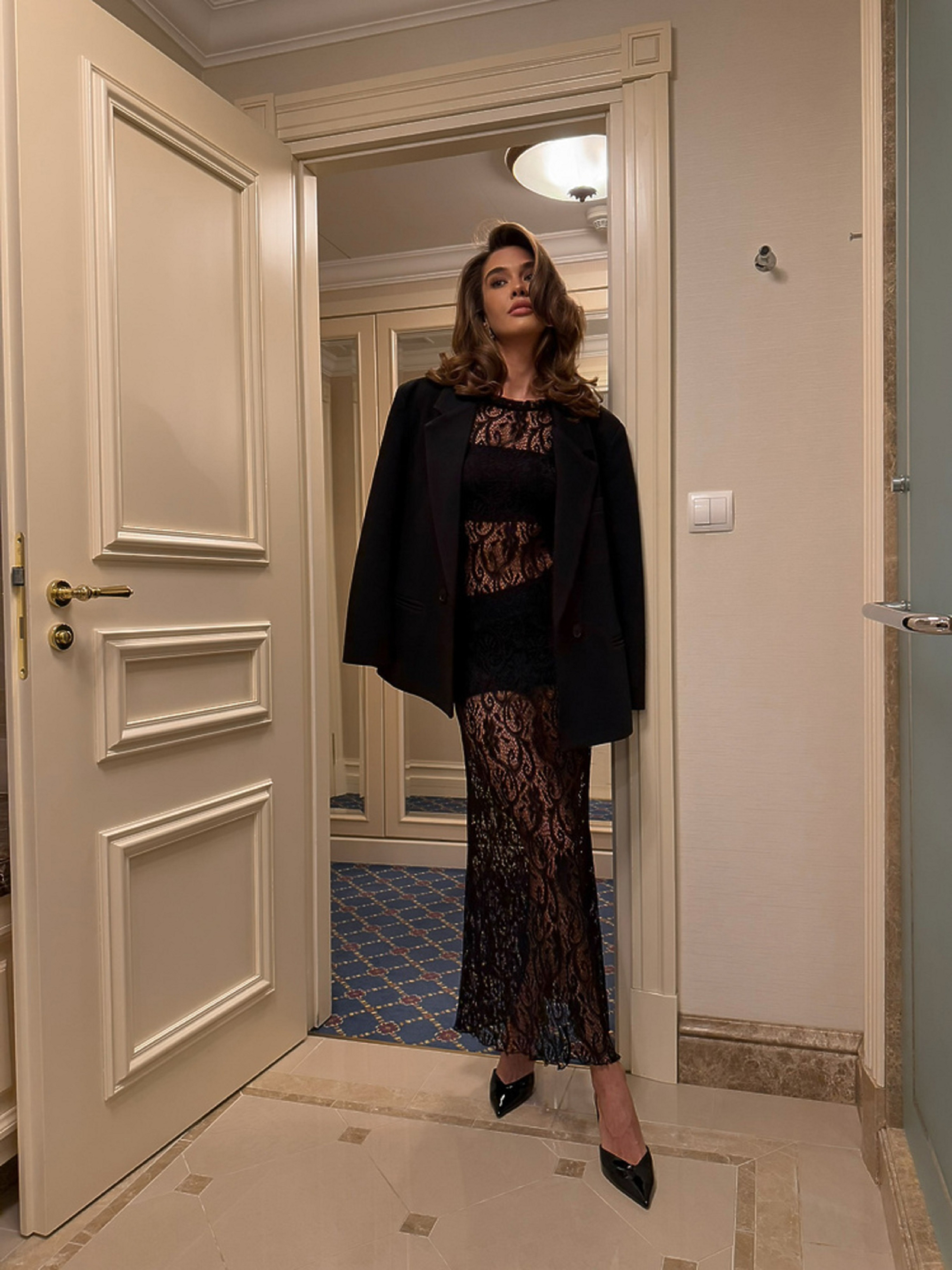 Характеристики: Довжина рукава: 7/8 на резинці Довжина виробу: maxi Матеріал: вуаль, мереживо Склад тканини: 100% поліестер Застібка: потайна блискавка в боковому шві Розмір: XS–M Догляд: ручне або машинне прання в режимі “делікатне” при температурі до 30 °C прасування при низькій температурі (до 110 °C) з виворітного боку хімічна чистка заборонена не відбілювати сушити у горизонтальному положенні, подалі від прямих сонячних променів Опис моделі: Тренд сезону — прозора мереживна сукня в стилі лонгслів, яка підкреслює жіночність і витонченість силуету. Модель виконана з надлегкої вуалі, що створює ефект повітряності та ніжності. Рукави довжиною 7/8 зібрані на резинку по низу, забезпечуючи комфорт і легкість рухів. На спинці талія зібрана еластичними нитками, що дозволяє делікатно підкреслити фігуру. Потайна блискавка в боковому шві забезпечує зручність під час одягання. Низ сукні складається з двох шарів спідниці з регалігом, що створюють ефект лялькового об’єму. Прозора текстура та ніжне мереживо роблять цю модель ідеальним вибором для модних фотосесій, вечірок або особливих подій.