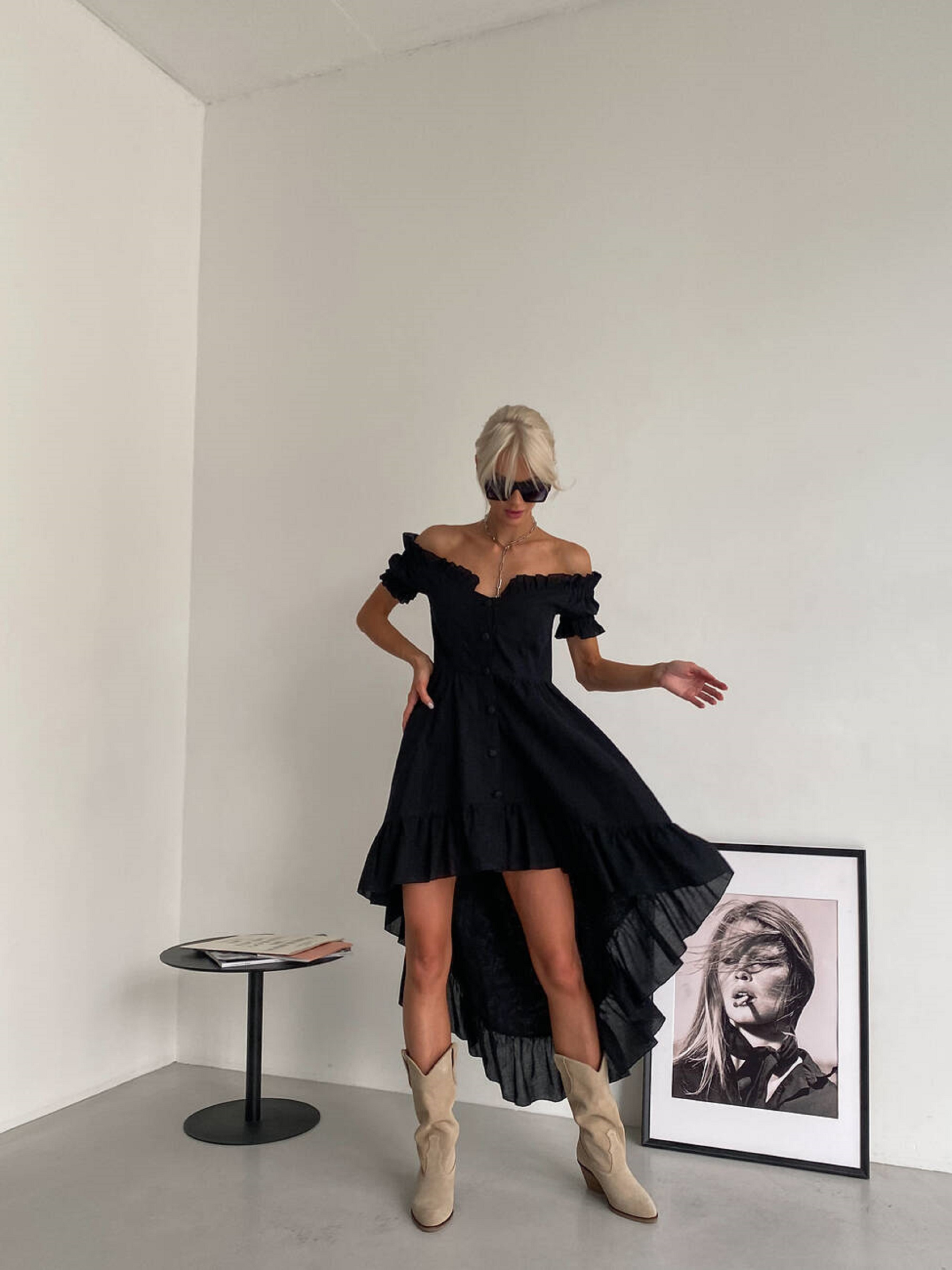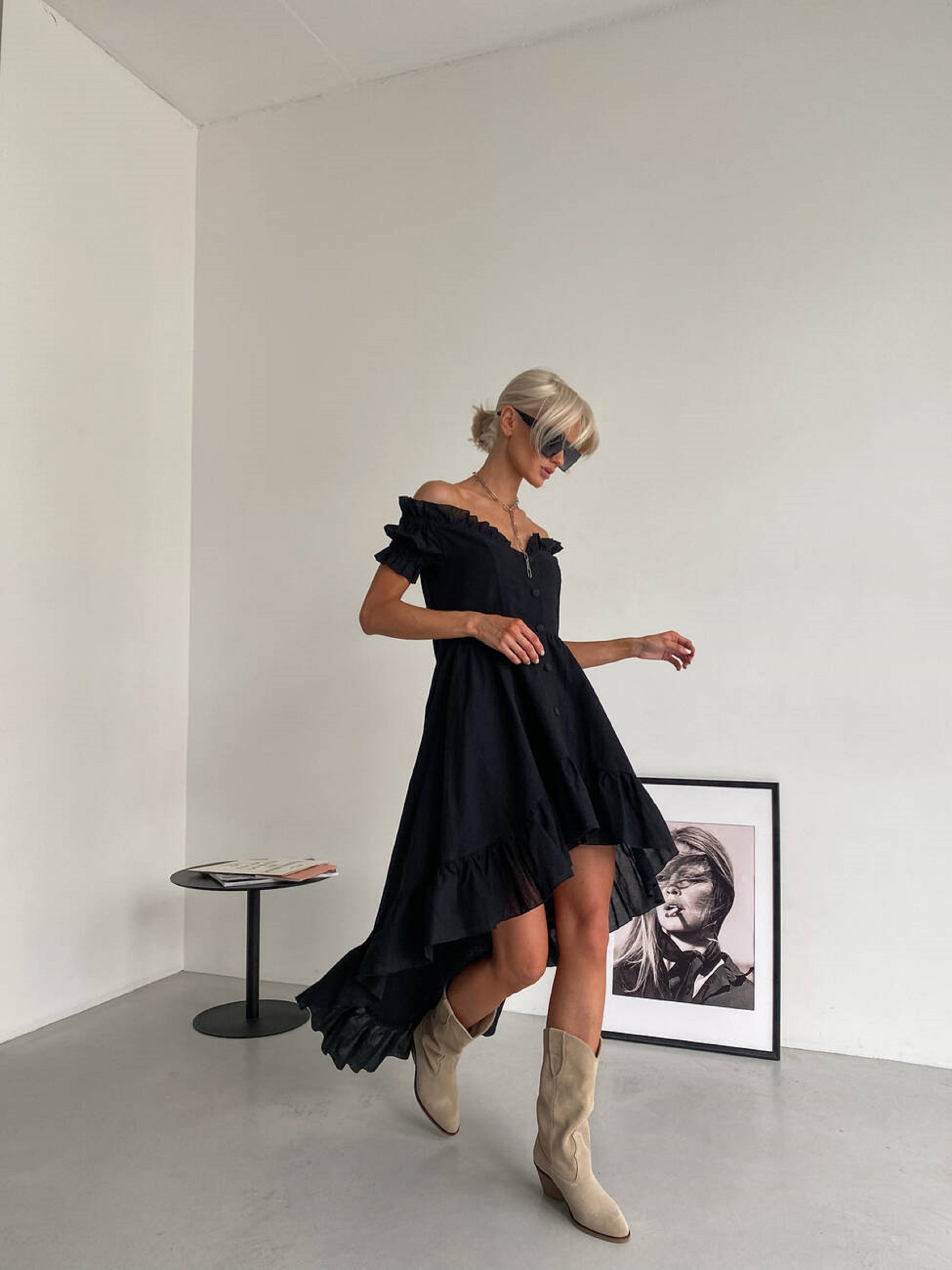 Характеристики: Фасон: сукня з відкритими плечима Стиль: романтичний, повсякденний Матеріал: 100% бавовна Розміри: S/M, M/L Довжина: вище коліна Догляд: Прання при температурі до 30 °C у режимі “делікатне” Не використовувати відбілювачі Прасувати при середній температурі (до 150 °C) Не віджимати на високих обертах Сушити в тіні, у розправленому вигляді Легка сукня MIRANDA стане улюбленою річчю вашого літнього гардеробу. Вона ідеально пасує для прогулянок, побачень або відпочинку біля моря, підкреслюючи природну красу й витонченіст Ніжна літня сукня MIRANDA створена у романтичному стилі з відкритими плечима, що красиво підкреслюють лінію шиї та ключиць. Виконана з натуральної бавовни, вона дарує відчуття легкості й комфорту навіть у найспекотніші дні. М’яка, дихаюча тканина приємна до тіла, не парить і забезпечує свободу рухів. Силует сукні жіночний і водночас невимушений — вона м’яко облягає фігуру, акцентуючи увагу на ніжках і створюючи легкий, романтичний образ. Чудово поєднується з босоніжками, балетками чи легкими кедами.