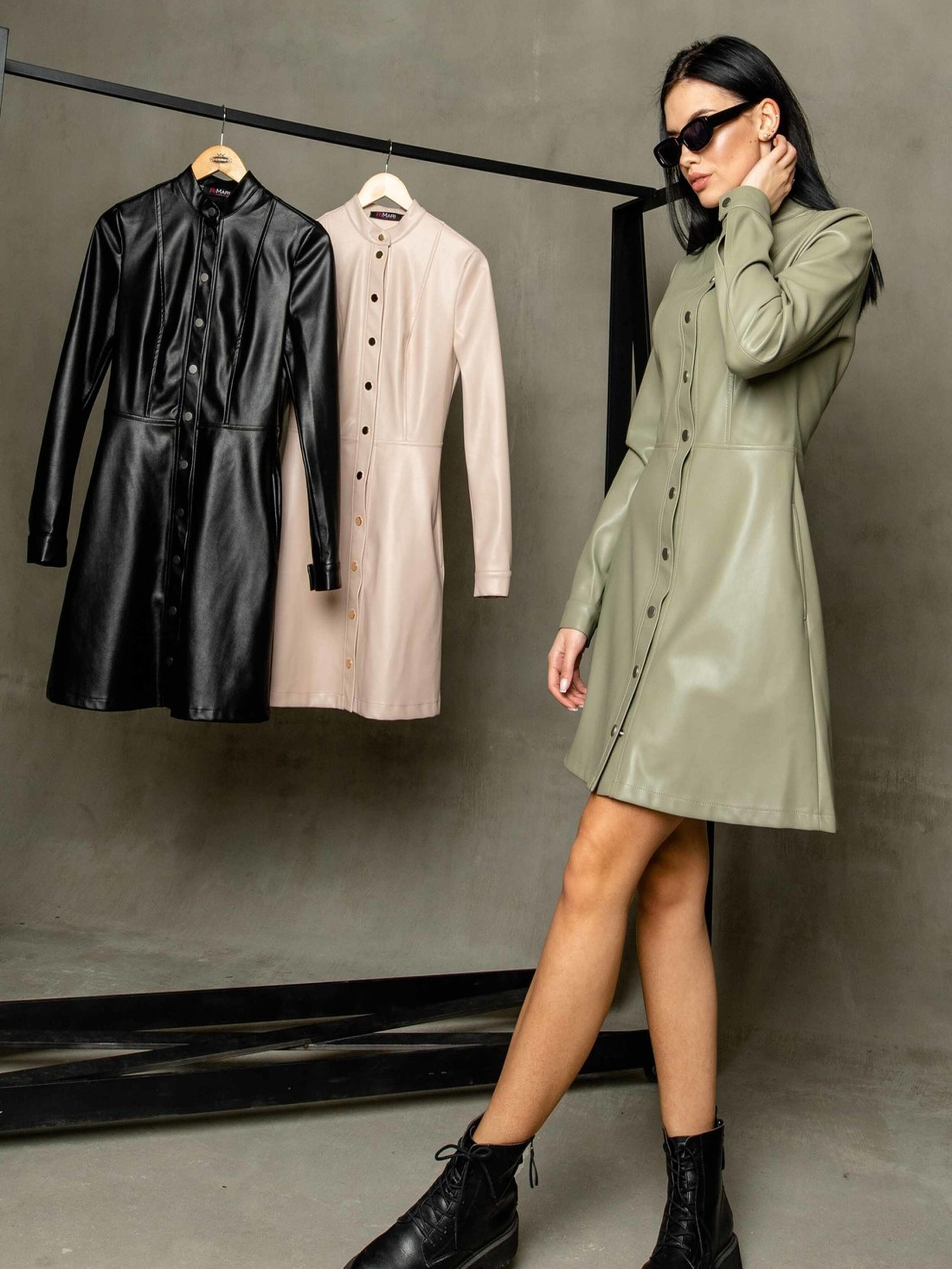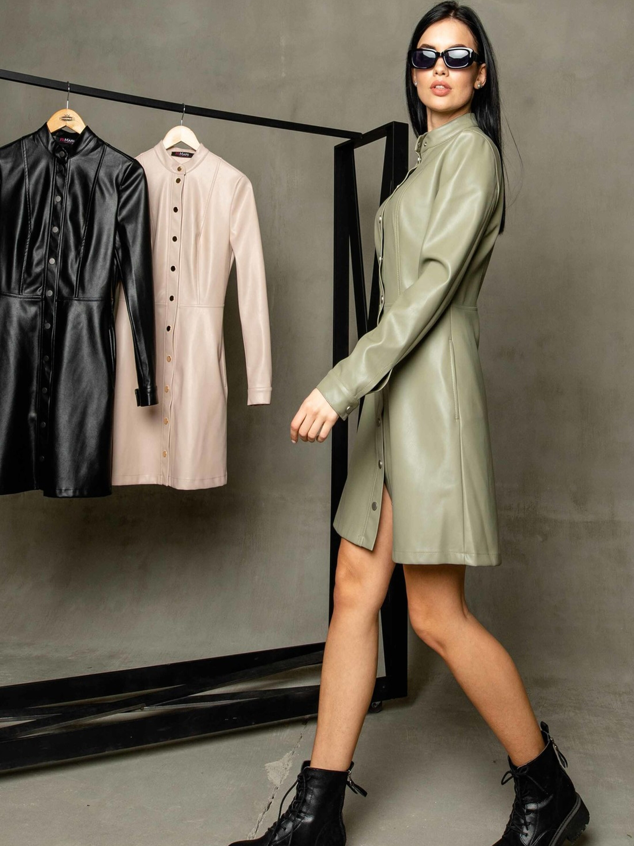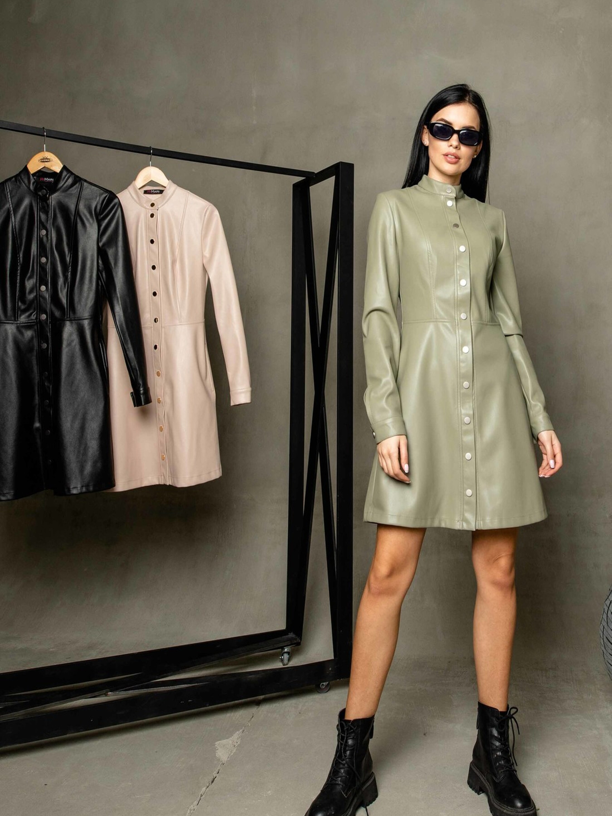 Демісезонна трендова сукня напівприлеглого силуету міні довжини стане яскравим акцентом вашого гардеробу. Елегантний комірець-стійка та функціональна застібка на кнопках спереду додають їй стильного вигляду. Довгі рукави завершуються акуратними манжетами. Сукня відрізна по лінії талії, а спідниця має форму трапеції, що підкреслює фігуру та забезпечує свободу рухів. Зручні кишені, розташовані в бічних швах, роблять цю модель ще більш практичною. Виготовлена з якісної екошкіри на замші, ця сукня виглядає ефектно та забезпечує комфорт у носінні. Вона чудово підійде як для створення стильного образу для вечірки, так і для елегантного повсякденного офісного вбрання. Характеристики: Матеріал: Екошкіра на замші (34% віскоза, 56% поліестер, 10% бавовна) Крій: Напівприлеглий силует, міні довжина, спідниця трапеція Комір: Стійка Застібка: Функціональна на кнопках спереду Рукав: Довгий, з манжетою Деталі: Відрізна по лінії талії, кишені в бічних швах Стиль: Трендoвий, повсякденний, вечірній, офісний Властивості: Стильний вигляд екошкіри, комфортна замшева основа Сезон: Демісезон