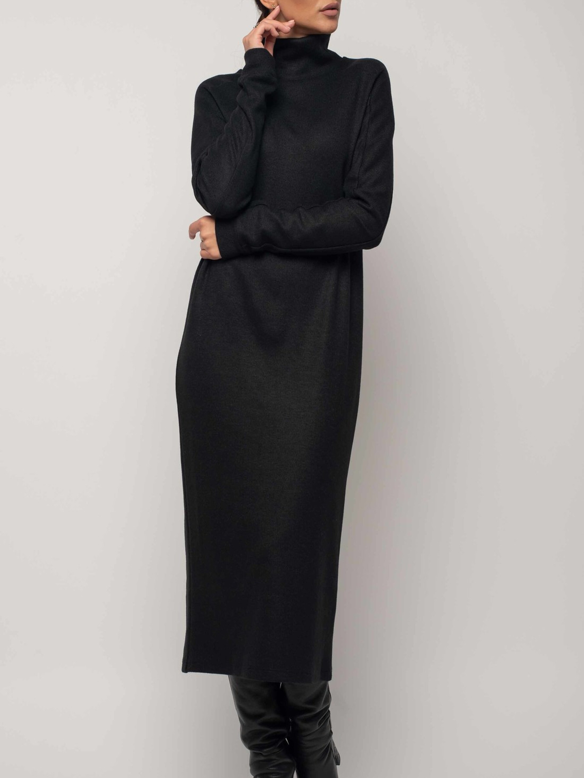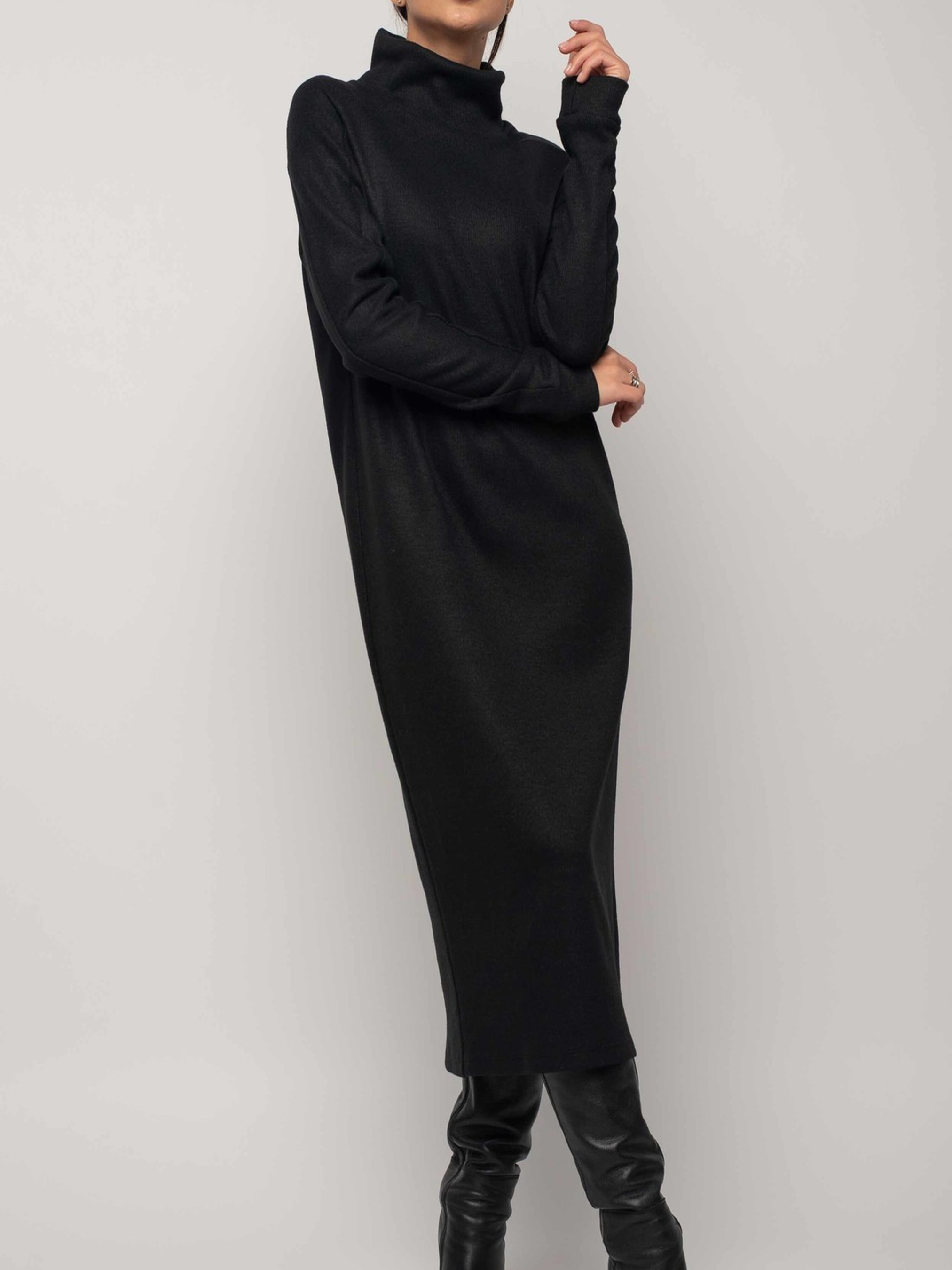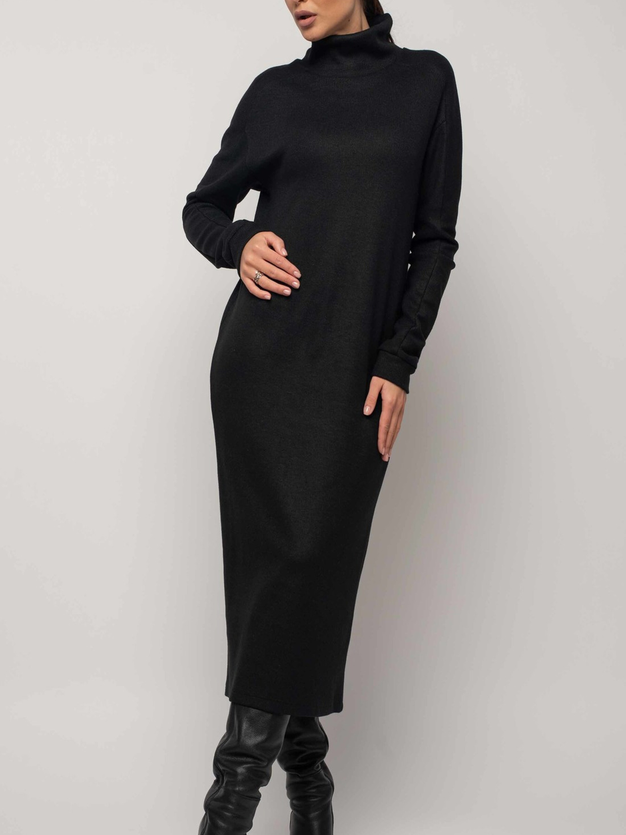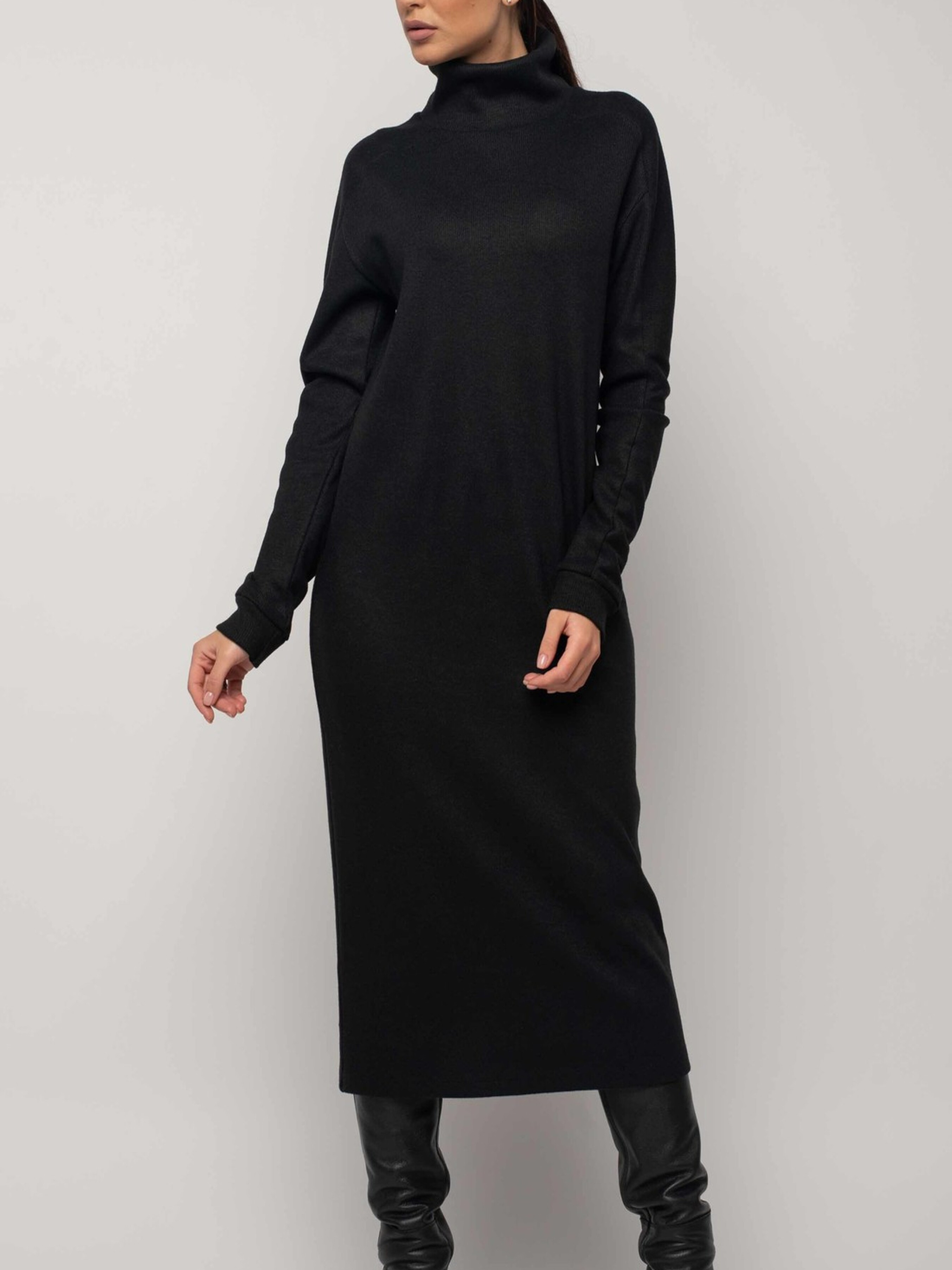 Модна зимова сукня вільного силуету елегантної міді довжини стане вашим затишним та стильним супутником у холодну пору року. Видовжена горловина забезпечить додаткове тепло та комфорт. Широкий рукав зі спущеною лінією плеча реглан завершується акуратною манжетою. Ця об'ємна та неймовірно затишна сукня подарує вам відчуття ніжного тепла, не поступаючись при цьому жіночності образу та вимогам офісного дрес-коду. Завдяки здвоєному розміру, ви зможете підібрати ідеальну посадку. Виготовлена зі щільного в'язаного трикотажу, сукня чудово зберігає тепло та приємна до тіла. Її вільний крій не сковує рухів, дозволяючи вам почуватися комфортно протягом усього дня. Характеристики: Матеріал сукні: Щільний в'язаний трикотаж (56% поліестер, 34% віскоза, 10% бавовна) Стиль: Модний, зимовий, повсякденний, офісний Крій: Вільний силует Довжина: Міді Горловина: Видовжена Рукав: Широкий, спущений плече реглан, з манжетою Особливості: Об'ємна, затишна, тепла, здвоєний розмір Властивості: Зберігає тепло, комфортна, не сковує рухів Сезон: Зима