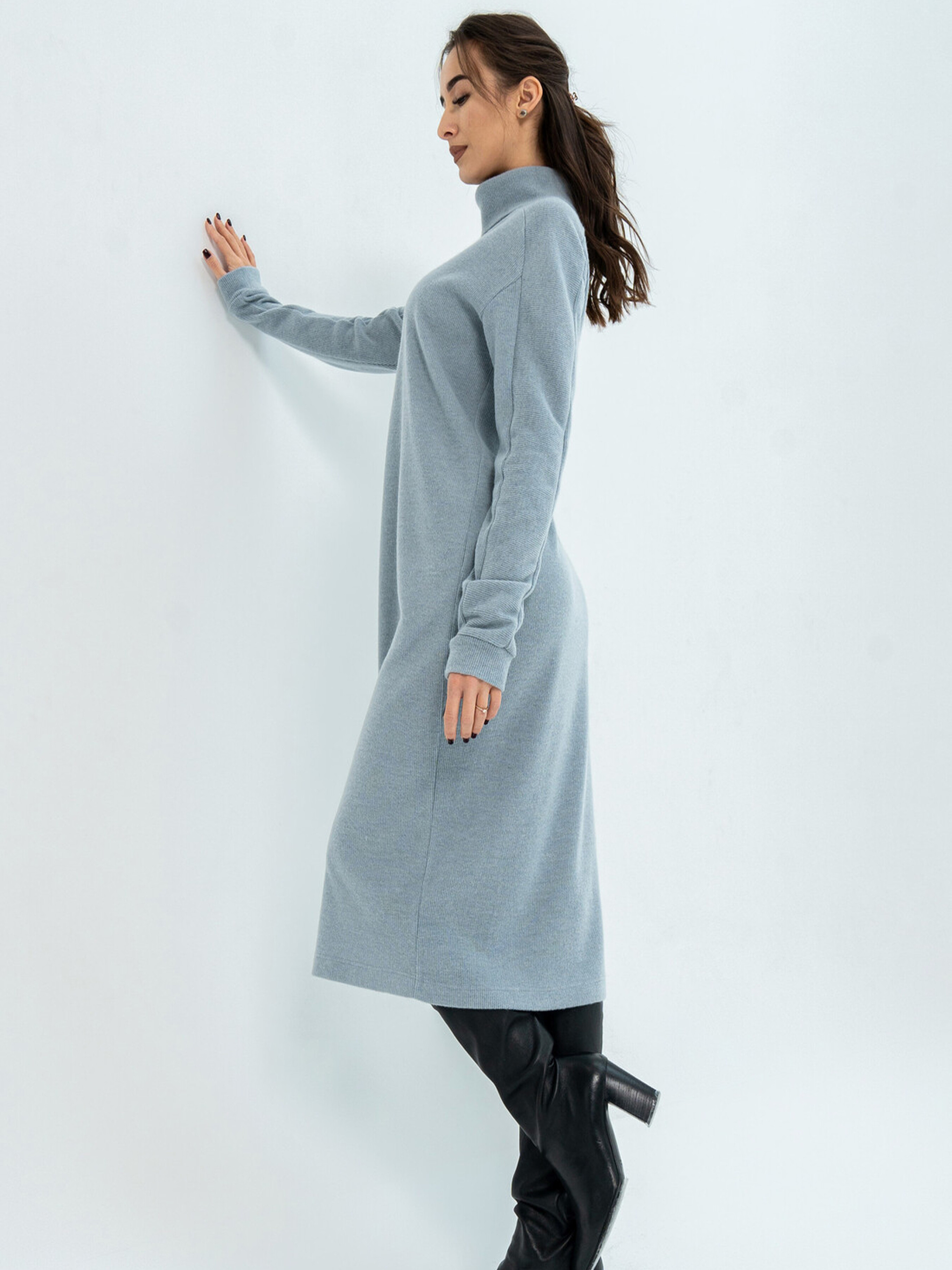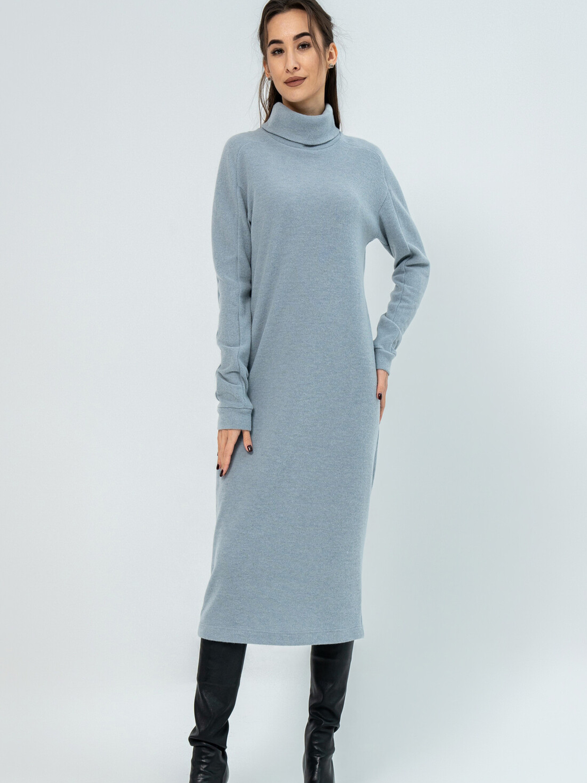 Модна зимова сукня вільного силуету елегантної міді довжини стане вашим затишним та стильним супутником у холодну пору року. Видовжена горловина забезпечить додаткове тепло та комфорт. Широкий рукав зі спущеною лінією плеча реглан завершується акуратною манжетою. Ця об'ємна та неймовірно затишна сукня подарує вам відчуття ніжного тепла, не поступаючись при цьому жіночності образу та вимогам офісного дрес-коду. Завдяки здвоєному розміру, ви зможете підібрати ідеальну посадку. Виготовлена зі щільного в'язаного трикотажу, сукня чудово зберігає тепло та приємна до тіла. Її вільний крій не сковує рухів, дозволяючи вам почуватися комфортно протягом усього дня. Характеристики: Матеріал сукні: Щільний в'язаний трикотаж (56% поліестер, 34% віскоза, 10% бавовна) Стиль: Модний, зимовий, повсякденний, офісний Крій: Вільний силует Довжина: Міді Горловина: Видовжена Рукав: Широкий, спущений плече реглан, з манжетою Особливості: Об'ємна, затишна, тепла, здвоєний розмір Властивості: Зберігає тепло, комфортна, не сковує рухів Сезон: Зима