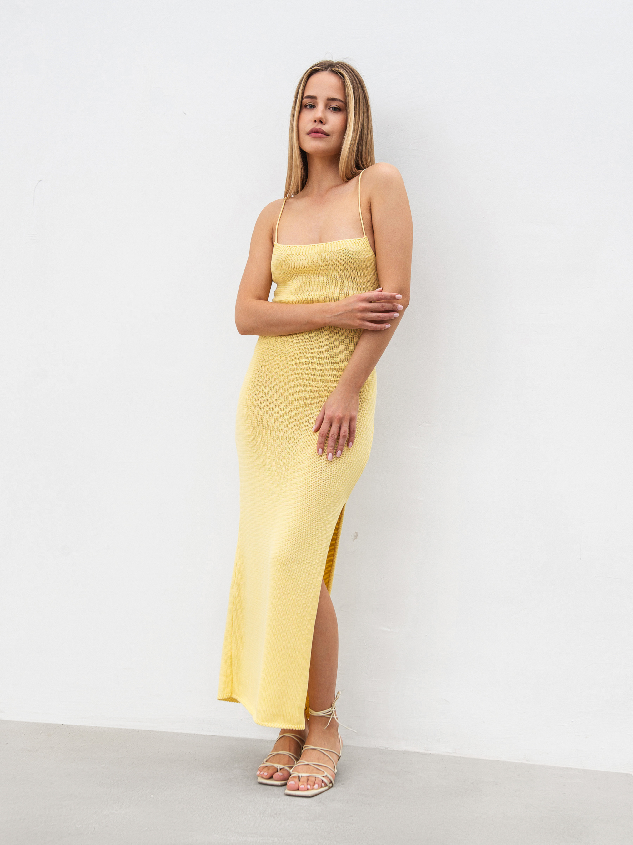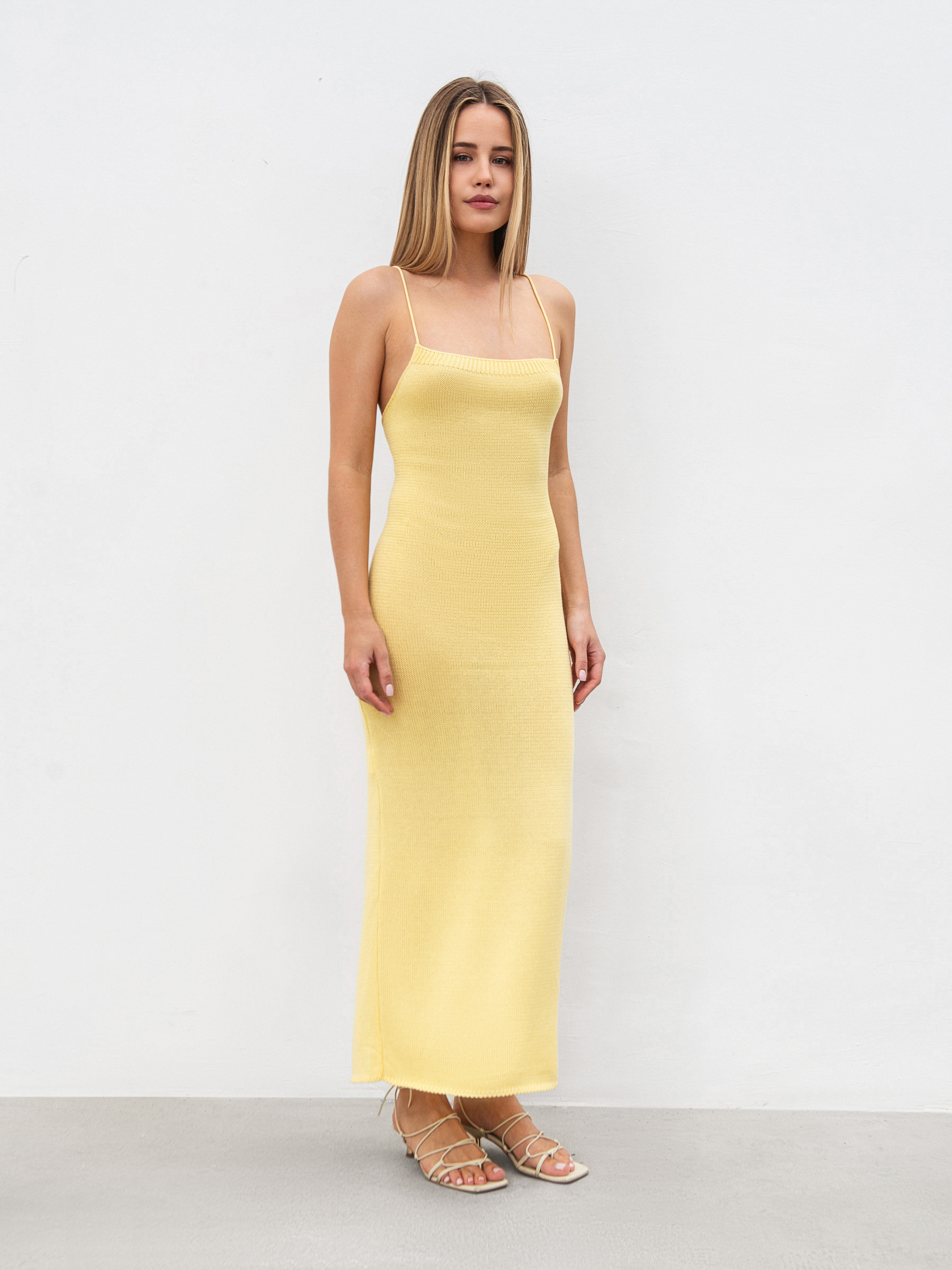 Платье Сафо - элегантная и одновременно удобная модель, идеально подчеркивающая силуэт. Благодаря смешанной пряже из хлопка и акрила ткань приятная к телу, износостойкая и хорошо держит форму. Фасон по фигуре с длиной миди создает изящные пропорции, а разрез добавляет легкости и акцента. Изысканные завязки на спинке добавляют образу игривости и позволяют регулировать посадку. Платье станет отличным выбором как для повседневных летних прогулок, так и для вечерних выходов. Сочетается с босоножками, минималистичными аксессуарами или объемными серьгами, создавая стильный и современный образ. ХС-С Длина по спине: 109 см Полуобхват груди: 25 см Полуобхват талии: 30 см Полуобхват бедер: 40 см М-Л Длина по спине: 119 см Полуобхват груди: 29 см Полуобхват талии: 31 см Полуобхват бедер: 42 см