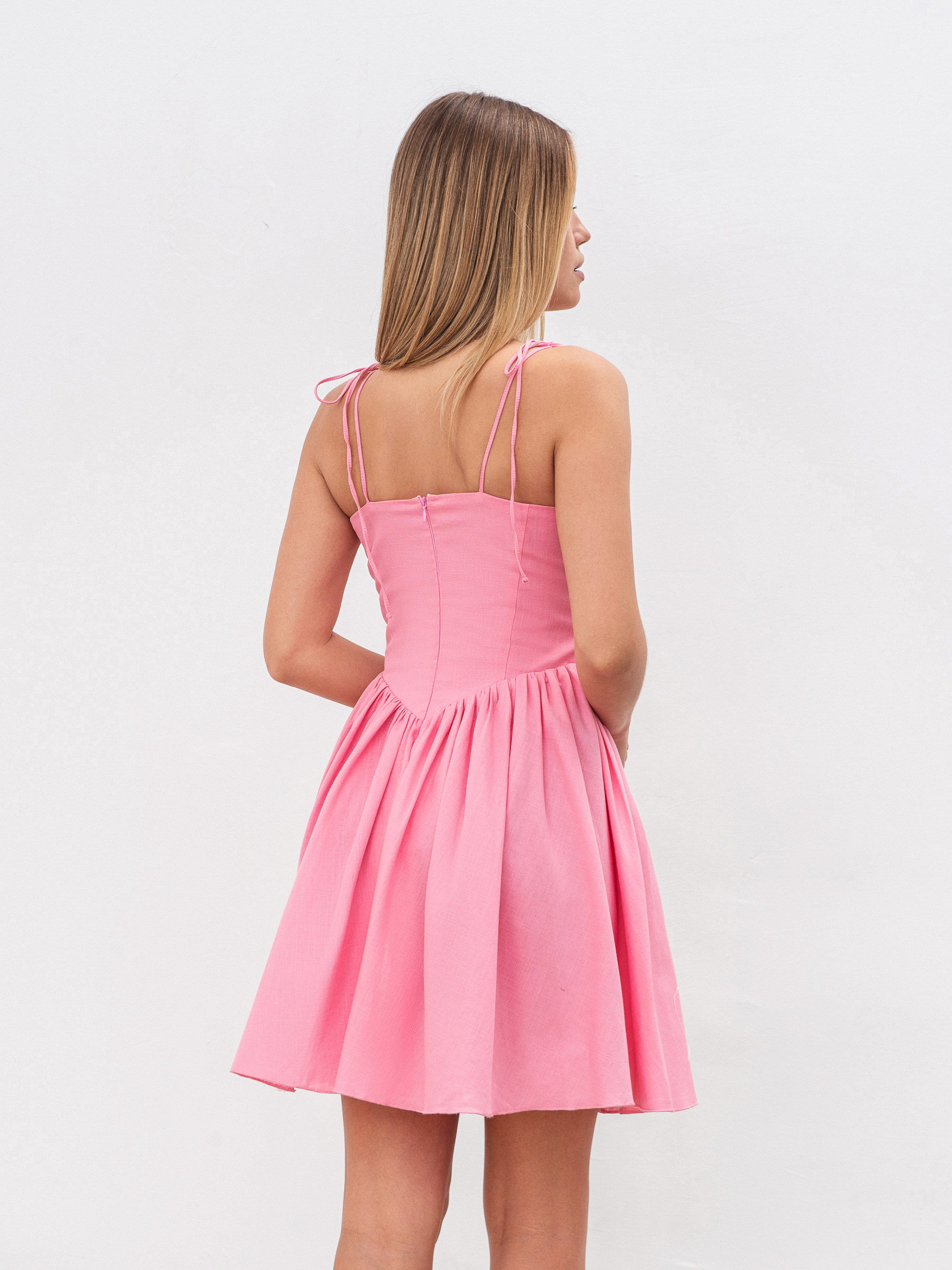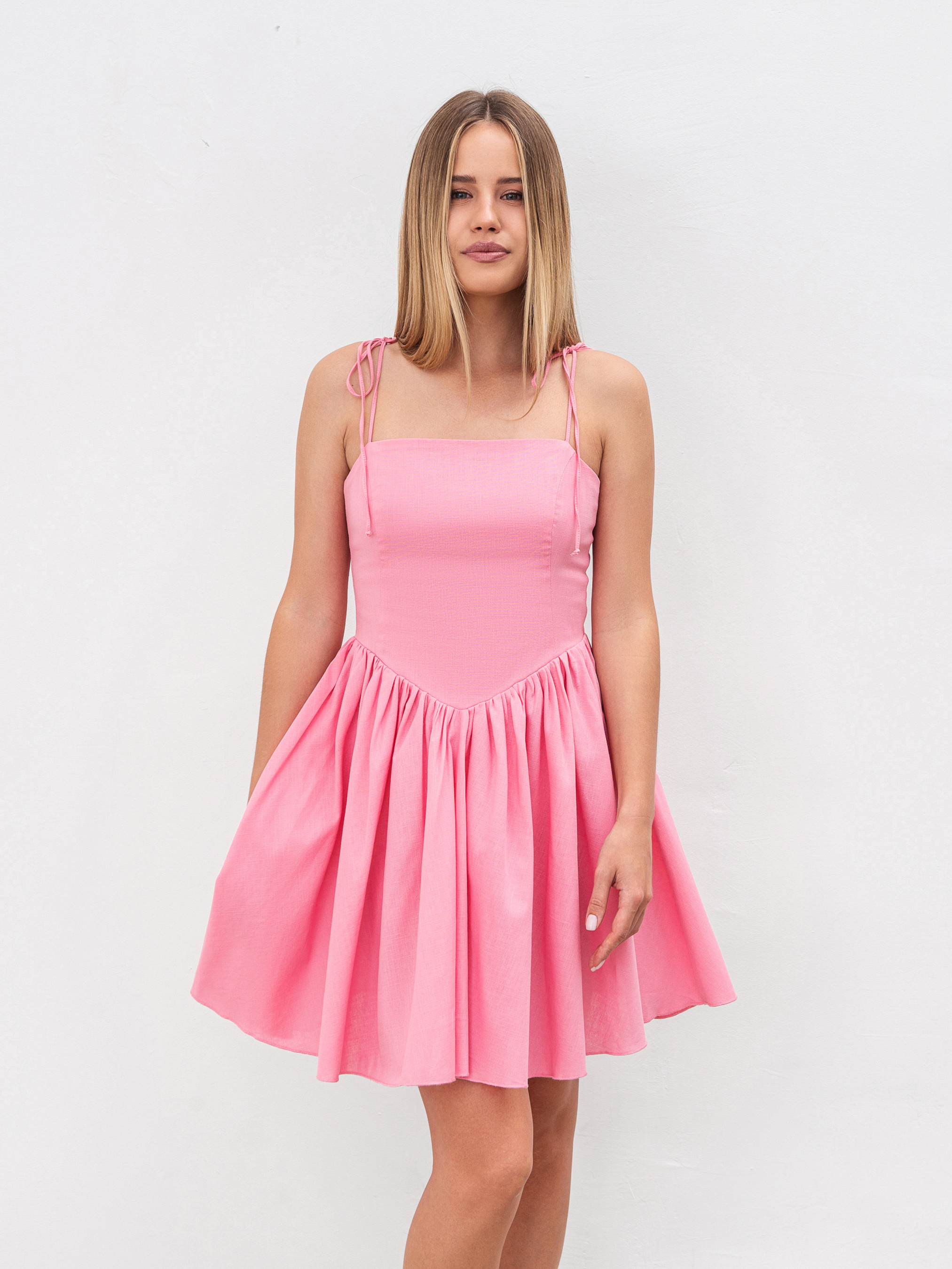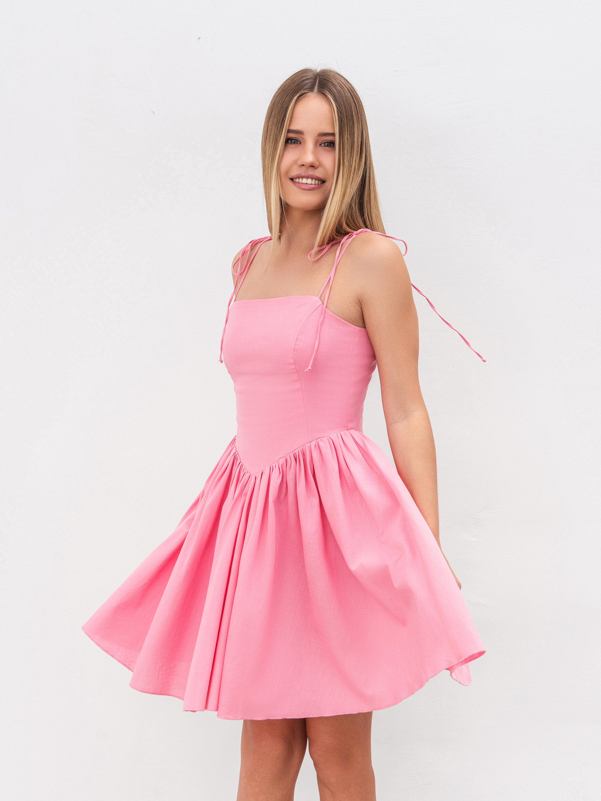 Платье полуприлегающего фасона длины мини. Застегивается на потайную молнию в среднем шве спинки. Верхняя часть платья двойная, чтобы ткань не просвечивала и ношение было комфортным. Тонкие бретели, которые можно регулировать. Изготовлено из льна. Состав материала: 24% лен, 56% вискоза, 20% полиэстер. Нежный, романтический вариант на лето. Можно сочетать с различной обувью, создавая образы. ХС Длина по спине: 68 см Полуобхват груди: 35 см Полуобхват талии: 32 см С Длина по спине: 68 см Полуобхват груди: 36 см Полуобхват талии: 34 см М Длина по спине: 68 см Полуобхват груди: 37 см Полуобхват талии: 36 см Л Длина по спине: 69 см Полуобхват груди: 40 см Полуобхват талии: 38 см ХЛ Длина по спине: 69 см Полуобхват груди: 42 см Полуобхват талии: 41 см