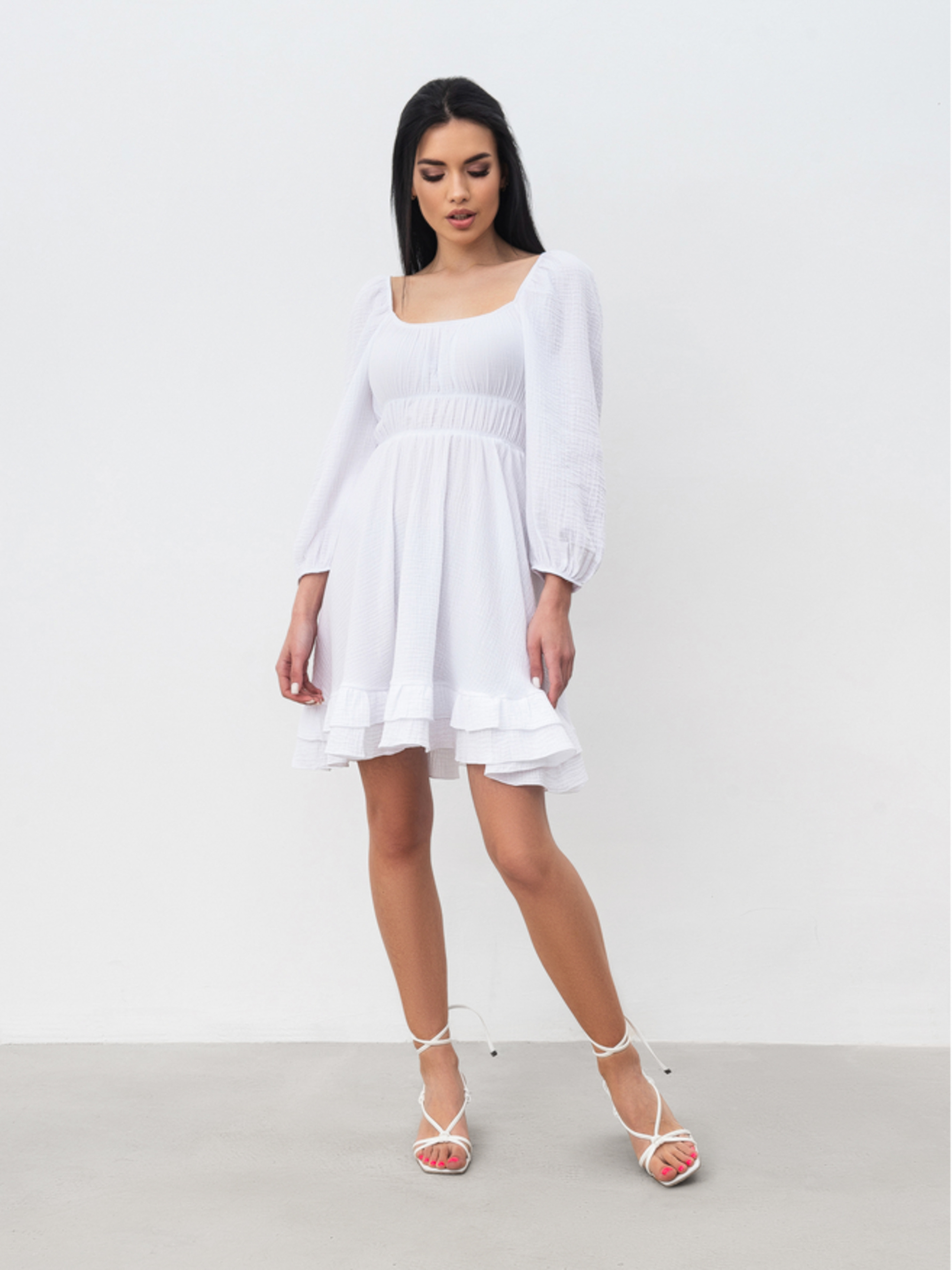 Летнее платье в романтичном стиле. Выполнено из натуральной ткани, хорошо тянется. Низ двухслойный. Модель хорошо подчеркивает талию и выиграшно смотрится на любой фигуре. Сочетать можно з открытой обувью и небольшими сумками. XS/S ПБ груди 32 см тянется хорошо за счет резинки. Длинна по спине 59-67 см. Полуобхват талии 32 см тянется по резинке хорошо. S/M ПБ груди 36 см тянется хорошо за счет резинки. Длина по спине 59-67 см. Полуобхват талии 35 см тянется по резинке хорошо. M/L ПБ груди 38 см тянется хорошо за счет резинки. Длина по спине 59-67 см Полуобхват талии 36 см тянется по резинке хорошо.