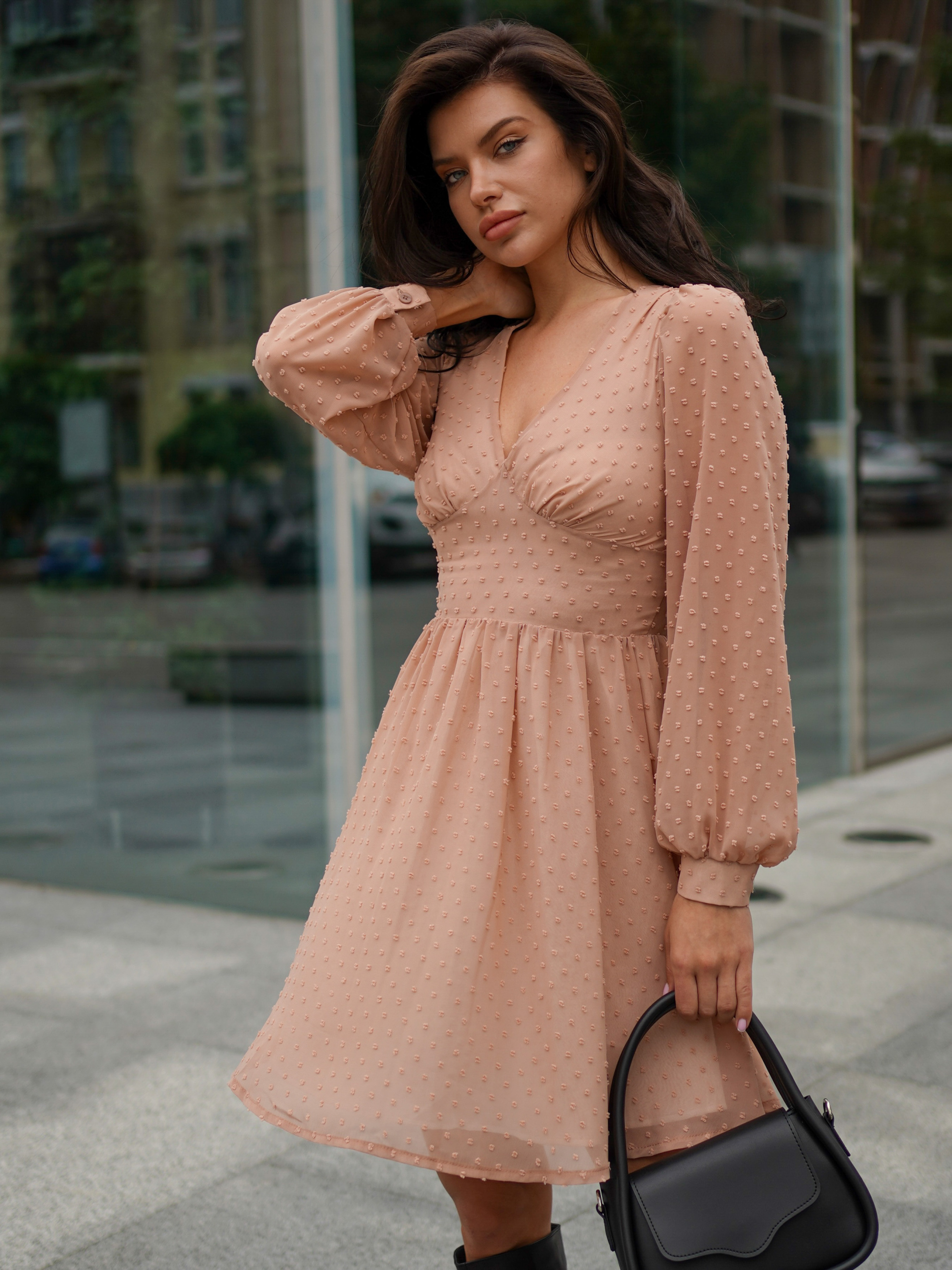 Женственное и легкое платье из шифона. Фасон приталенный, что хорошо обыграет фигуру. Есть хлопковая подкладка. Носить можно с высокими сапогами или другой обувью. А дополнить образ можно ненавязчивым клатчем и украшениями. XS По плечам 30 см ПБ груди 36,5 см Длинна по спине 85 см Полуобхват талии 34 см Длина рукава 62 см S По плечам 30 см ПБ груди 39 см Длинна по спине 85 см Полуобхват талии 36 см Длина рукава 62 см M По плечам 32 см ПБ груди 40 см Длинна по спине 86 см Полуобхват талии 37 см Длина рукава 62 см L По плечам 33 см ПБ груди 41,5 см Длинна по спине 86 см Полуобхват талии 37 см Длина рукава 62 см