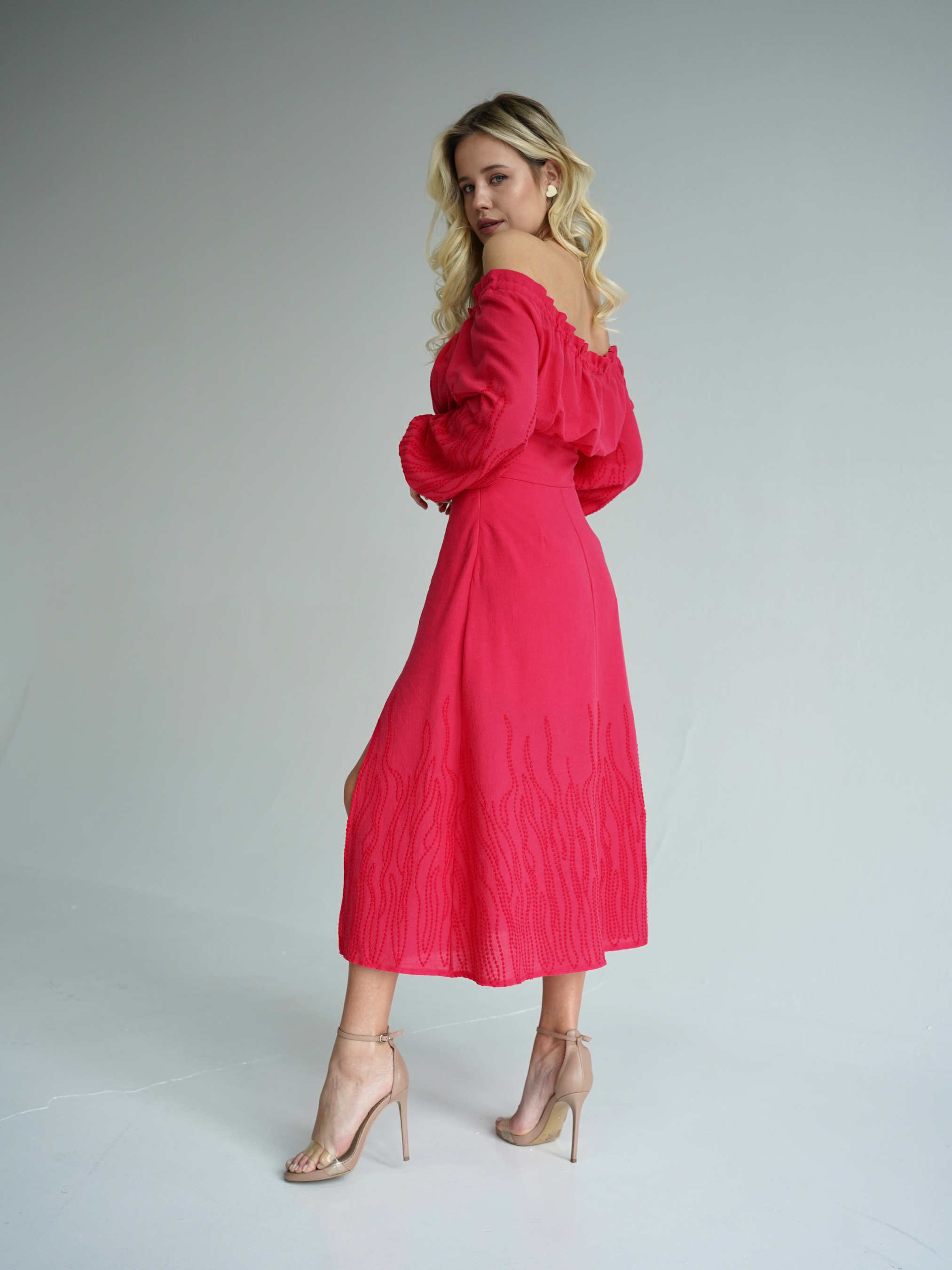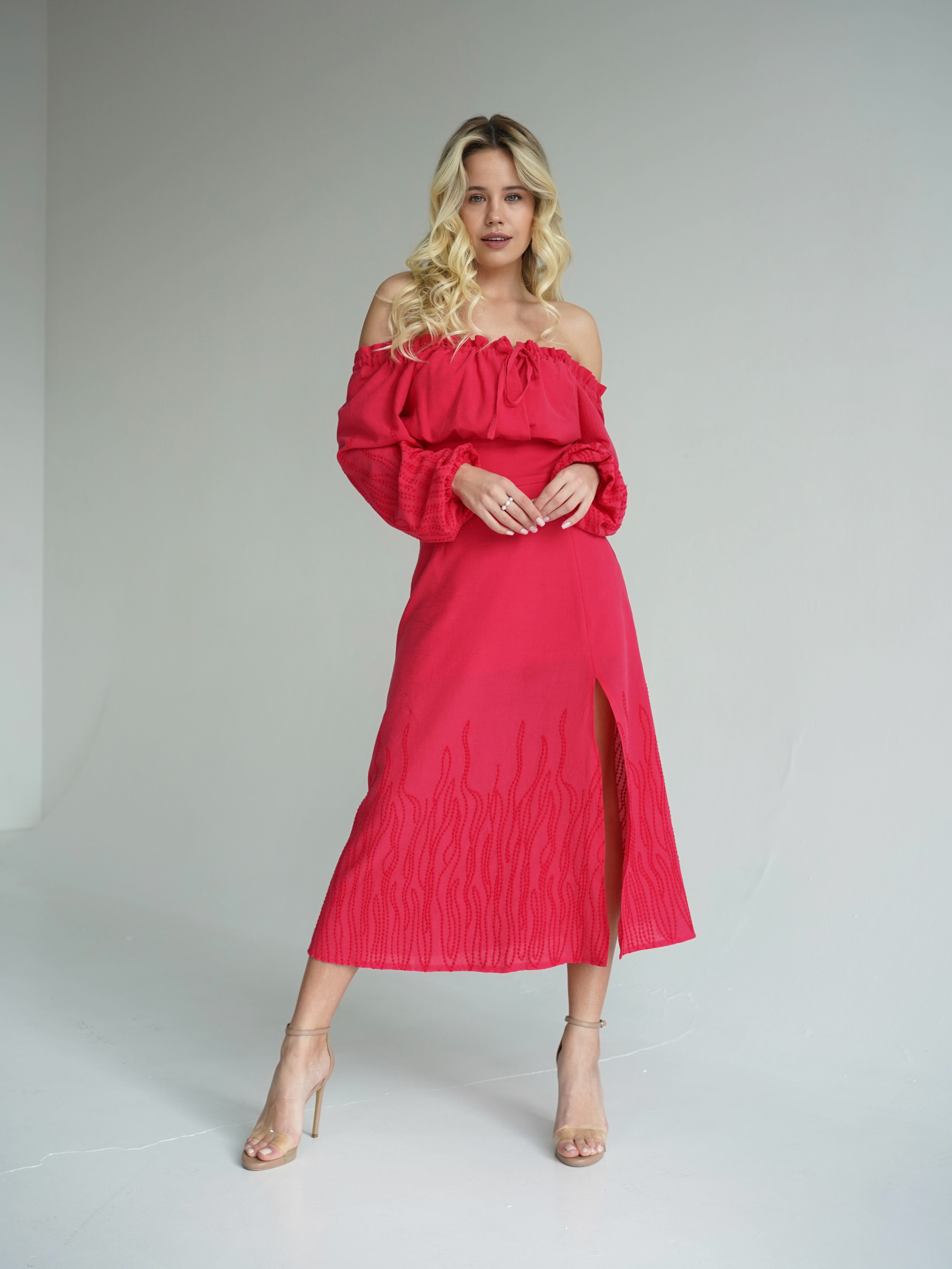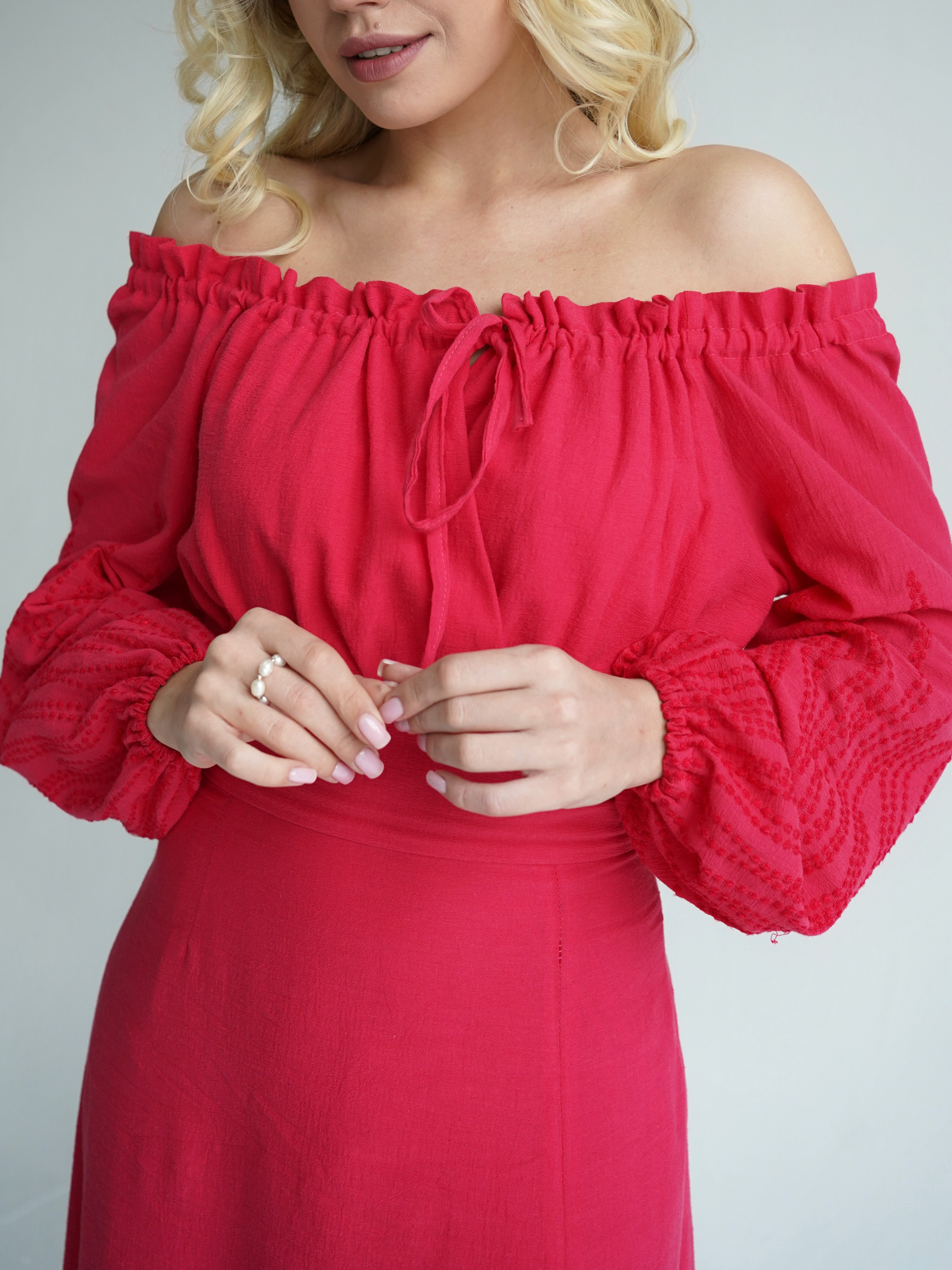 Ярко-малиновое длинное платье с разрезом на ноге. Выполнено из батиста (60%) с добавлением полиэстера (40%). Благодаря полиэстеру ткань намного меньше изнашивается и не теряет цвет. Платье застегивается на скрытую молнию на талии. Идеально подходит для сезона весна-лето. Дает коже дышать, не парит. Не просвечивает благодаря подкладу. Удачно подчеркивает талию за счет силуэта. XS: Длина по спине : 108 см Длина рукава: 53 см Полуобхват груди : 31 см Плечи : 32 см Полуобхват талии: 30 см S : Длина по спине: 108 см Длина рукава: 53 см Полуобхват груди: 33 см. Плечи : 33 см Полуобхват талии: 32 см M : Длина по спине: 109 см Длина рукава : 53 см Полуобхват груди: 35 см. Плечи: 34 см Полуобхват талии: 34 см L : Длина по спине: 107 см Длина рукава : 53 см Полуобхват груди: 37 см. Плечи: 34 см Полуобхват талии: 37 см